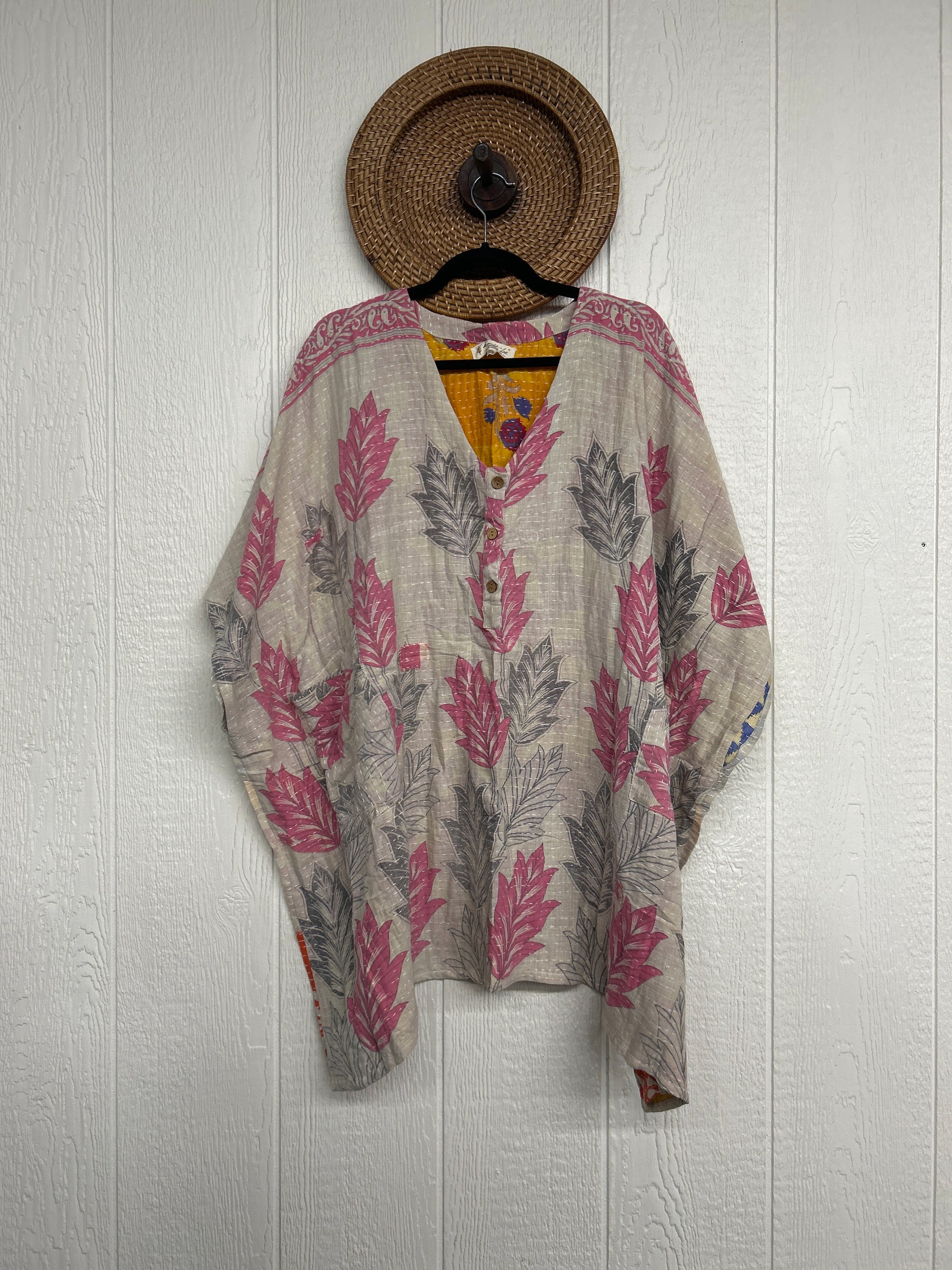 Disclosure: Our vintage styles have lived a full life before becoming the designs in our shop. Fabrics may have small threads or holes in the layers. Color inconsistency or small stains may be present. The saris are sewn together and extend the life of each design. Imperfections should be celebrated.