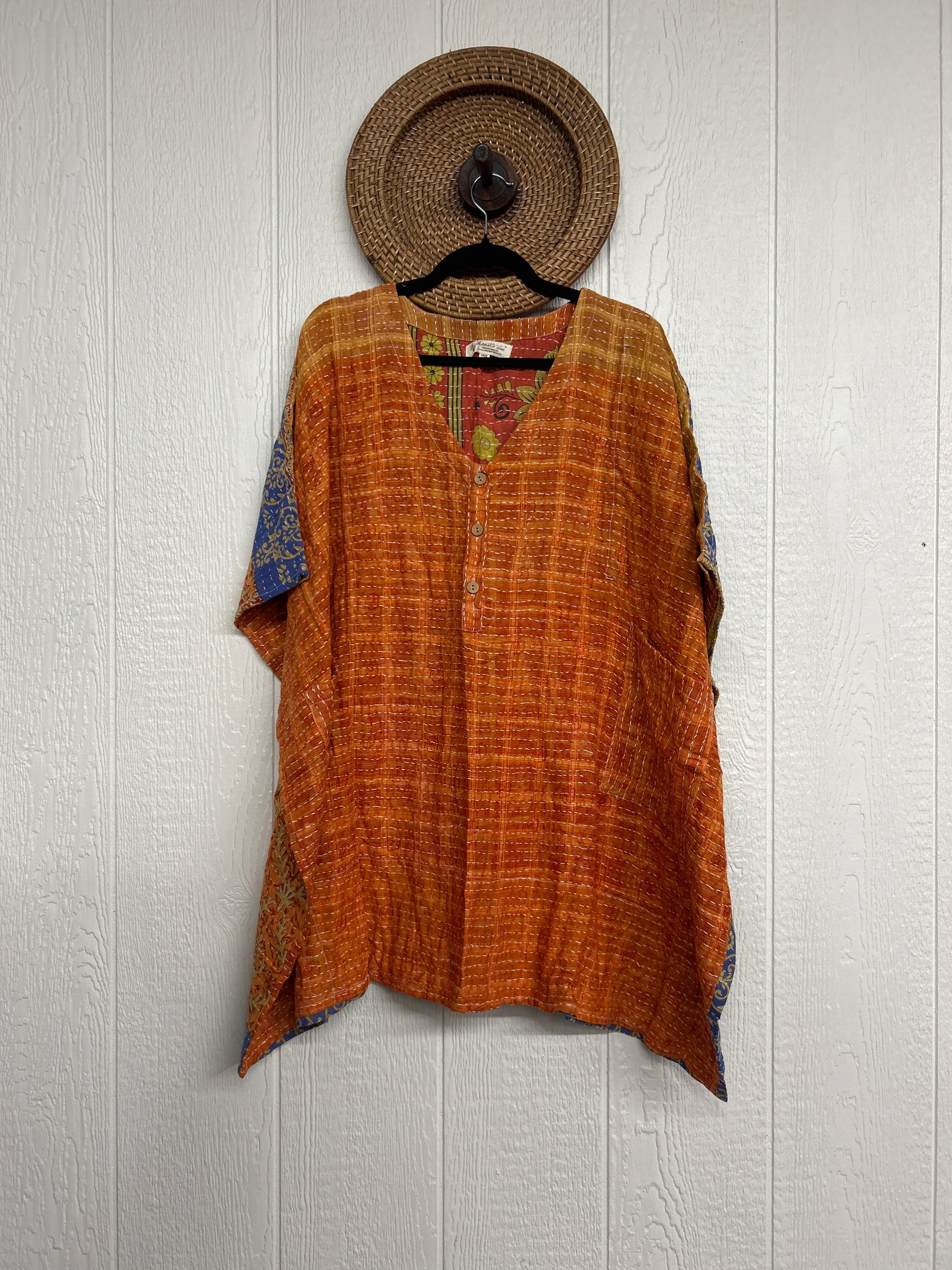 Disclosure: Our vintage styles have lived a full life before becoming the designs in our shop. Fabrics may have small threads or holes in the layers. Color inconsistency or small stains may be present. The saris are sewn together and extend the life of each design. Imperfections should be celebrated.