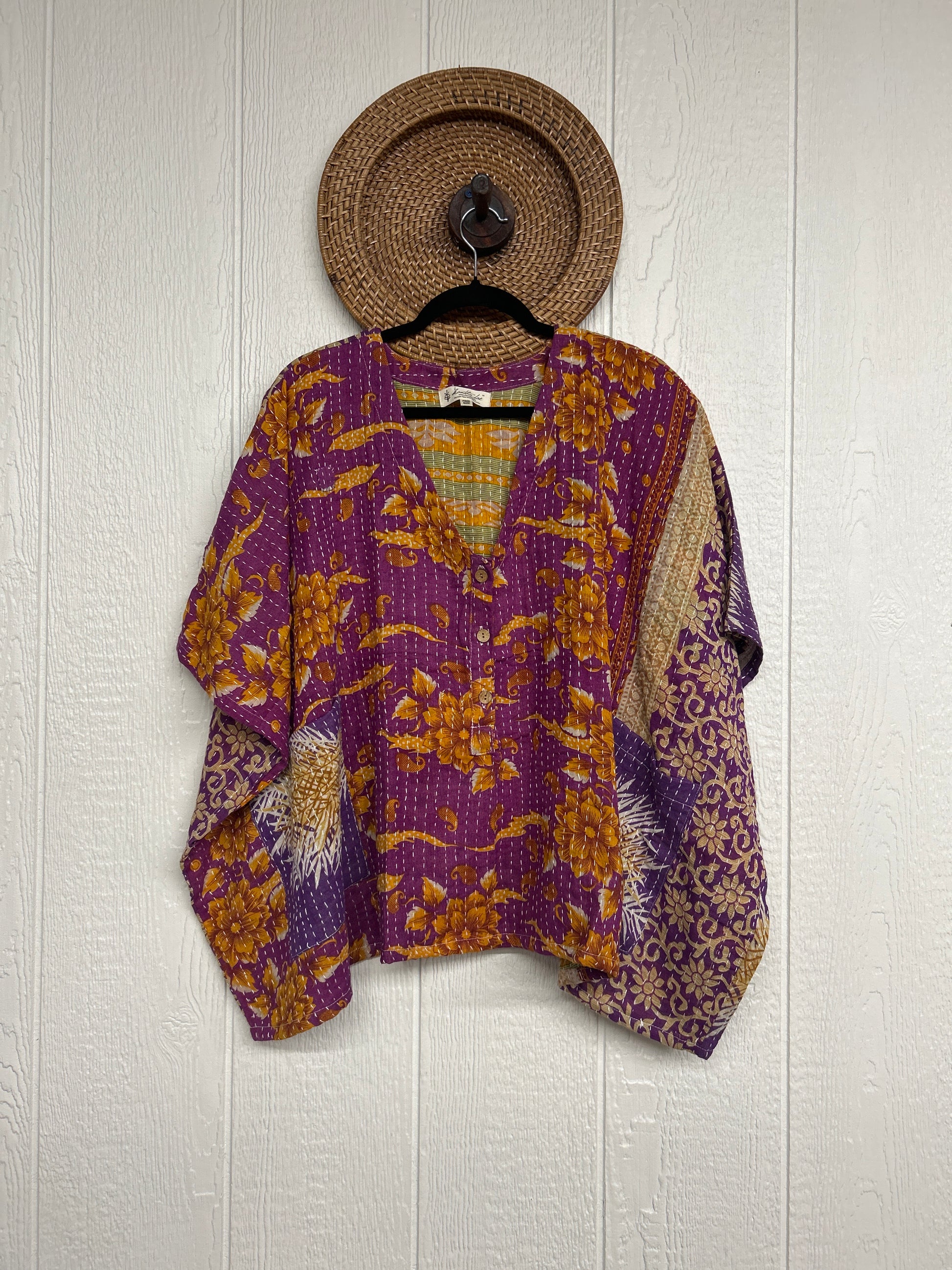 Made from our ultra luxe kantha stitch cotton sari, this effortless piece features 3 functional buttons and two slouchy pockets.