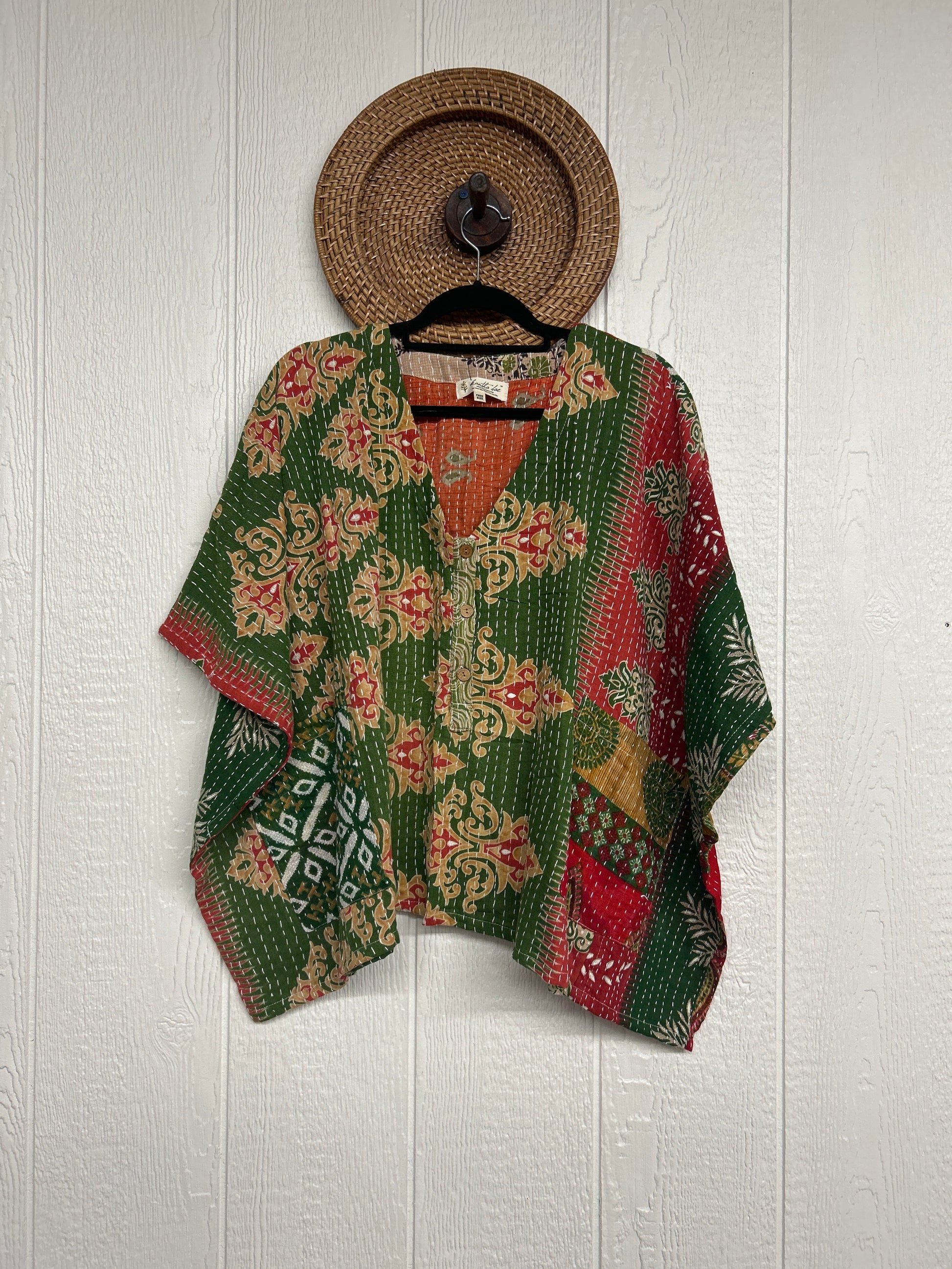 Made from our ultra luxe kantha stitch cotton sari, this effortless piece features 3 functional buttons and two slouchy pockets.
