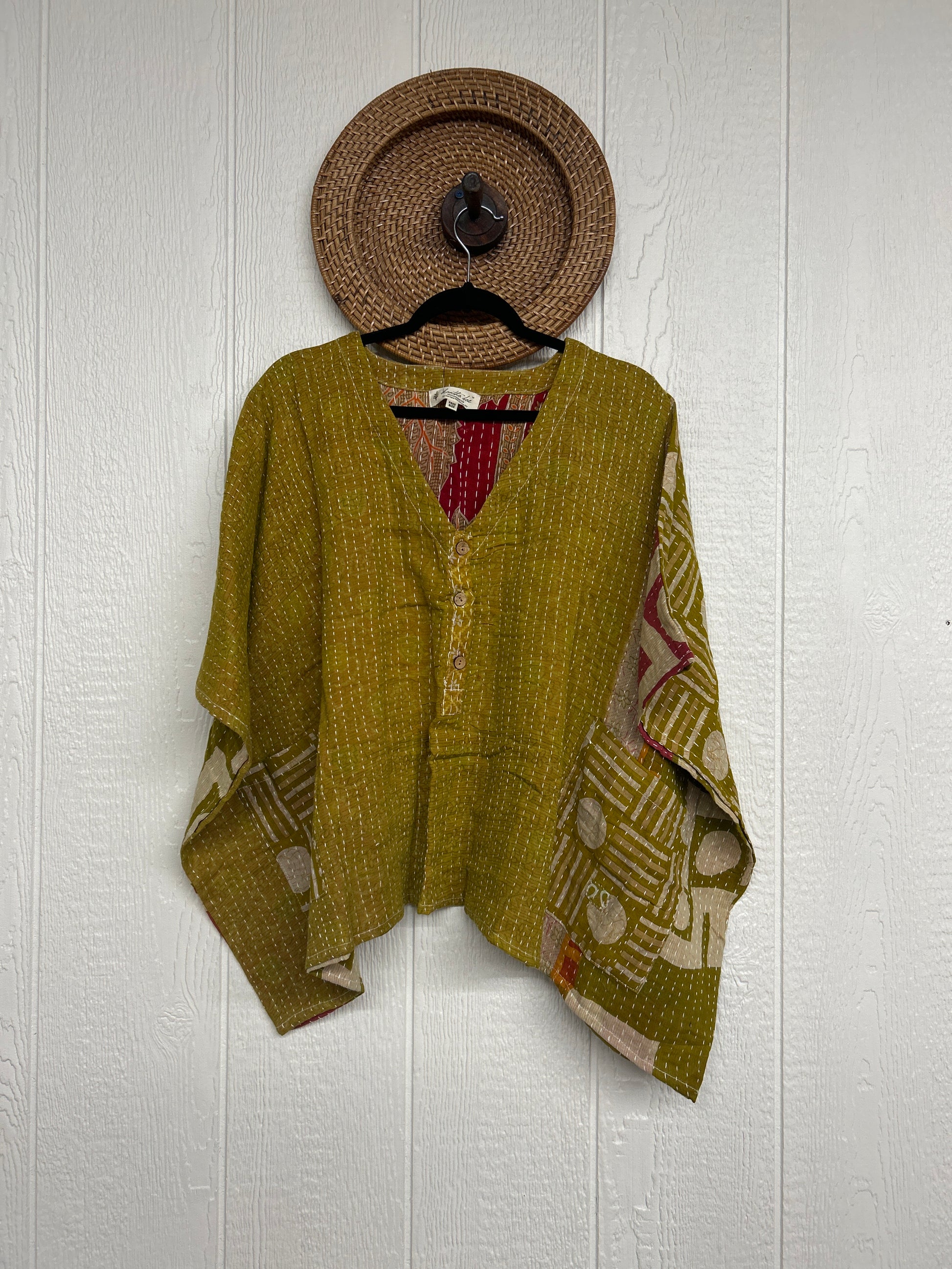 Made from our ultra luxe kantha stitch cotton sari, this effortless piece features 3 functional buttons and two slouchy pockets.