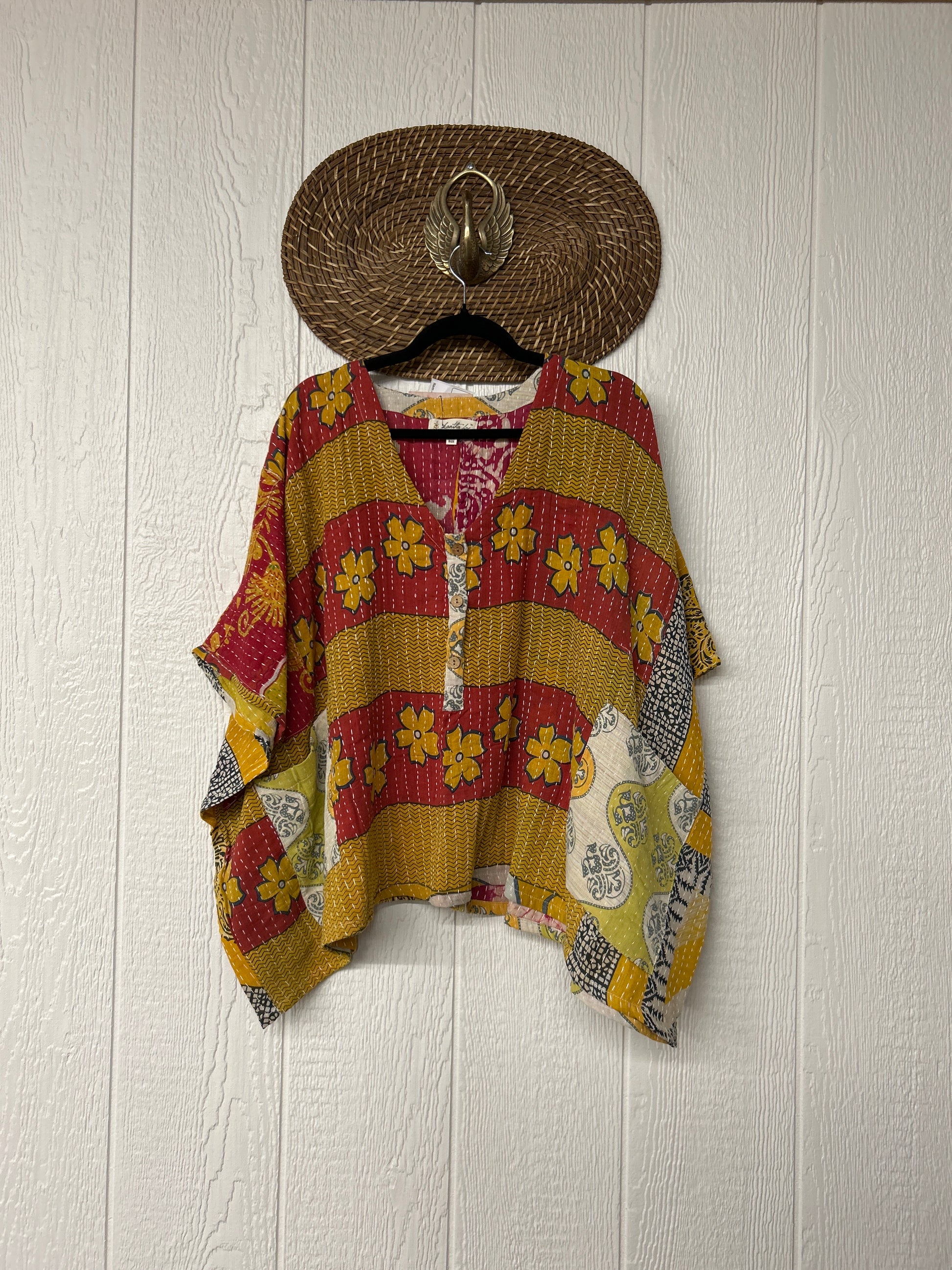 Made from our ultra luxe kantha stitch cotton sari, this effortless piece features 3 functional buttons and two slouchy pockets.