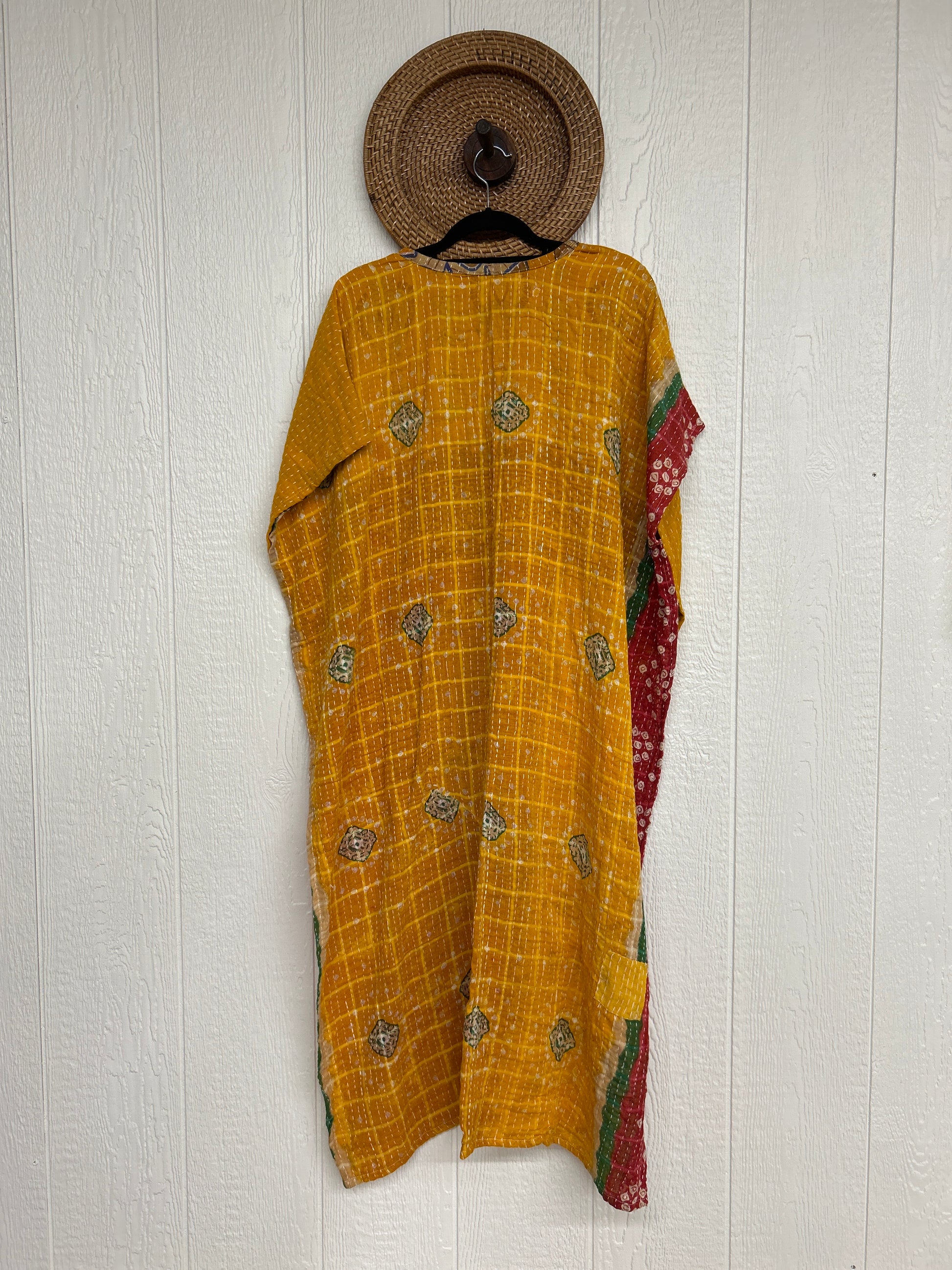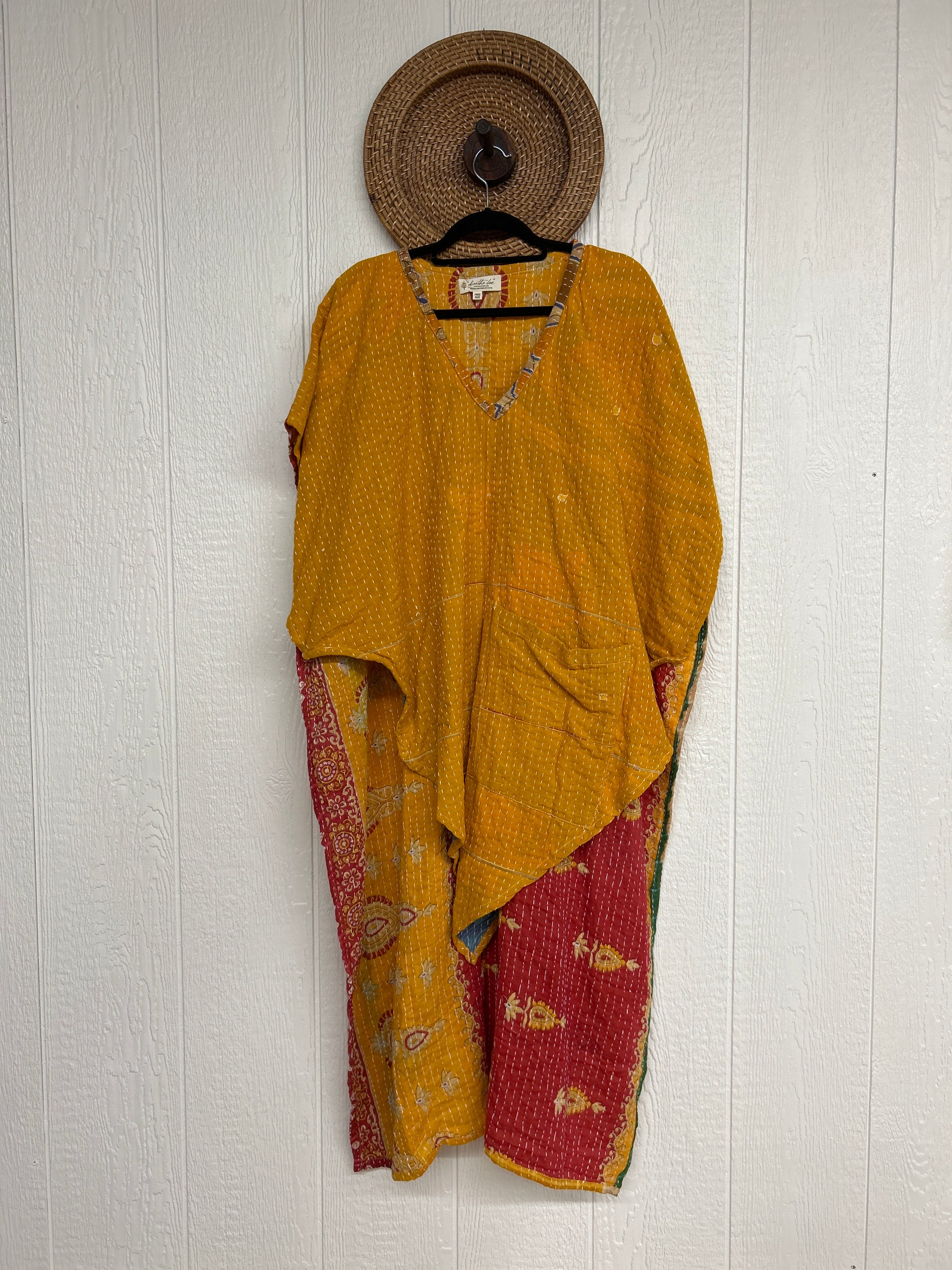 Disclosure: Our vintage styles have lived a full life before becoming the designs in our shop. Fabrics may have small threads or holes in the layers. Color inconsistency or small stains may be present. The saris are sewn together and extend the life of each design.