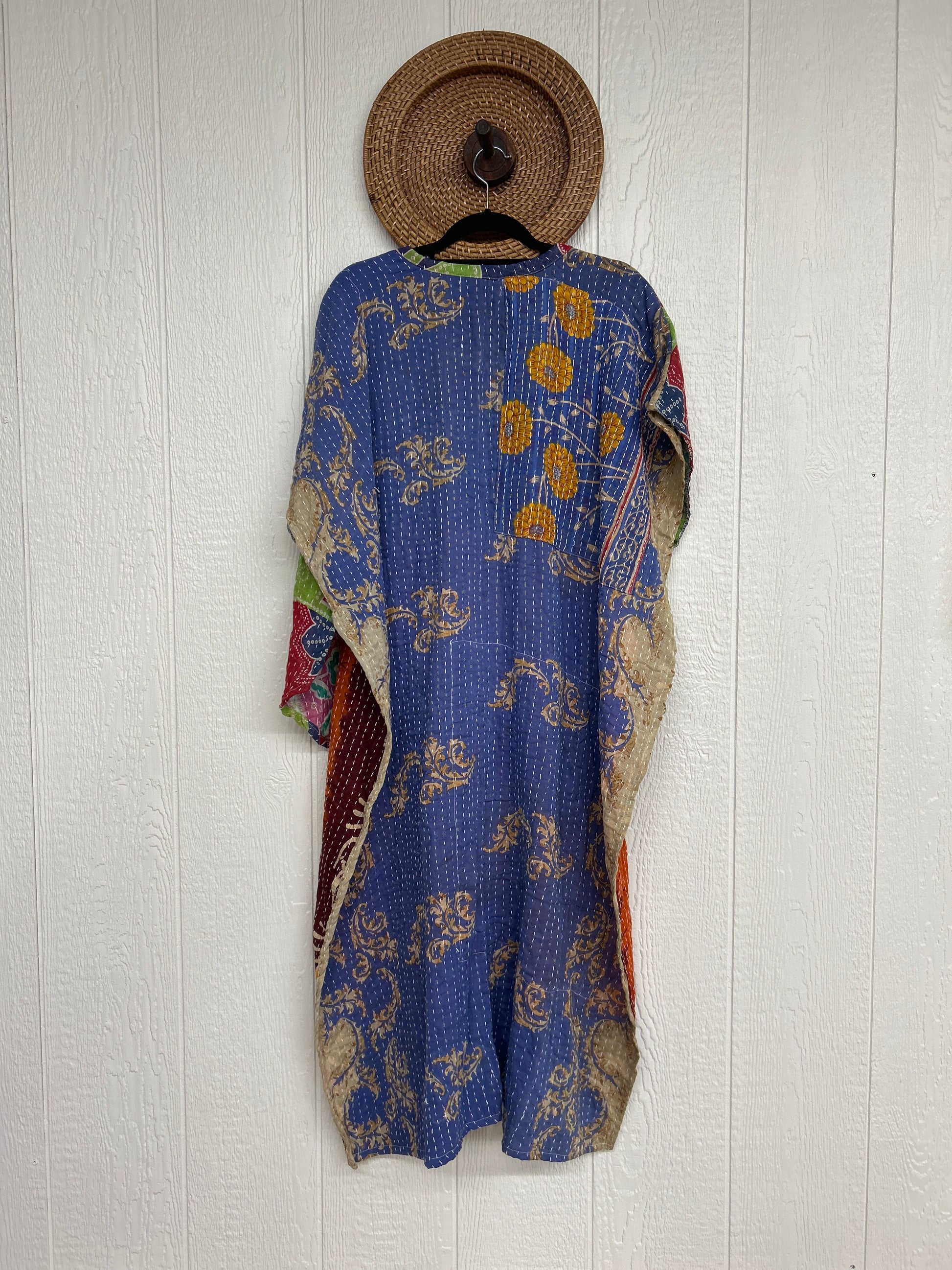 Disclosure: Our vintage styles have lived a full life before becoming the designs in our shop. Fabrics may have small threads or holes in the layers. Color inconsistency or small stains may be present. The saris are sewn together and extend the life of each design.
