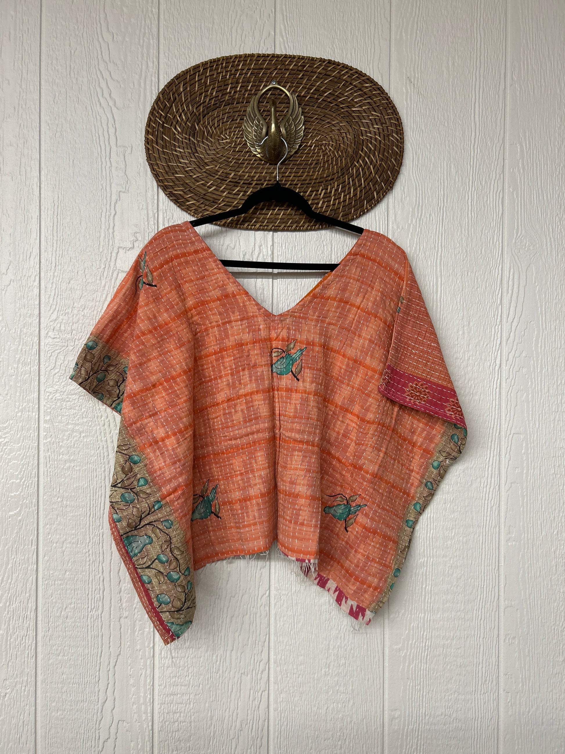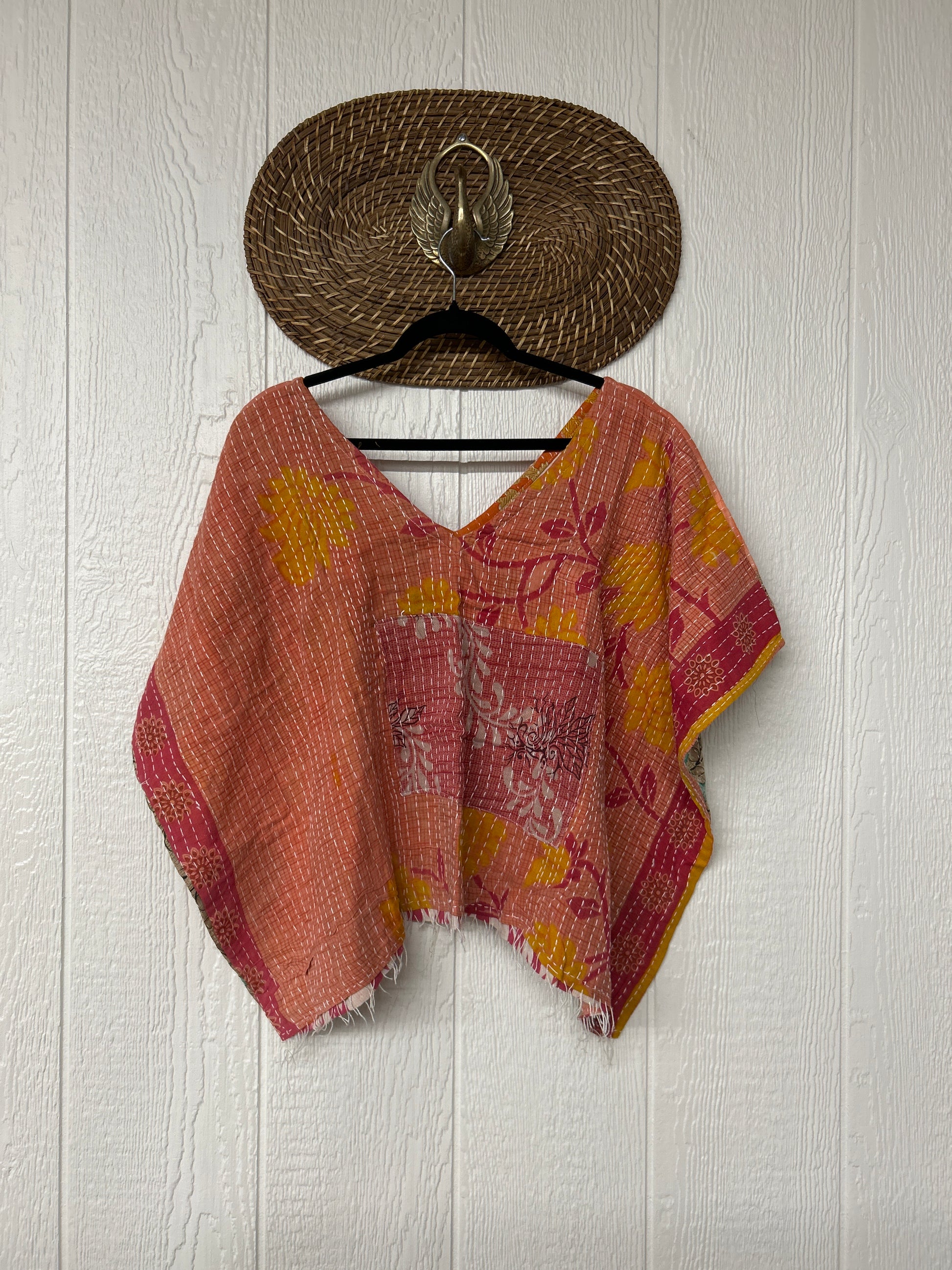 Crafted from kantha stitched vintage cotton sari our OG V Crop is slouchy perfection. Fully reversible PLUS you can wear it on ALL four sides. Features an unfinished fringe hem for extra vibes. We know the OG V Crop will be your new go to!