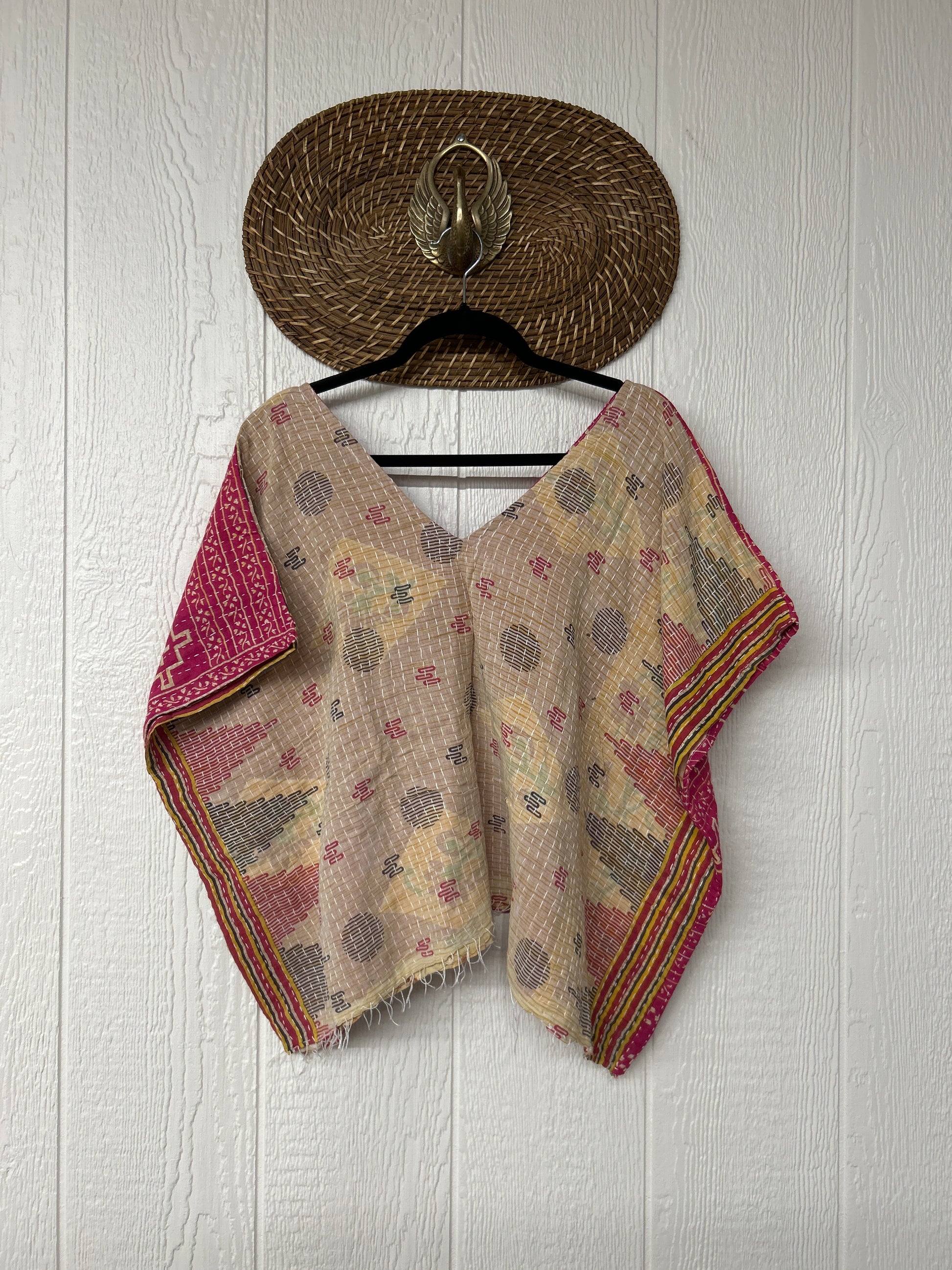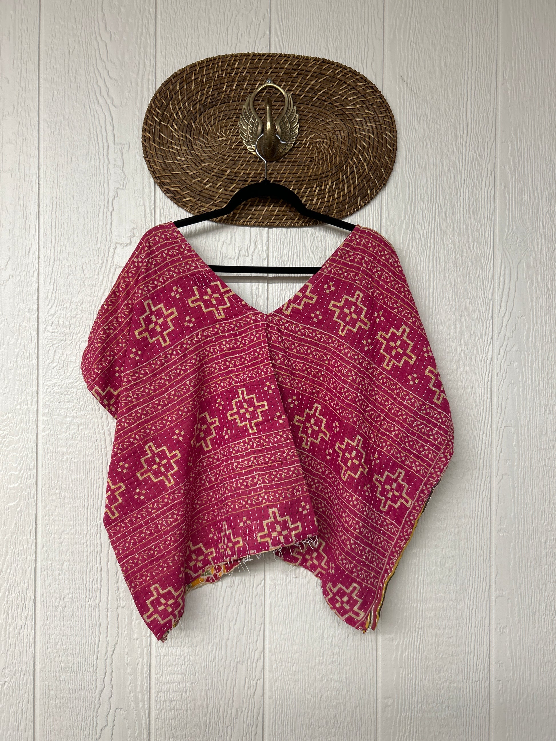 Crafted from kantha stitched vintage cotton sari our OG V Crop is slouchy perfection. Fully reversible PLUS you can wear it on ALL four sides. Features an unfinished fringe hem for extra vibes. We know the OG V Crop will be your new go to!