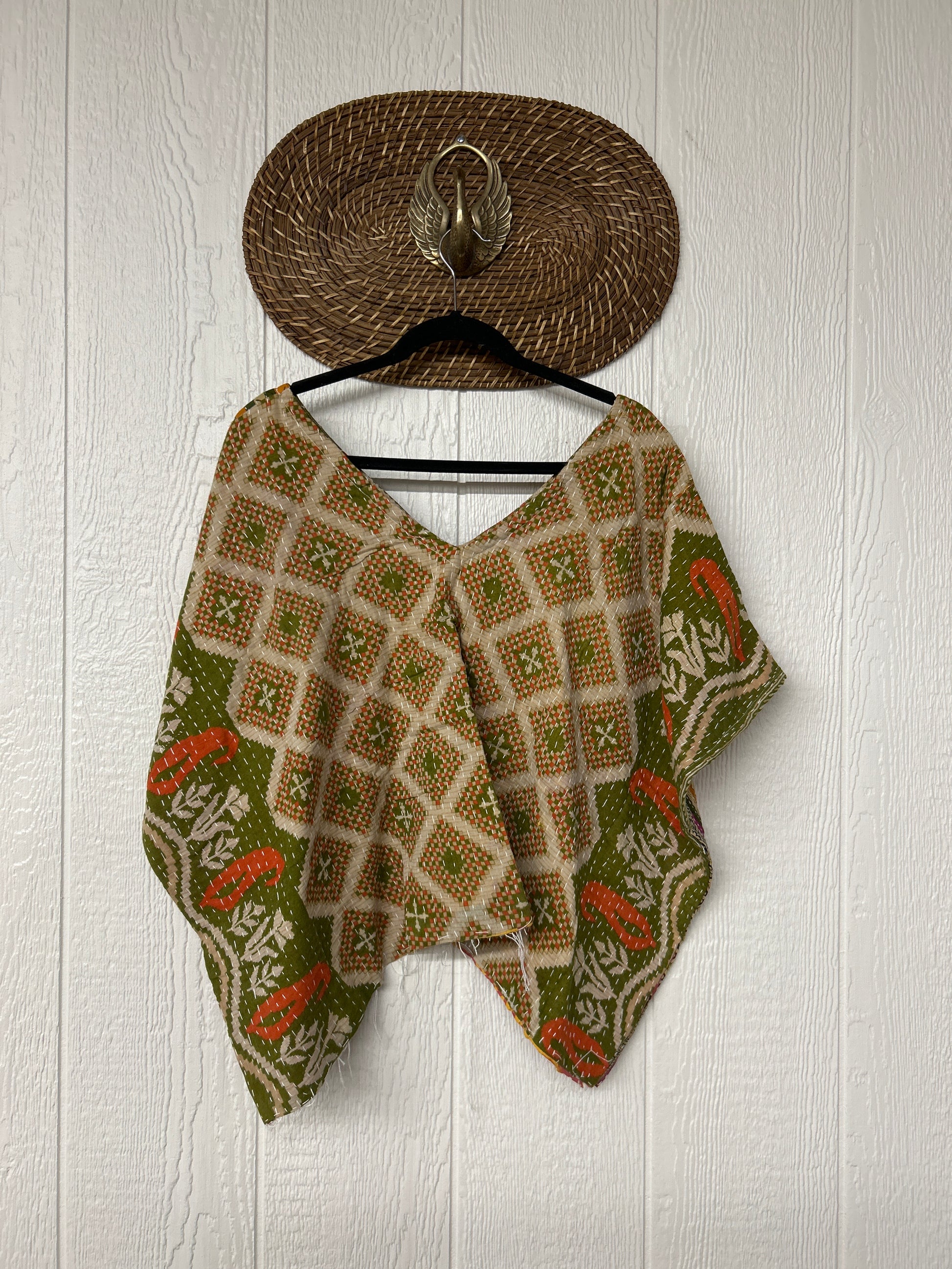 Crafted from kantha stitched vintage cotton sari our OG V Crop is slouchy perfection. Fully reversible PLUS you can wear it on ALL four sides. Features an unfinished fringe hem for extra vibes. We know the OG V Crop will be your new go to!