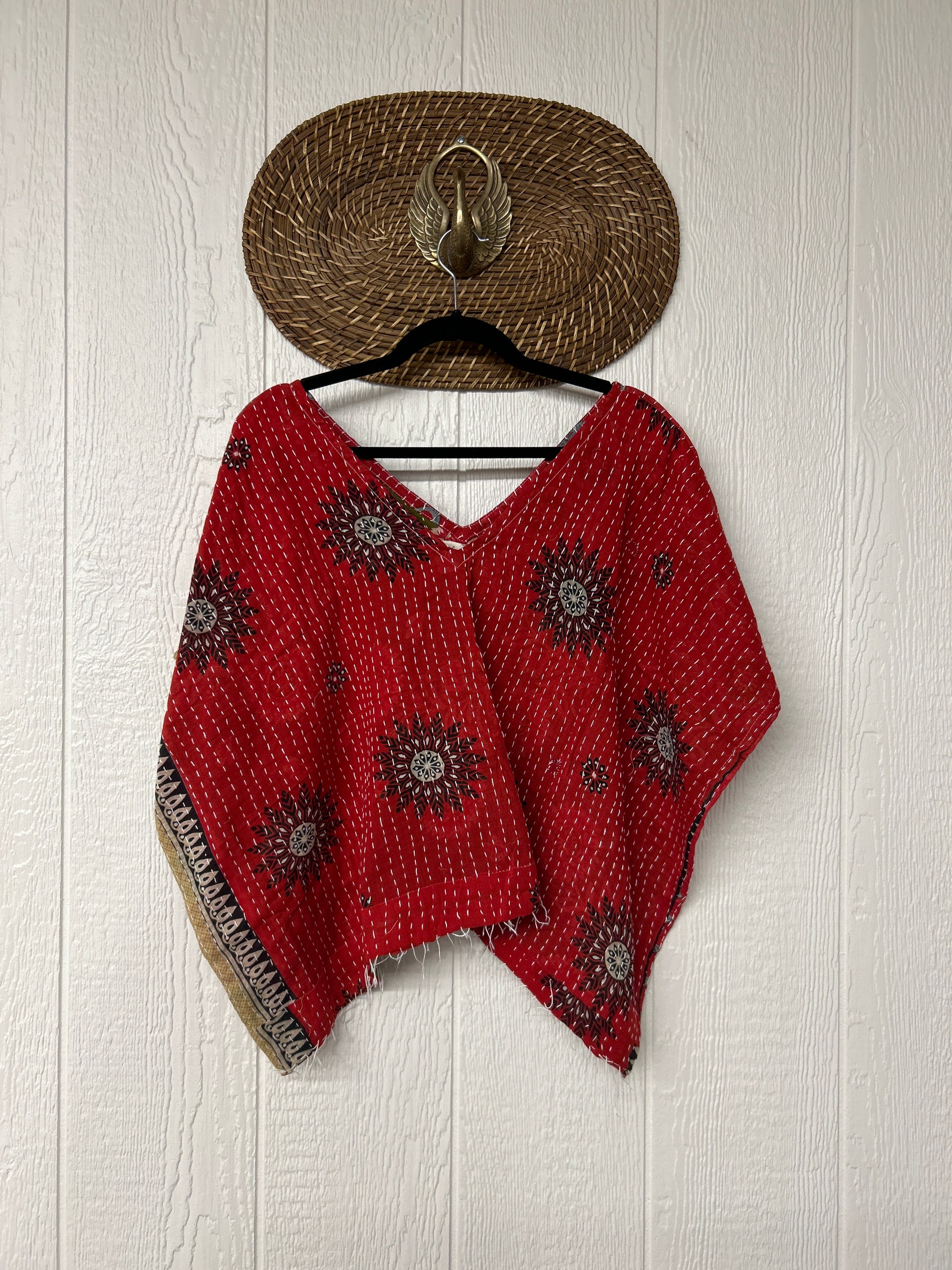 Crafted from kantha stitched vintage cotton sari our OG V Crop is slouchy perfection. Fully reversible PLUS you can wear it on ALL four sides. Features an unfinished fringe hem for extra vibes. We know the OG V Crop will be your new go to!