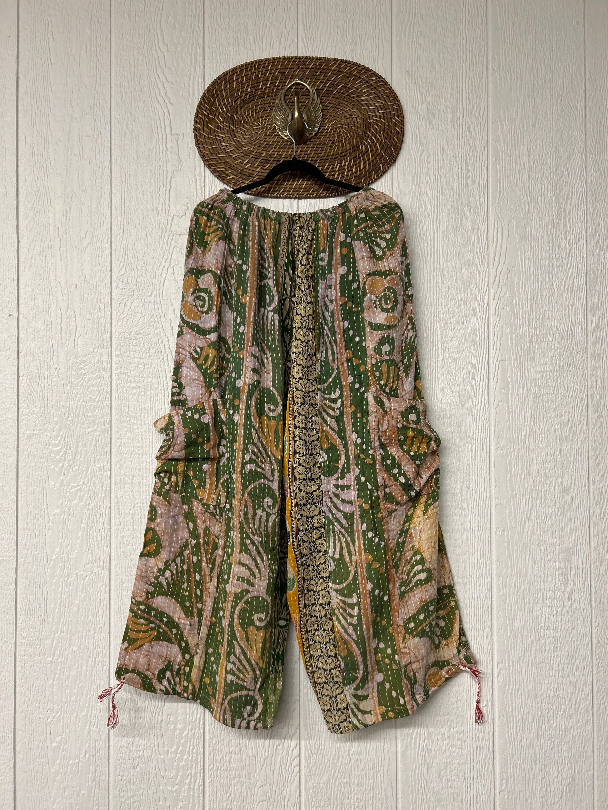 Made from our hand kantha stitched vintage cotton sari, the Karma Cargo Pants features super wide legs with deep side pockets and interior pockets.