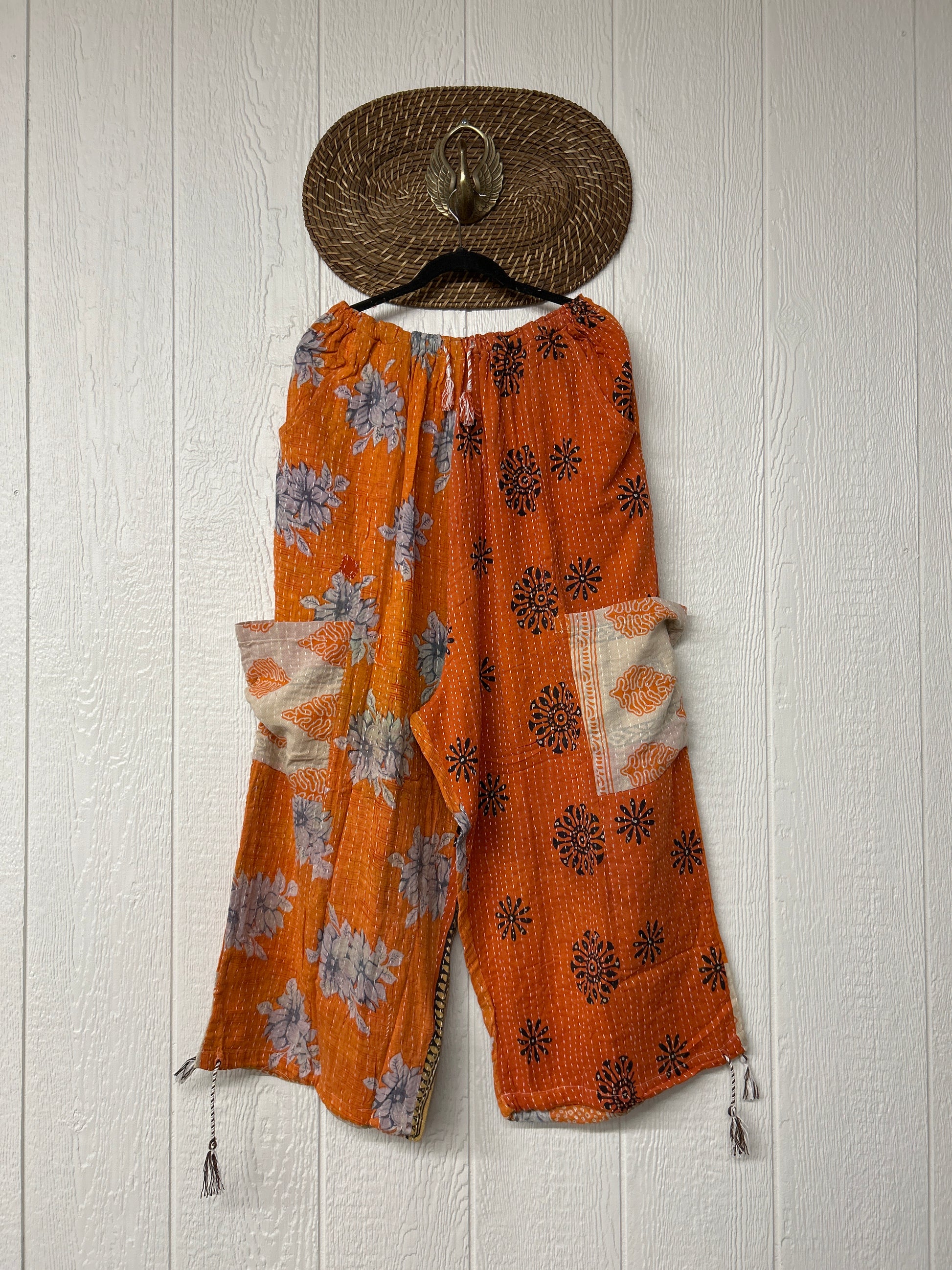 Made from our hand kantha stitched vintage cotton sari, the Karma Cargo Pants features super wide legs with deep side pockets and interior pockets.