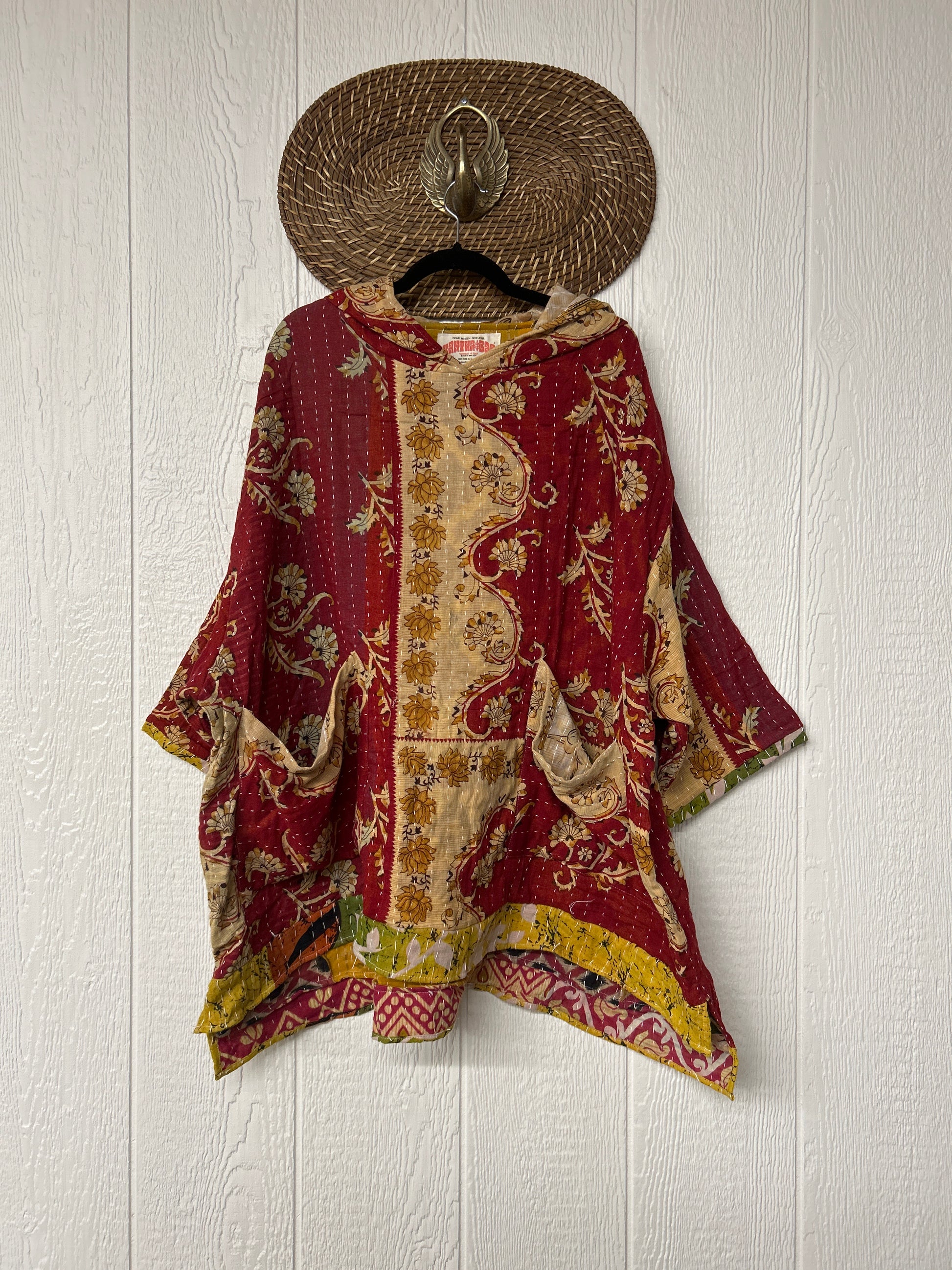 Crafted from koverlet kantha stitched cotton sari this slouchy hoodie features two exterior slouchy pockets for your treasures, a high low hem and hood.
