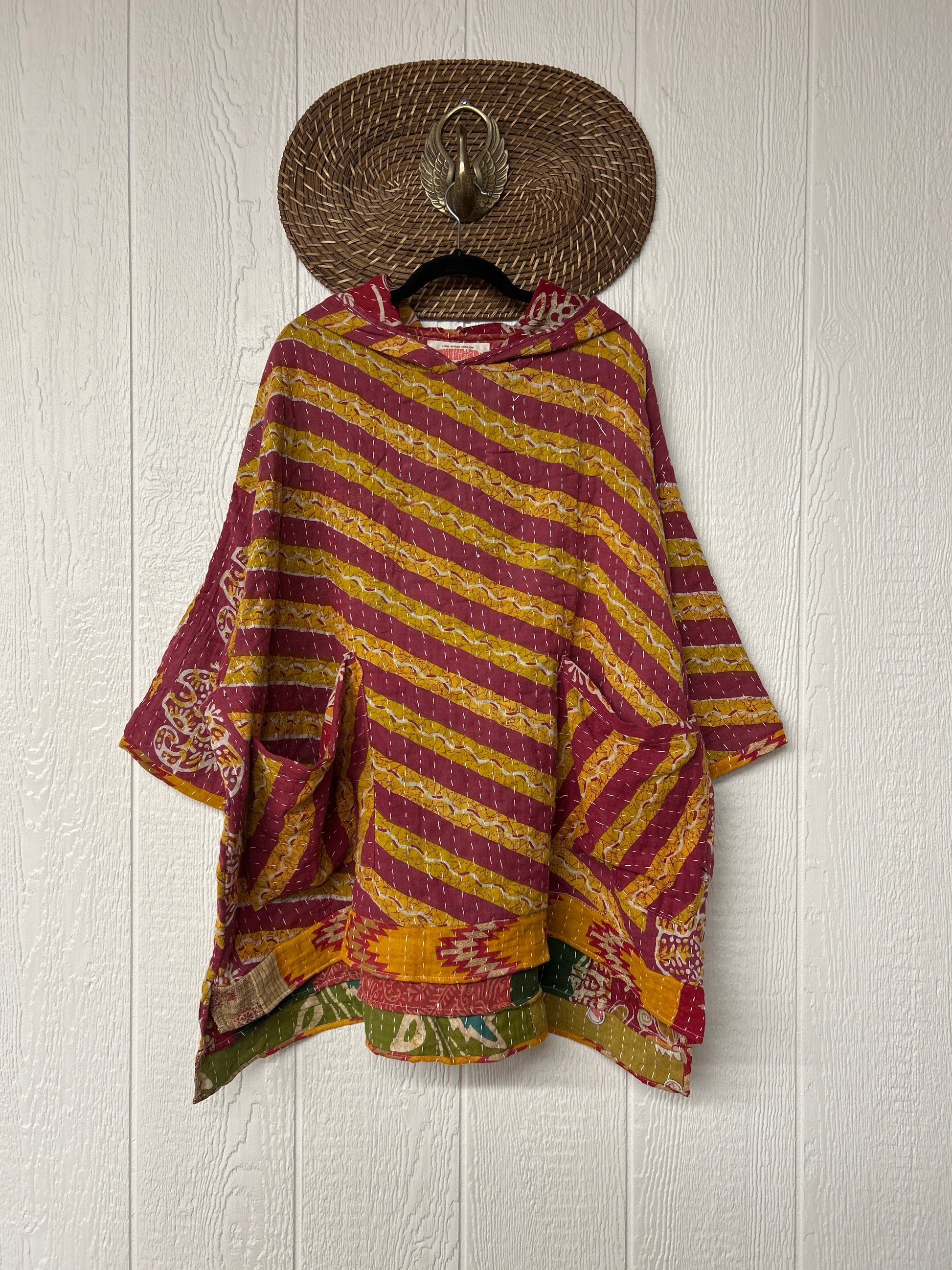 Crafted from koverlet kantha stitched cotton sari this slouchy hoodie features two exterior slouchy pockets for your treasures, a high low hem and hood.
