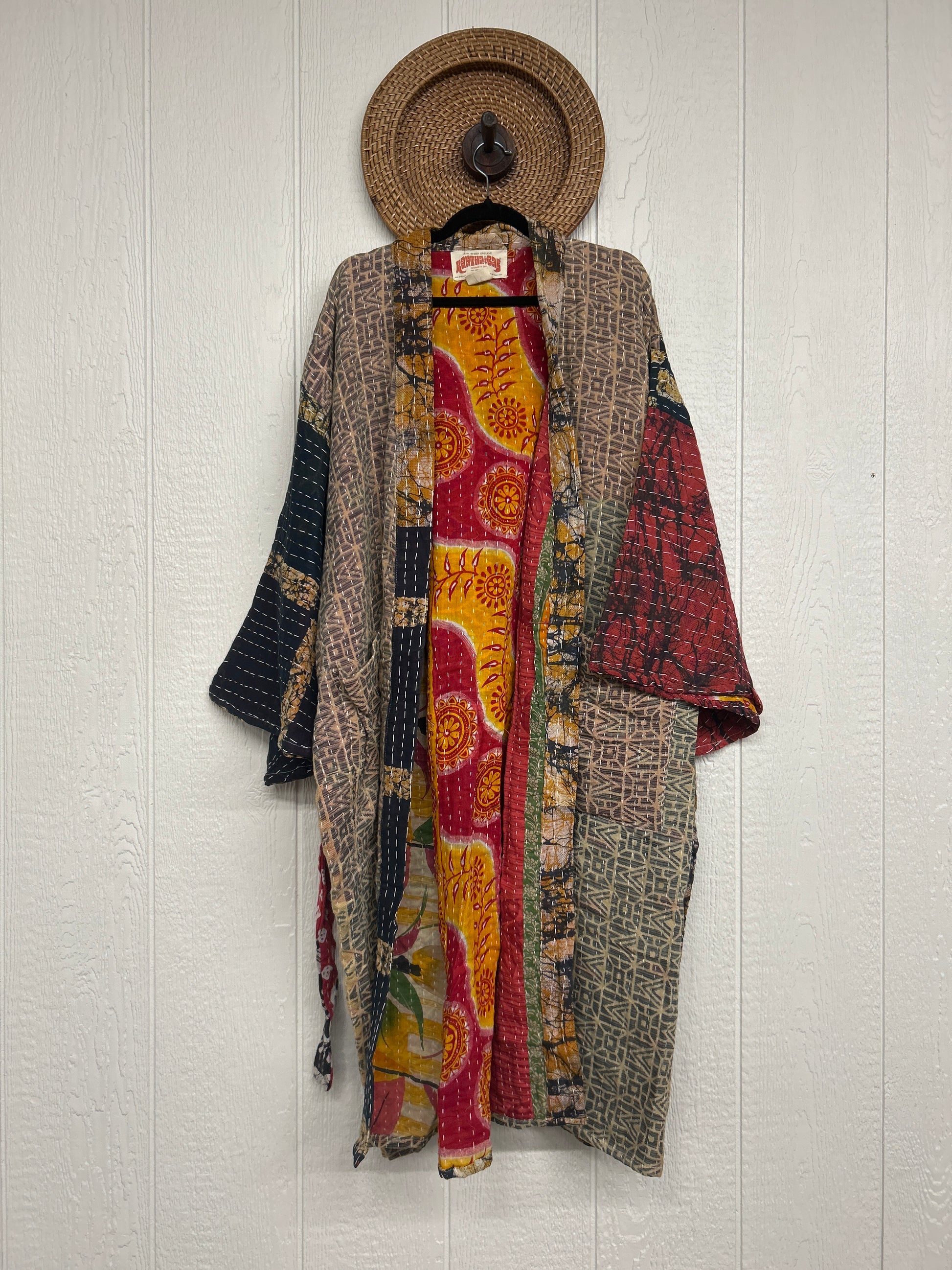Crafted from our ultra lux vintage Kantha stitched vintage cotton sari our dreamweaver robe features a tie closure, two slouchy exterior pockets for your treasures and groovy bell sleeves. This dream piece can be dressed up or down depending on your vibe!