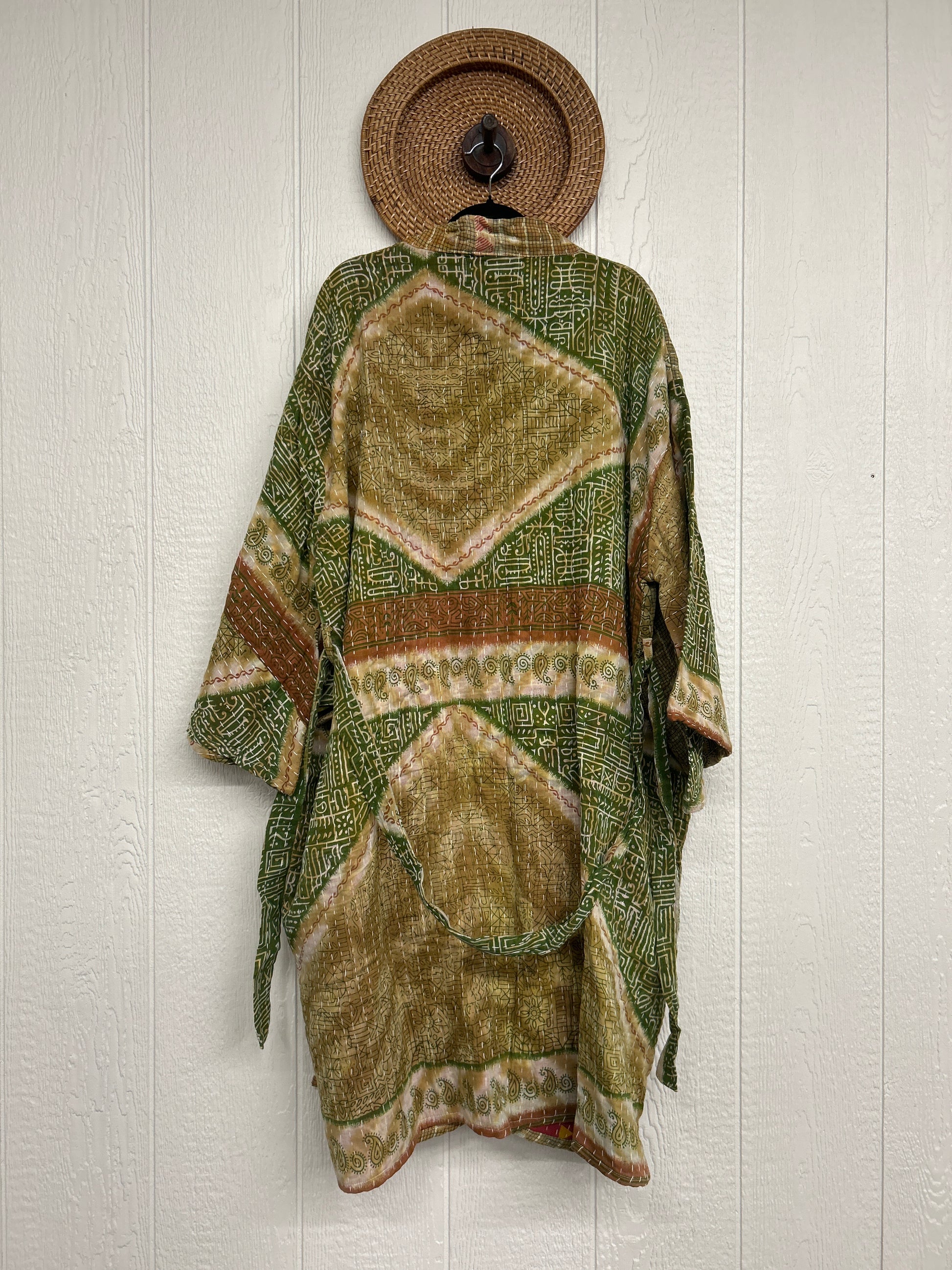 Crafted from our ultra lux vintage Kantha stitched vintage cotton sari our dreamweaver robe features a tie closure, two slouchy exterior pockets for your treasures and groovy bell sleeves. This dream piece can be dressed up or down depending on your vibe!