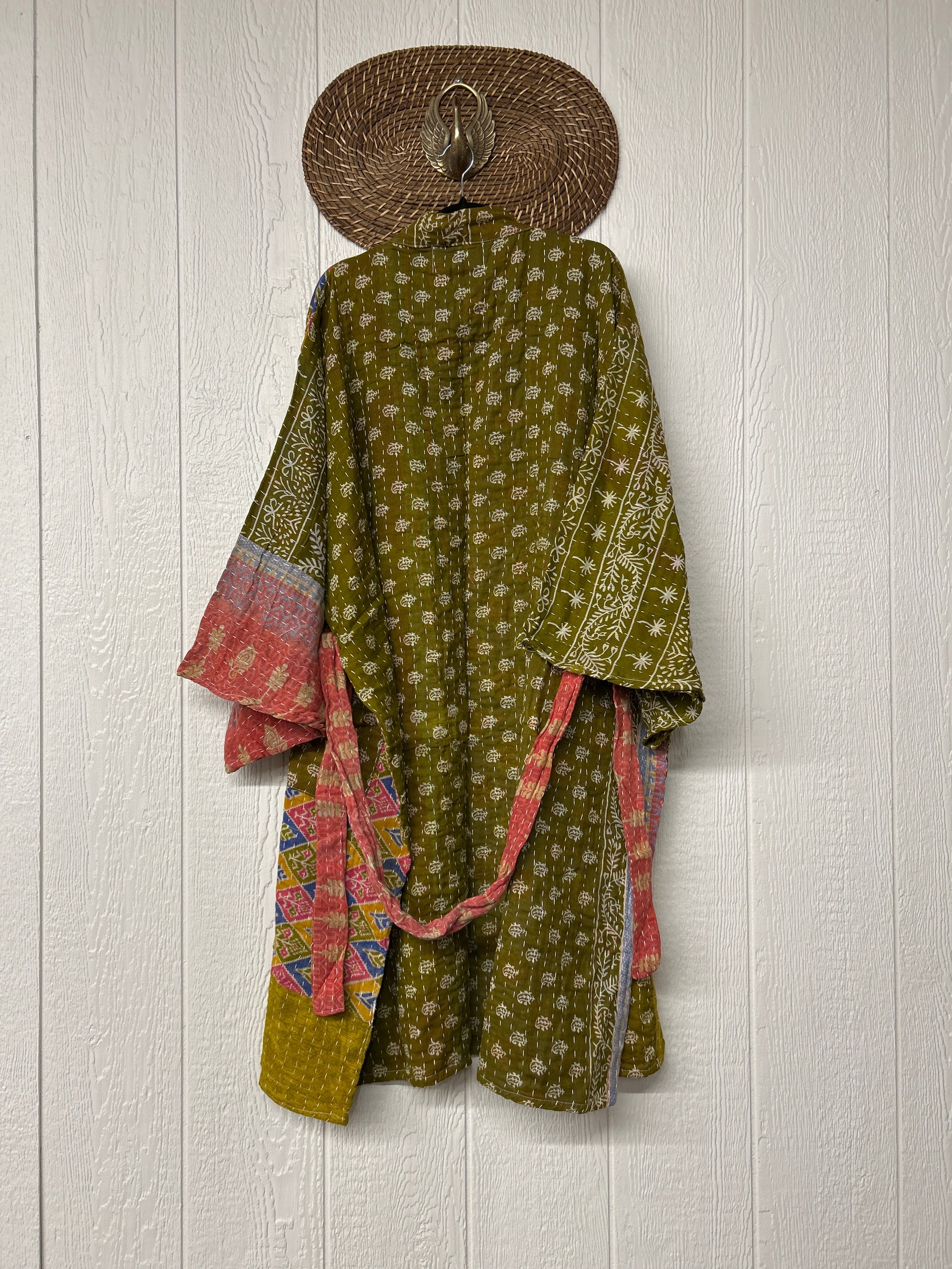 Disclosure: Kantha embroidered saris are vintage and have lived a full life before becoming the designs in our shop. Fabrics may have small threads or holes in the layers. The saris are sewn together and extend the life of each design. Color inconsistency or small stains may be present.