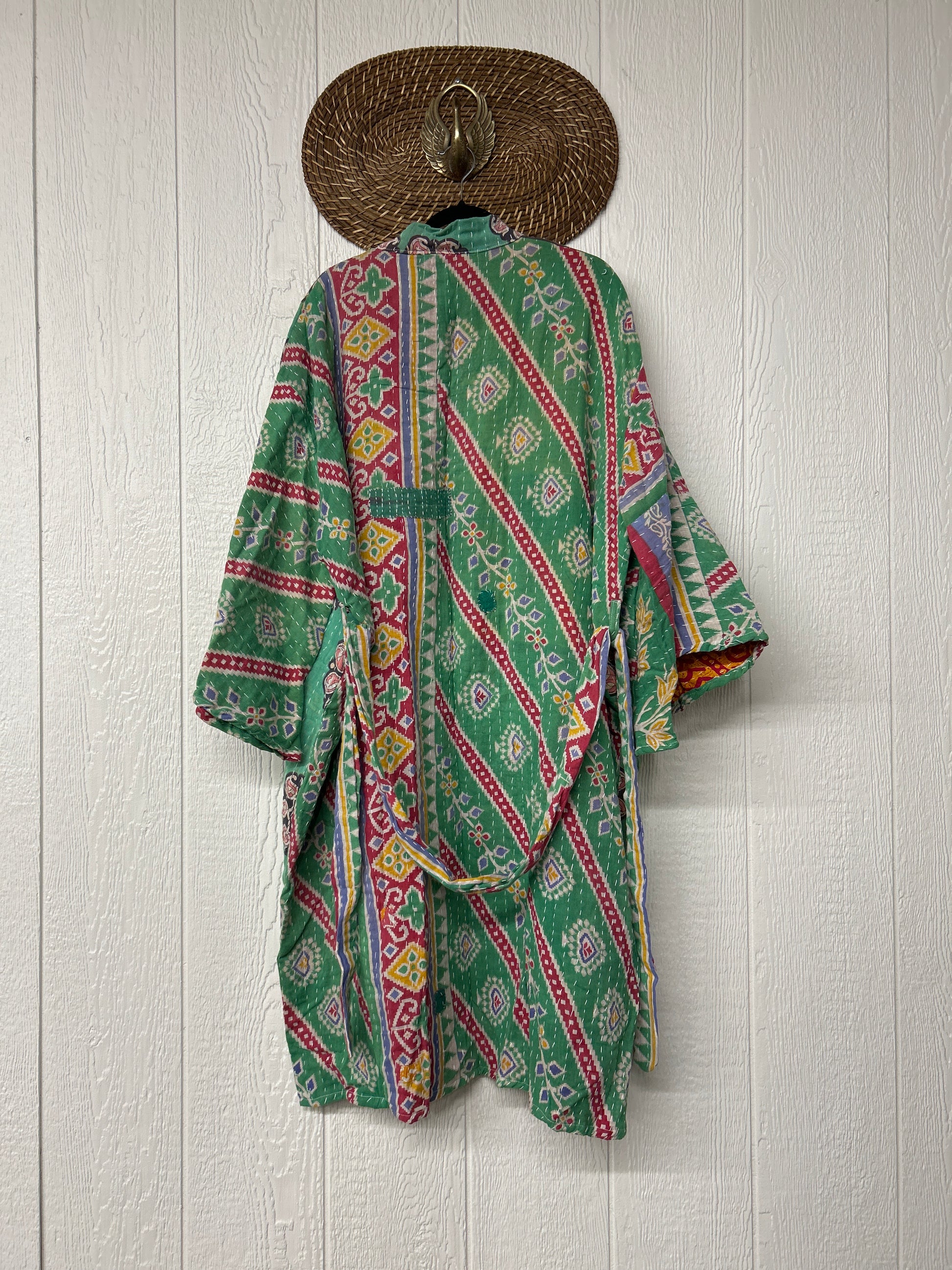 Crafted from our ultra lux vintage Kantha stitched vintage cotton sari our dreamweaver robe features a tie closure, two slouchy exterior pockets for your treasures and groovy bell sleeves. This dream piece can be dressed up or down depending on your vibe!