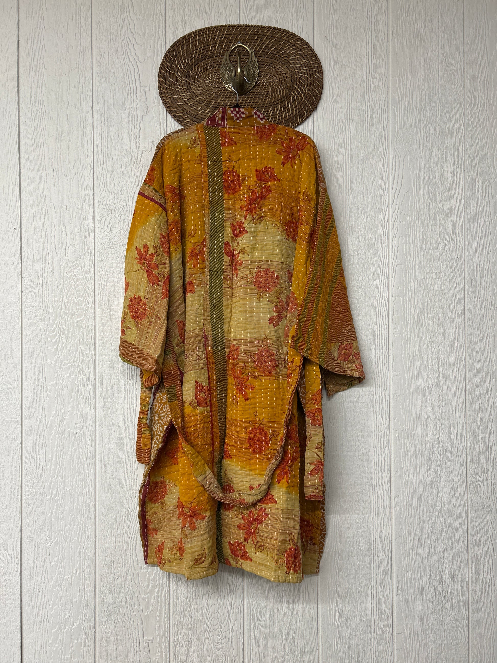 Disclosure: Kantha embroidered saris are vintage and have lived a full life before becoming the designs in our shop. Fabrics may have small threads or holes in the layers. The saris are sewn together and extend the life of each design. Color inconsistency or small stains may be present.