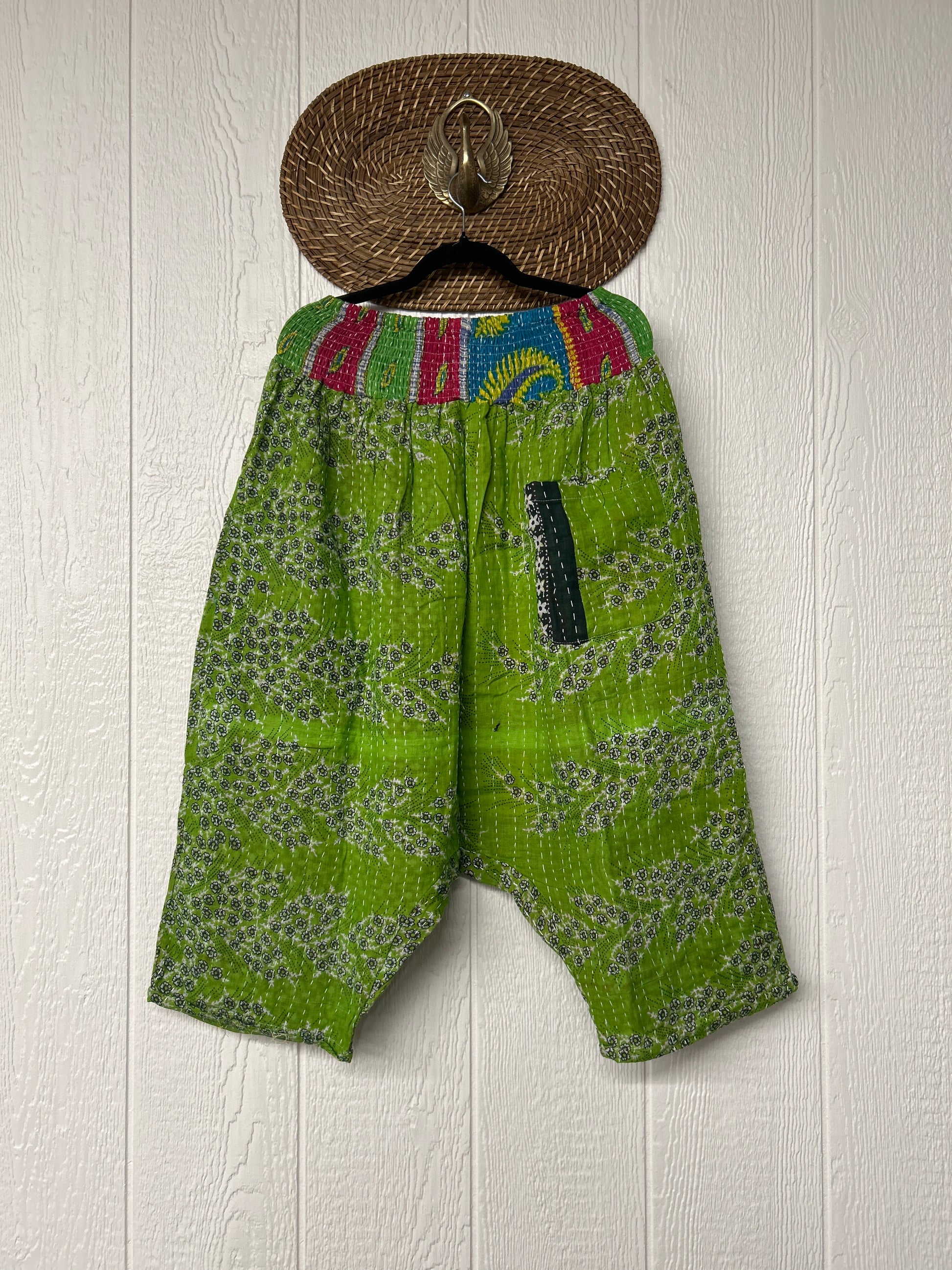 Crafted from our ultra lux embroidered vintage cotton sari coverlet these pants will make you want to dance. Features drop crotch, two front interior pockets, a back pocket and cropped length. These pants can be worn with either set of pockets to the front or back AND they are fully reversible. Yes, you can wear them 4 ways!