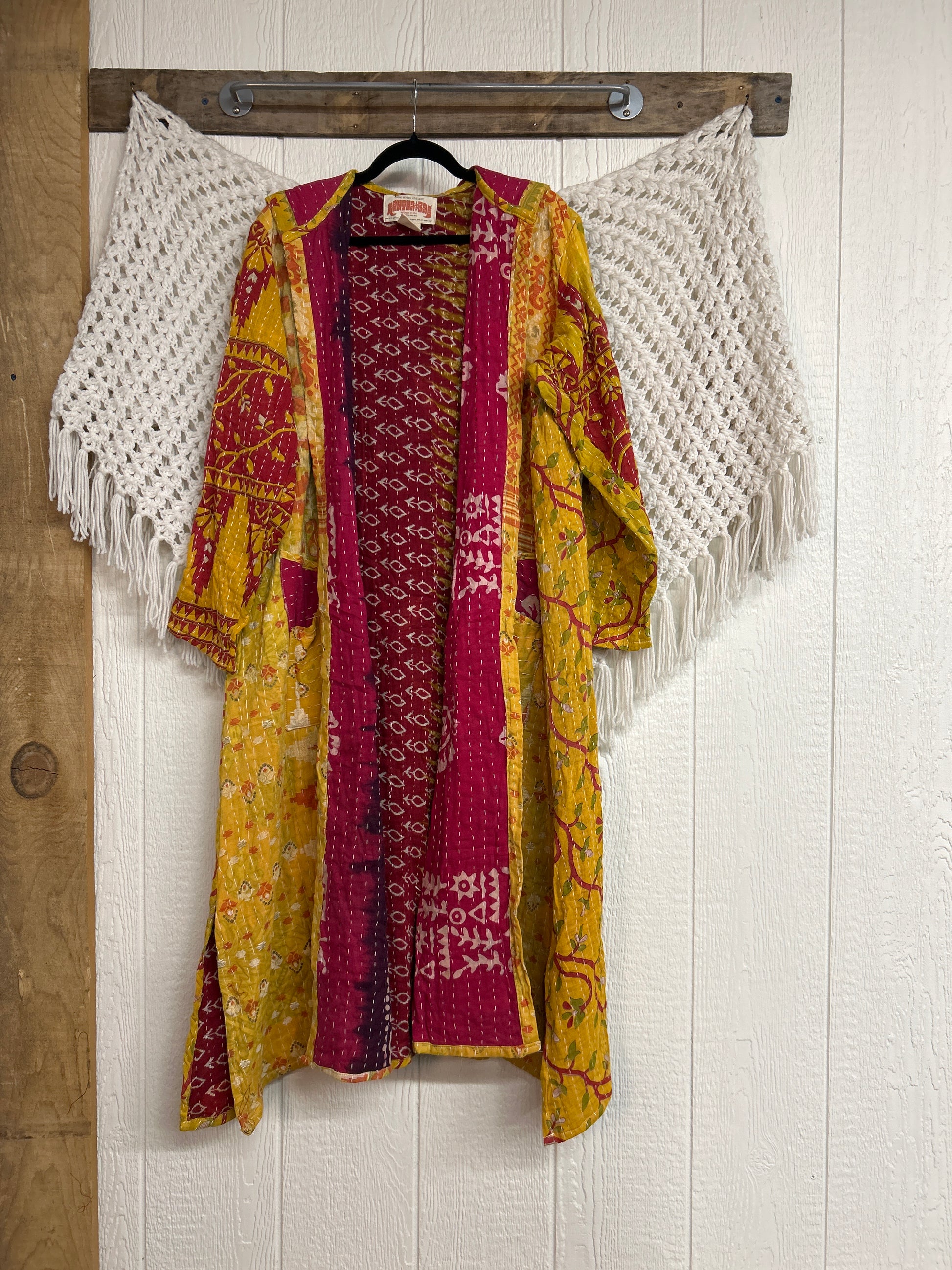Perfect for layering. The Koverlet Rising Sun Coat is crafted from our koverlet kantha stitched cotton sari,
