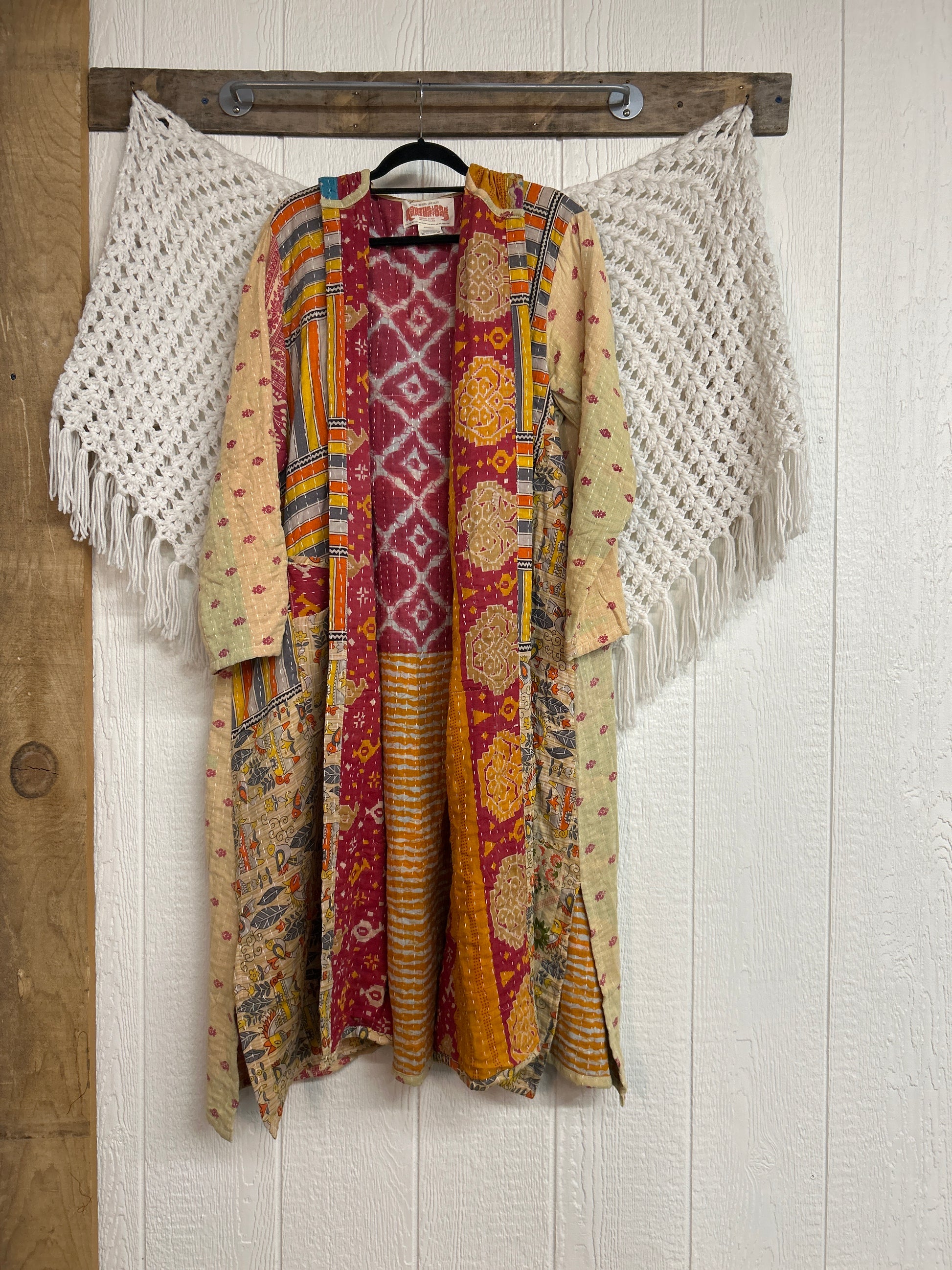 Perfect for layering. The Koverlet Rising Sun Coat is crafted from our koverlet kantha stitched cotton sari,