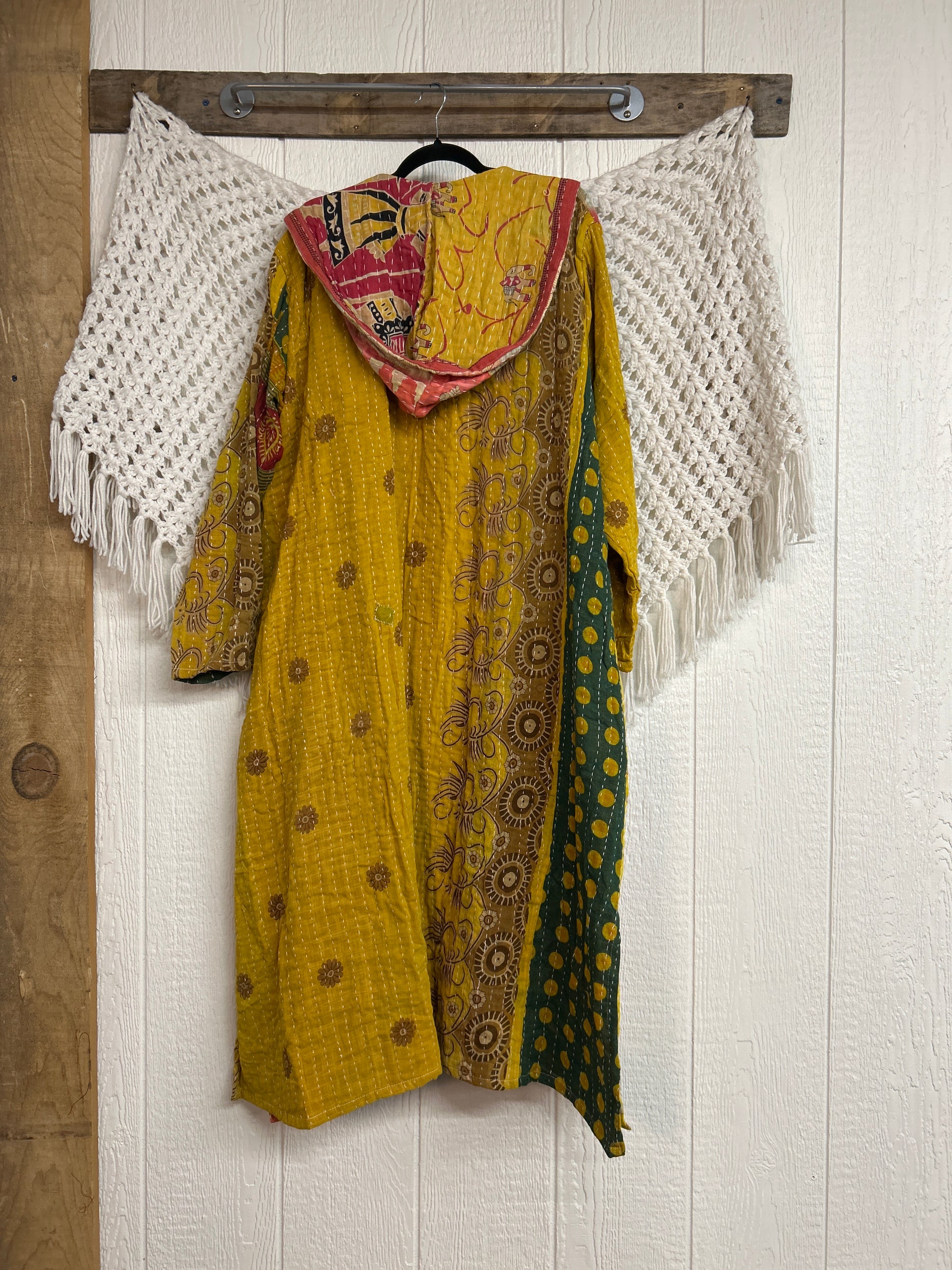 Perfect for layering. The Koverlet Rising Sun Coat is crafted from our koverlet kantha stitched cotton sari,