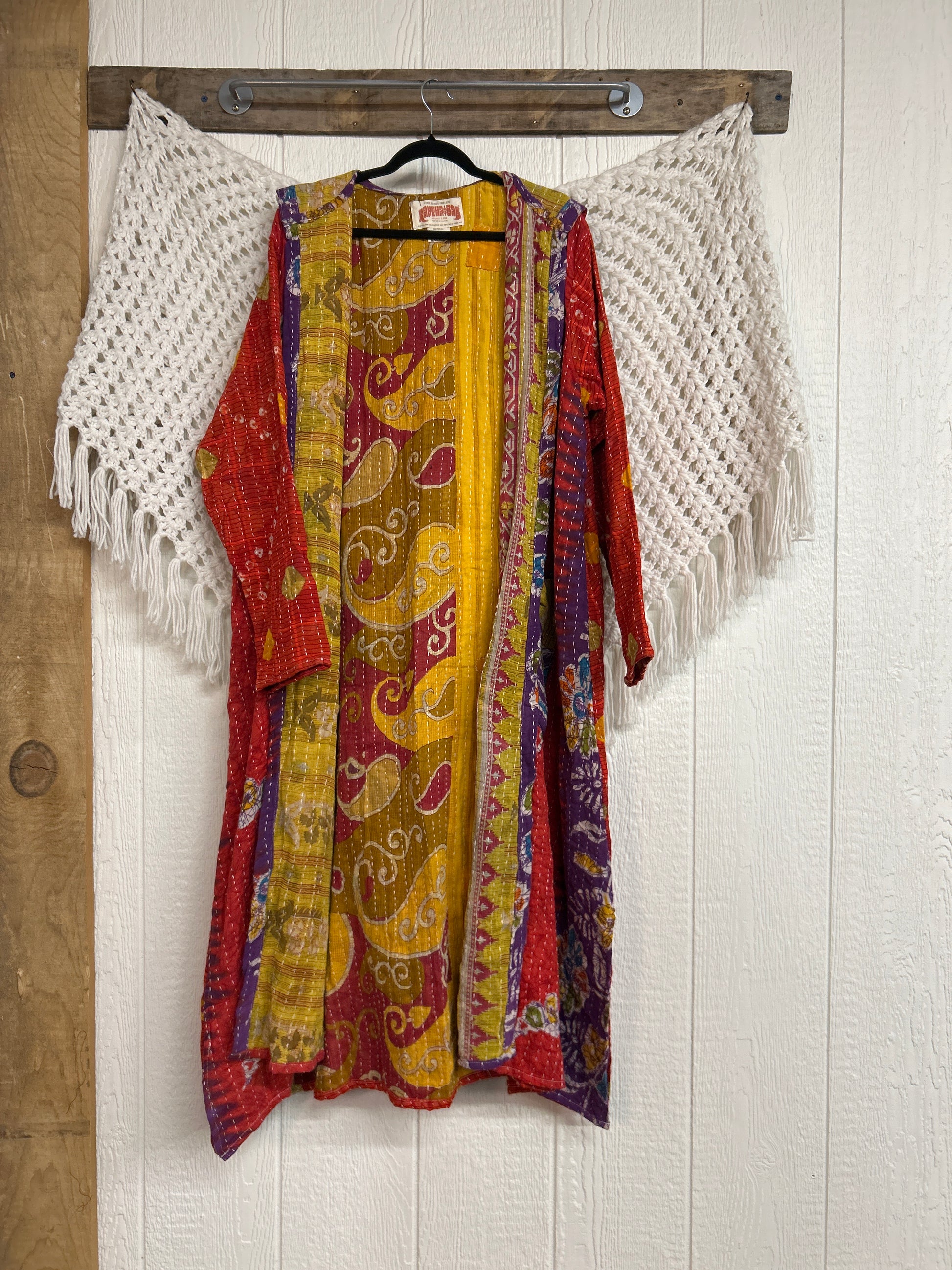 Perfect for layering. The Koverlet Rising Sun Coat is crafted from our koverlet kantha stitched cotton sari,