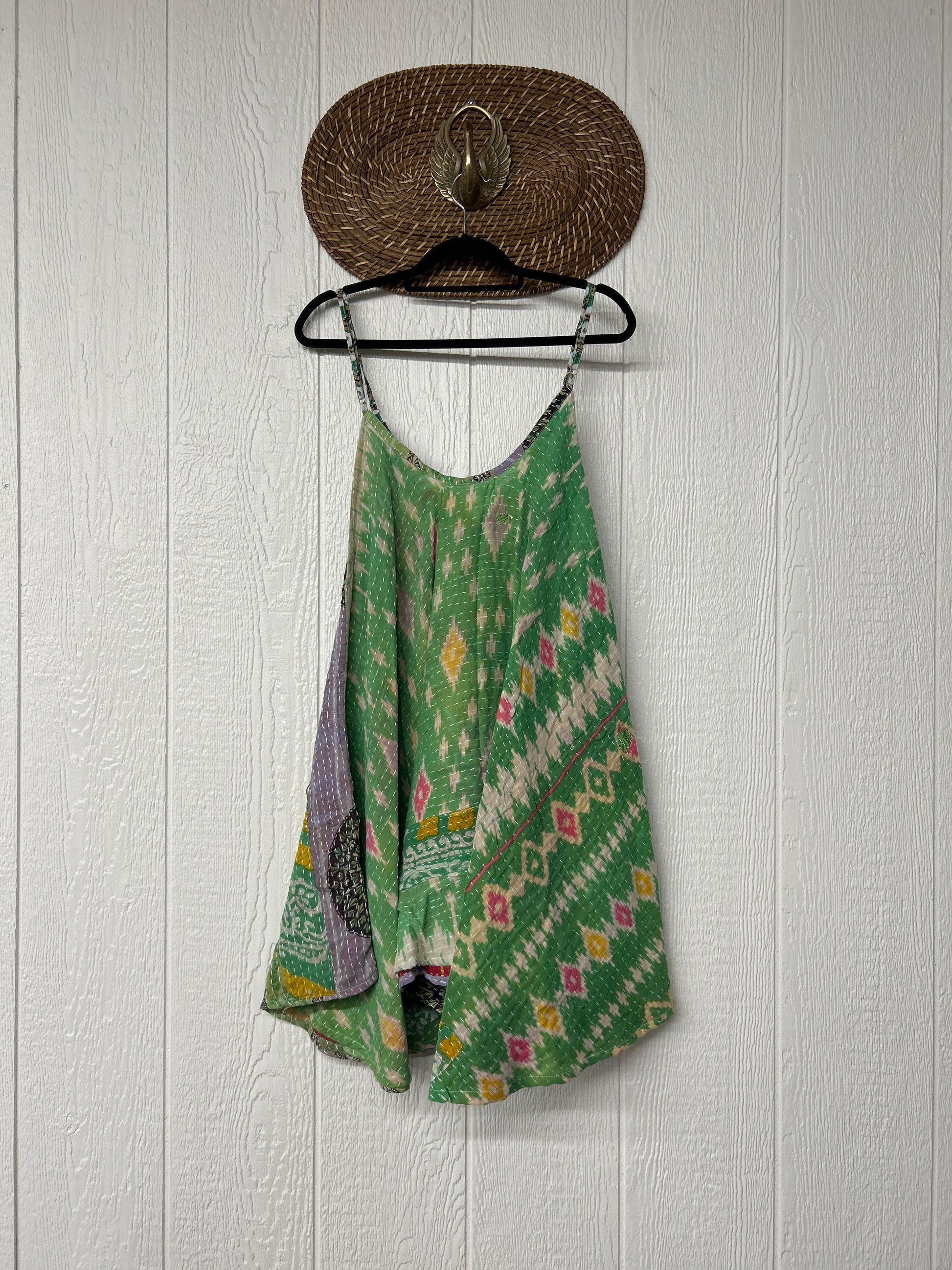 Crafted from our ultra lux cotton Kantha stitch sari the Moonchild Mini Dress features adjustable straps, interior pockets and an exaggerated sweep for extra dimension. A total vibe whether you wear as a layering piece under your favorite Kantha Bae pieces or on it's own.