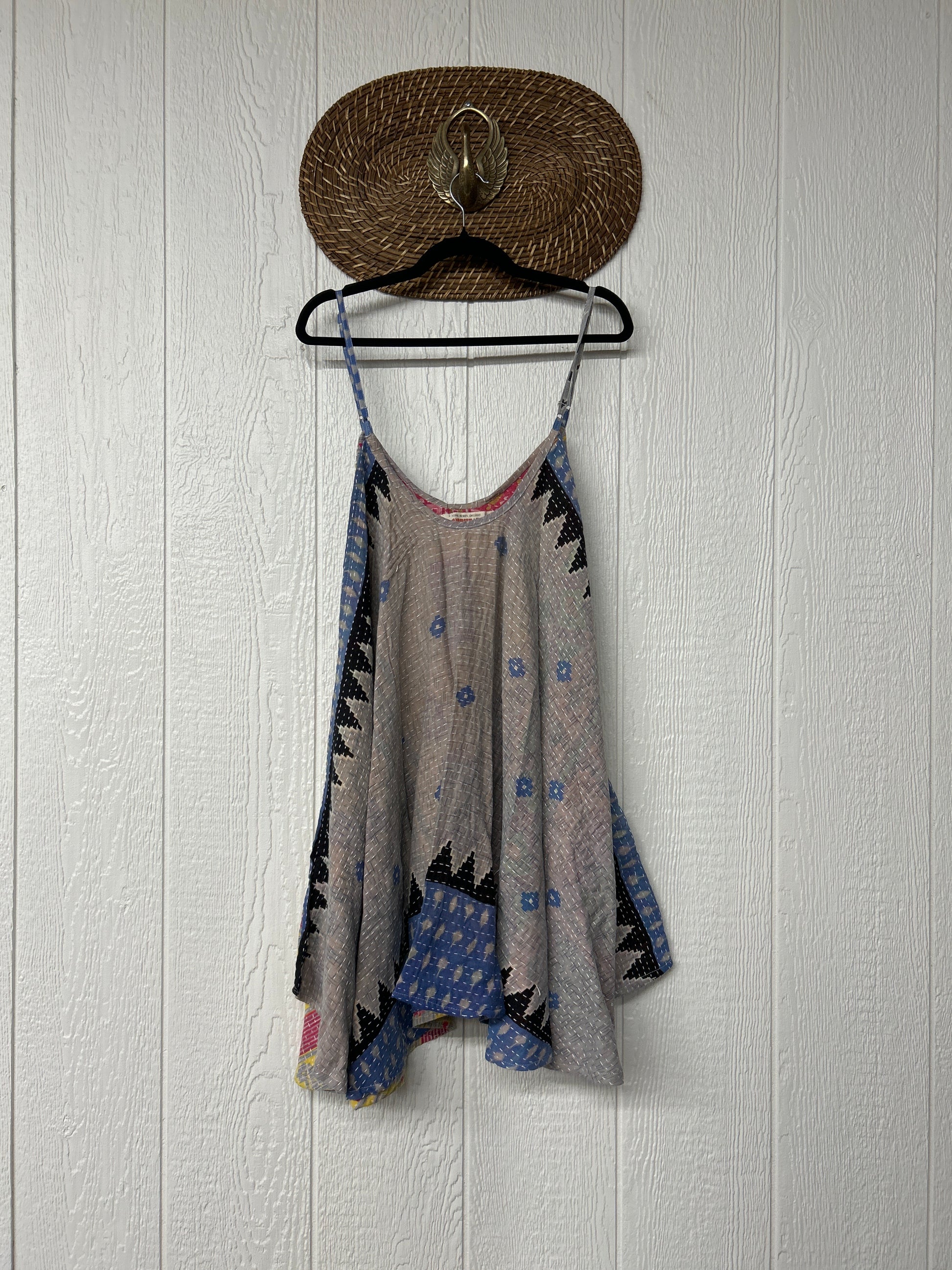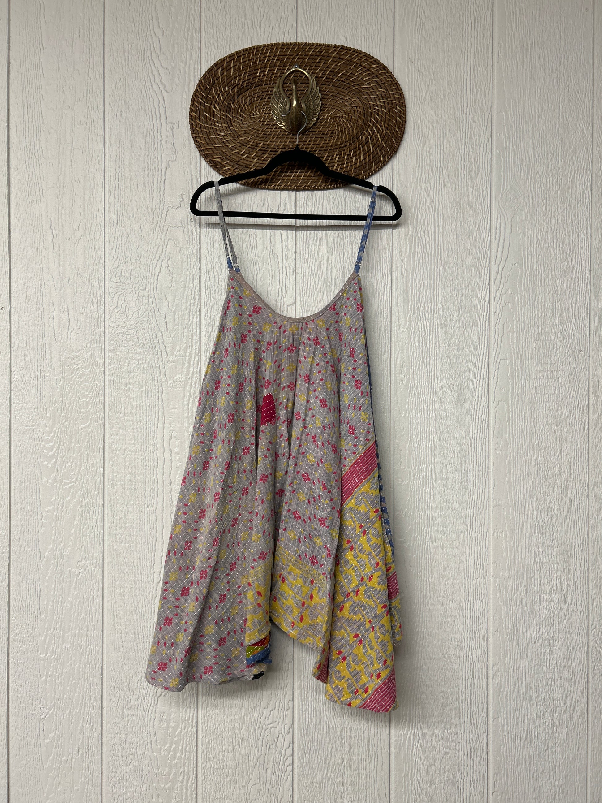 Crafted from our ultra lux cotton Kantha stitch sari the Moonchild Mini Dress features adjustable straps, interior pockets and an exaggerated sweep for extra dimension. A total vibe whether you wear as a layering piece under your favorite Kantha Bae pieces or on it's own.
