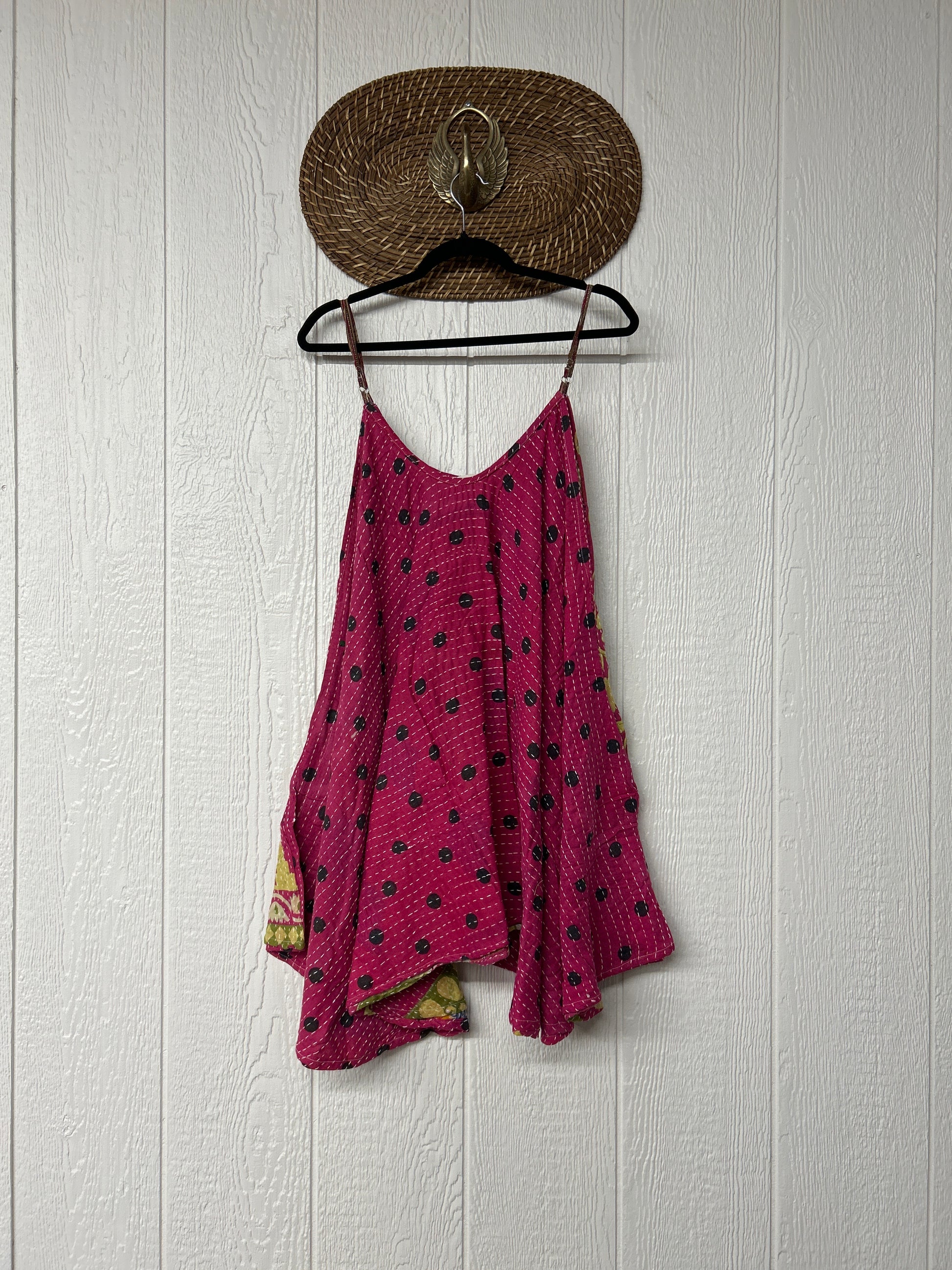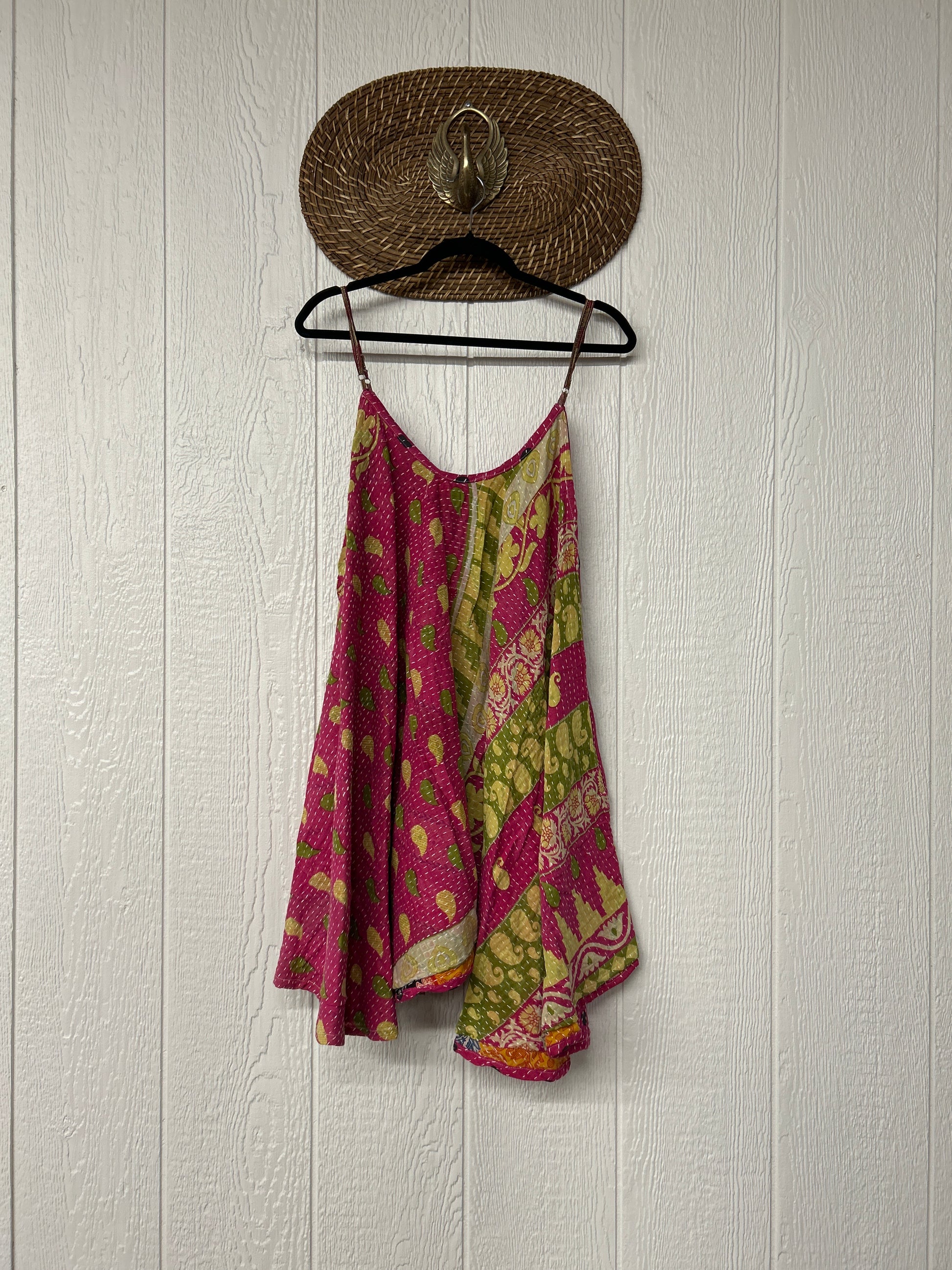 Crafted from our ultra lux cotton Kantha stitch sari the Moonchild Mini Dress features adjustable straps, interior pockets and an exaggerated sweep for extra dimension. A total vibe whether you wear as a layering piece under your favorite Kantha Bae pieces or on it's own.