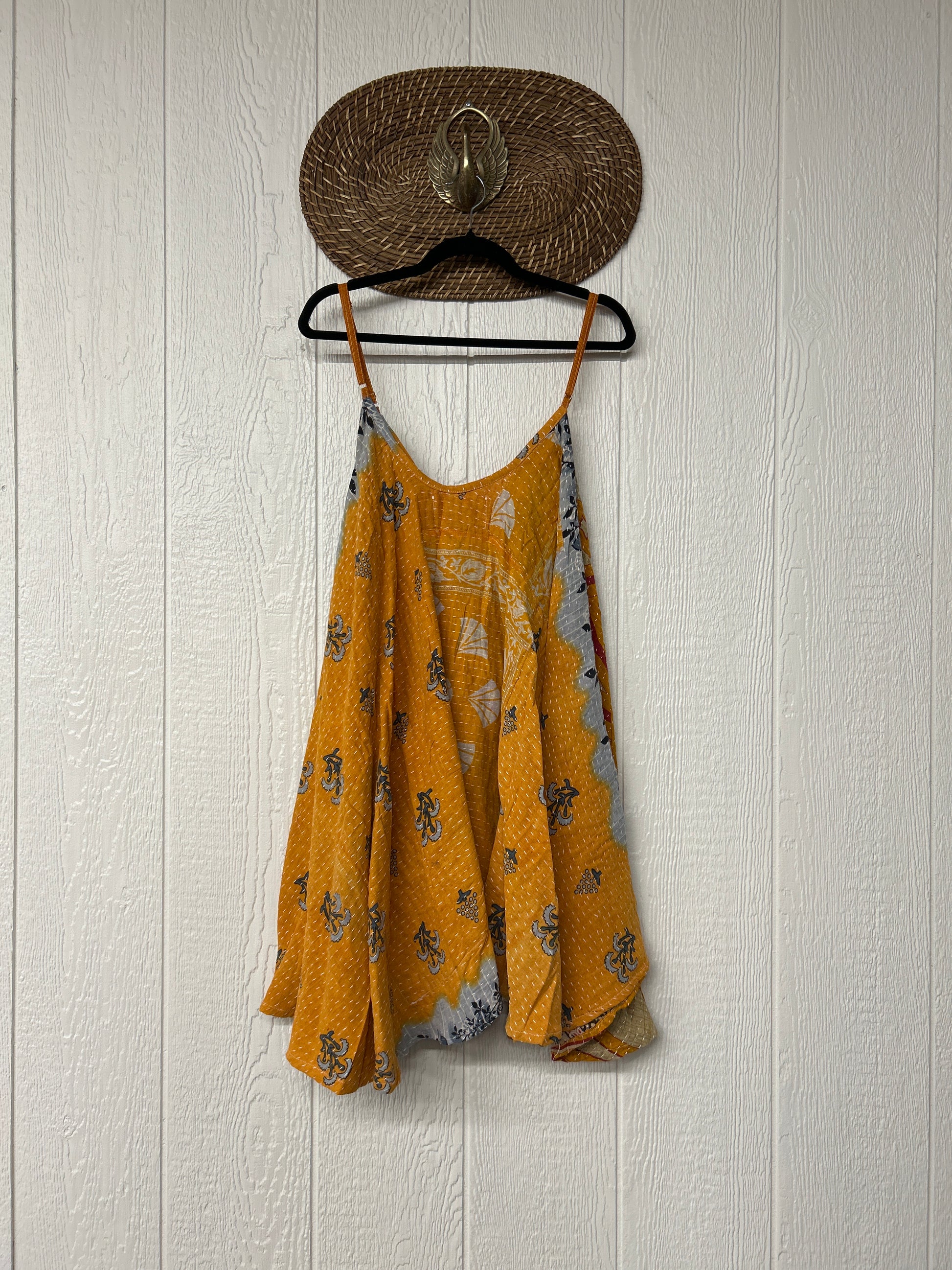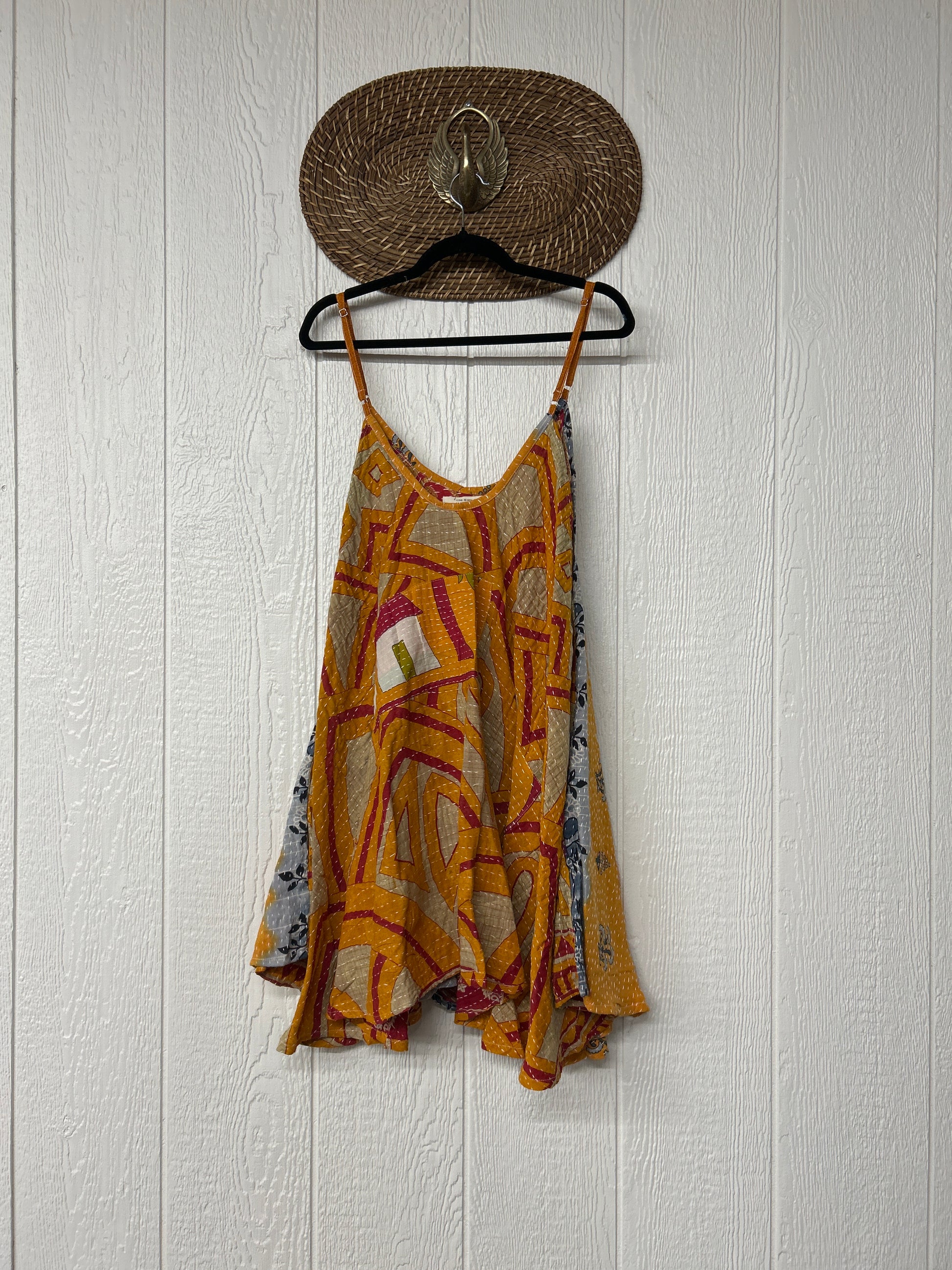 Crafted from our ultra lux cotton Kantha stitch sari the Moonchild Mini Dress features adjustable straps, interior pockets and an exaggerated sweep for extra dimension. A total vibe whether you wear as a layering piece under your favorite Kantha Bae pieces or on it's own.