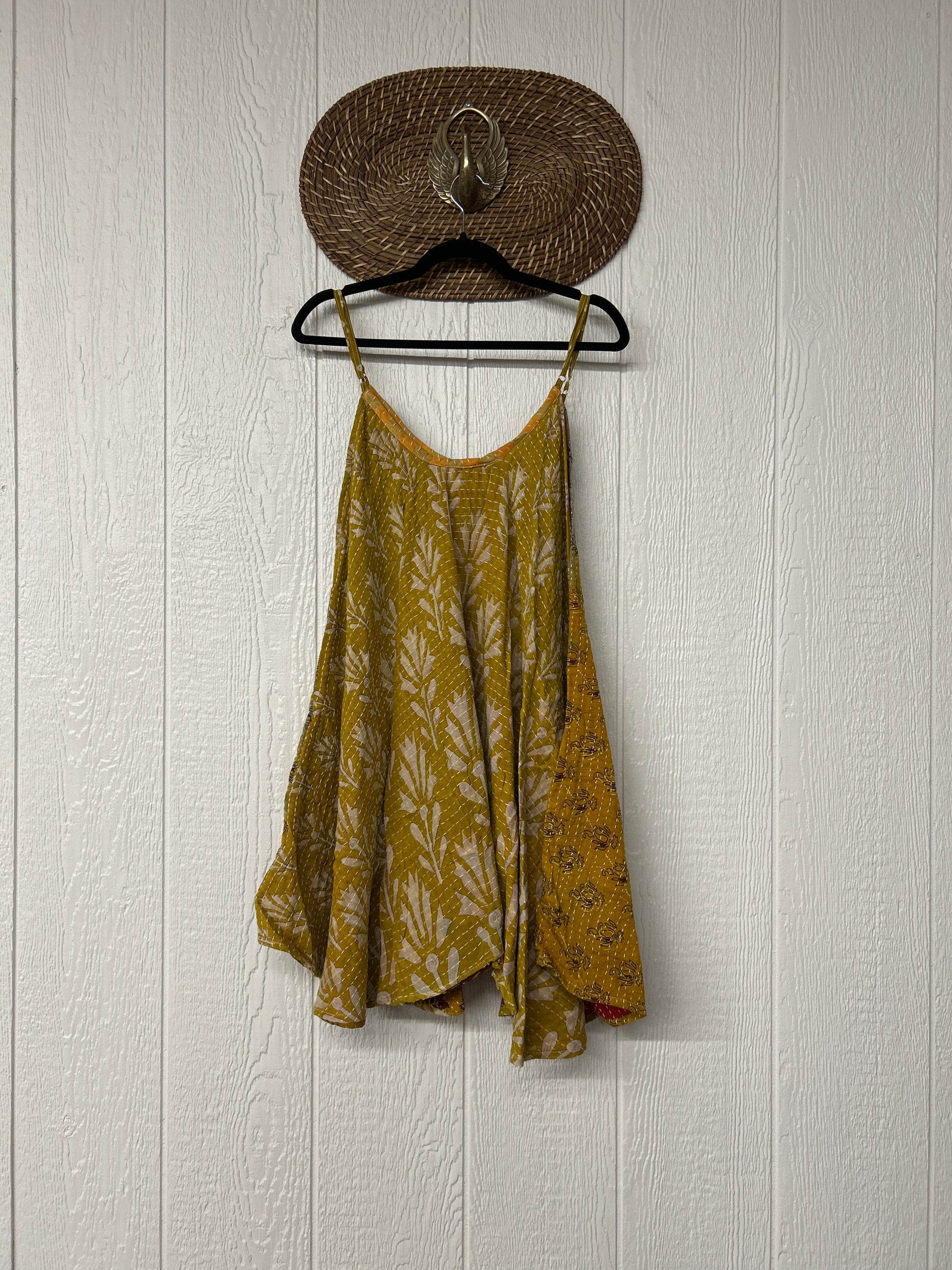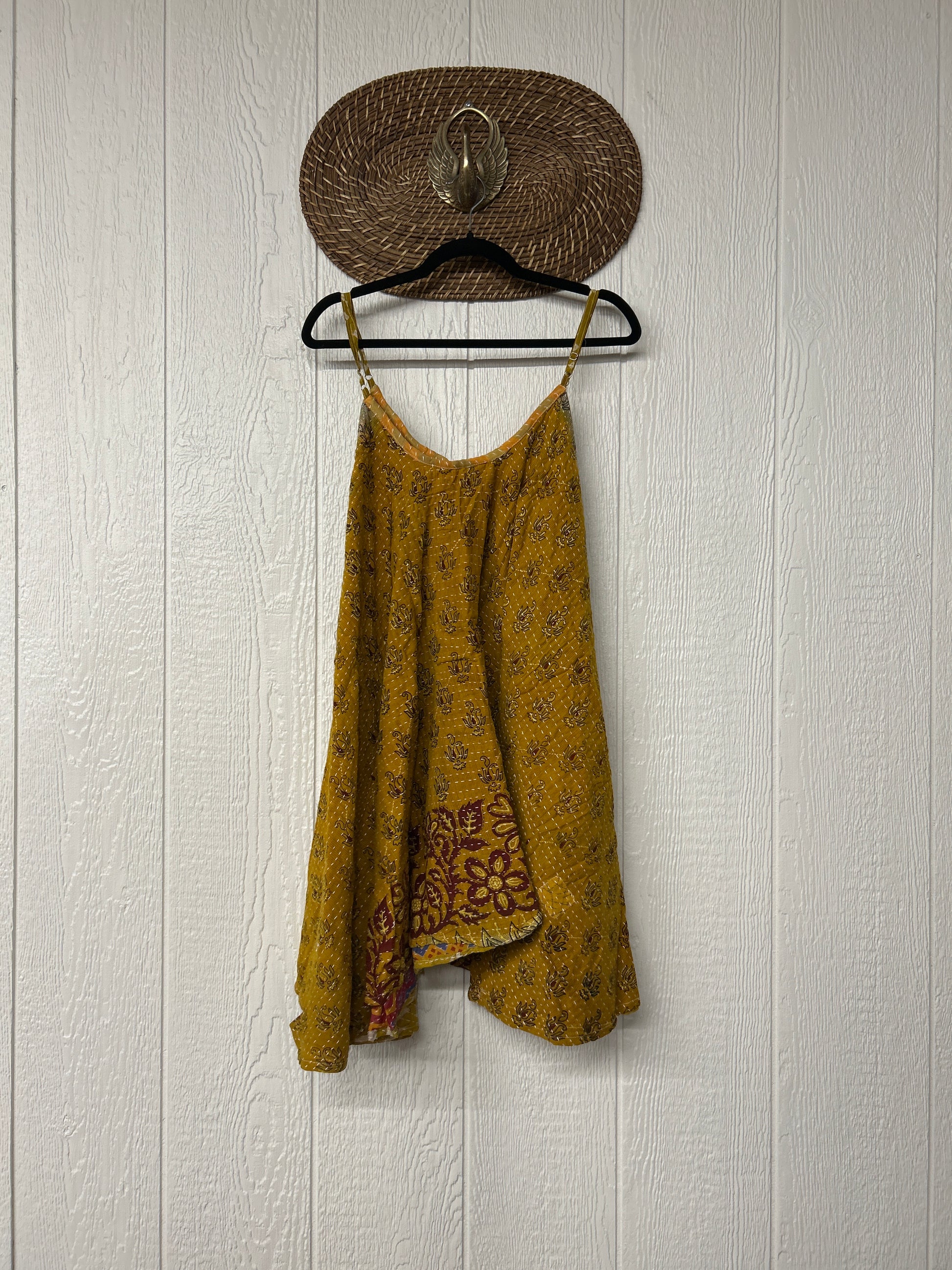 Crafted from our ultra lux cotton Kantha stitch sari the Moonchild Mini Dress features adjustable straps, interior pockets and an exaggerated sweep for extra dimension. A total vibe whether you wear as a layering piece under your favorite Kantha Bae pieces or on it's own.