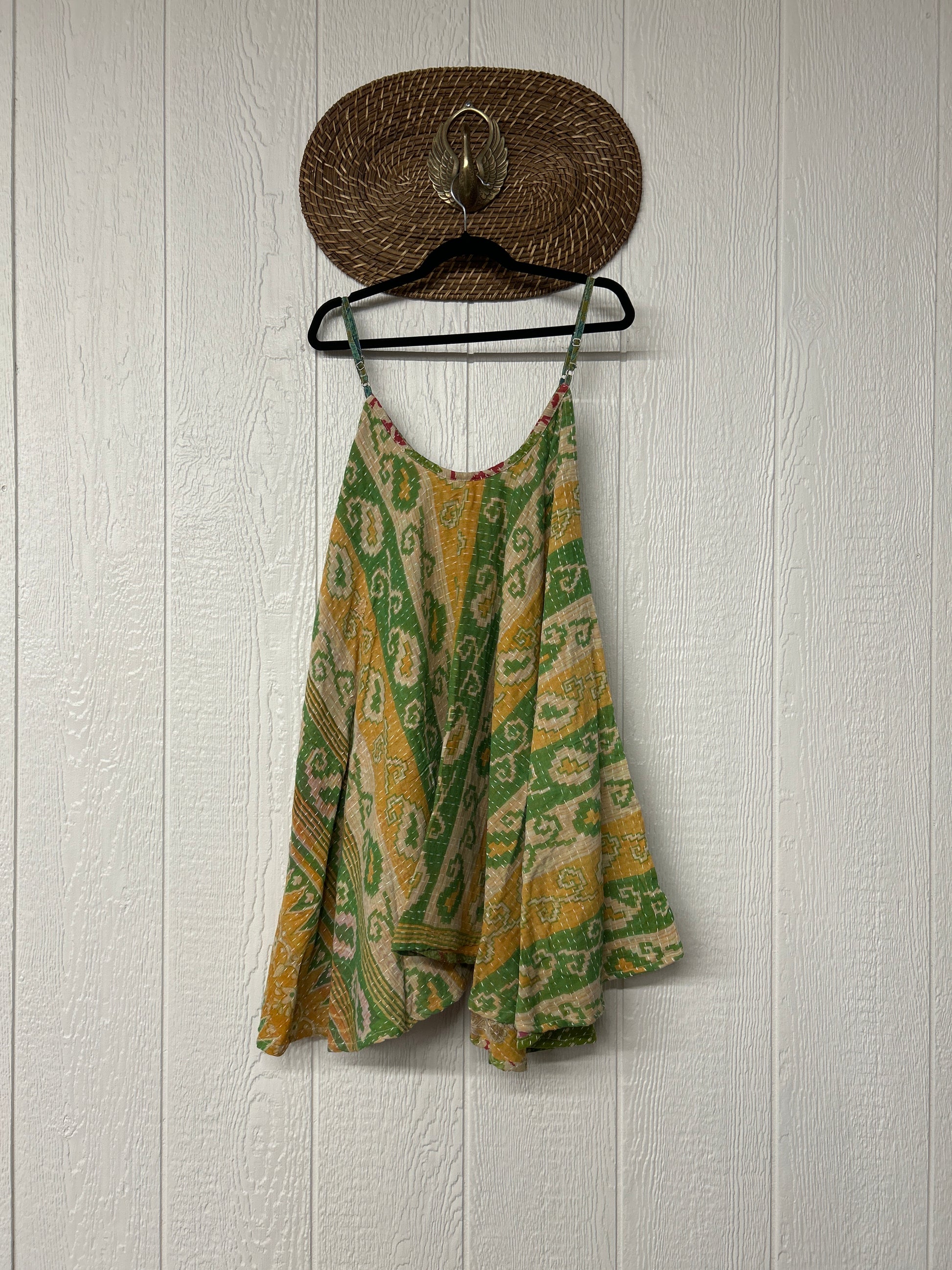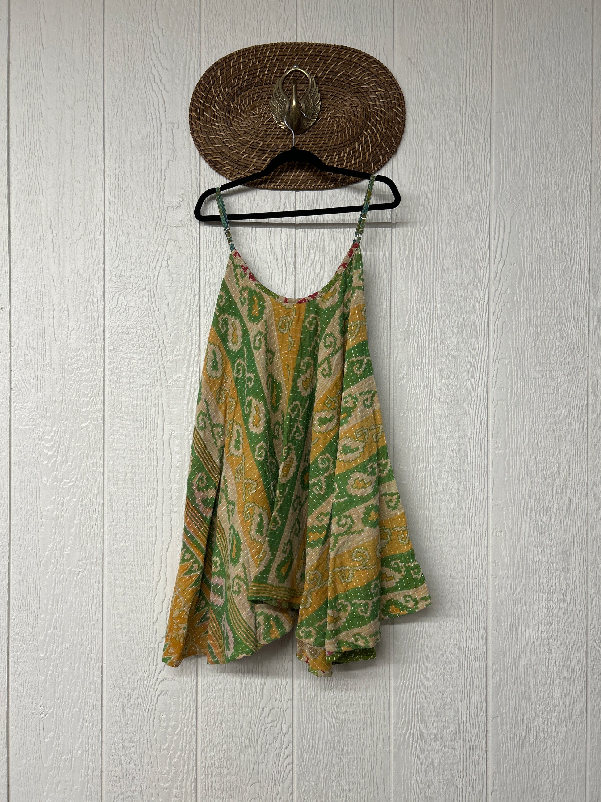 Crafted from our ultra lux cotton Kantha stitch sari the Moonchild Mini Dress features adjustable straps, interior pockets and an exaggerated sweep for extra dimension. A total vibe whether you wear as a layering piece under your favorite Kantha Bae pieces or on it's own.