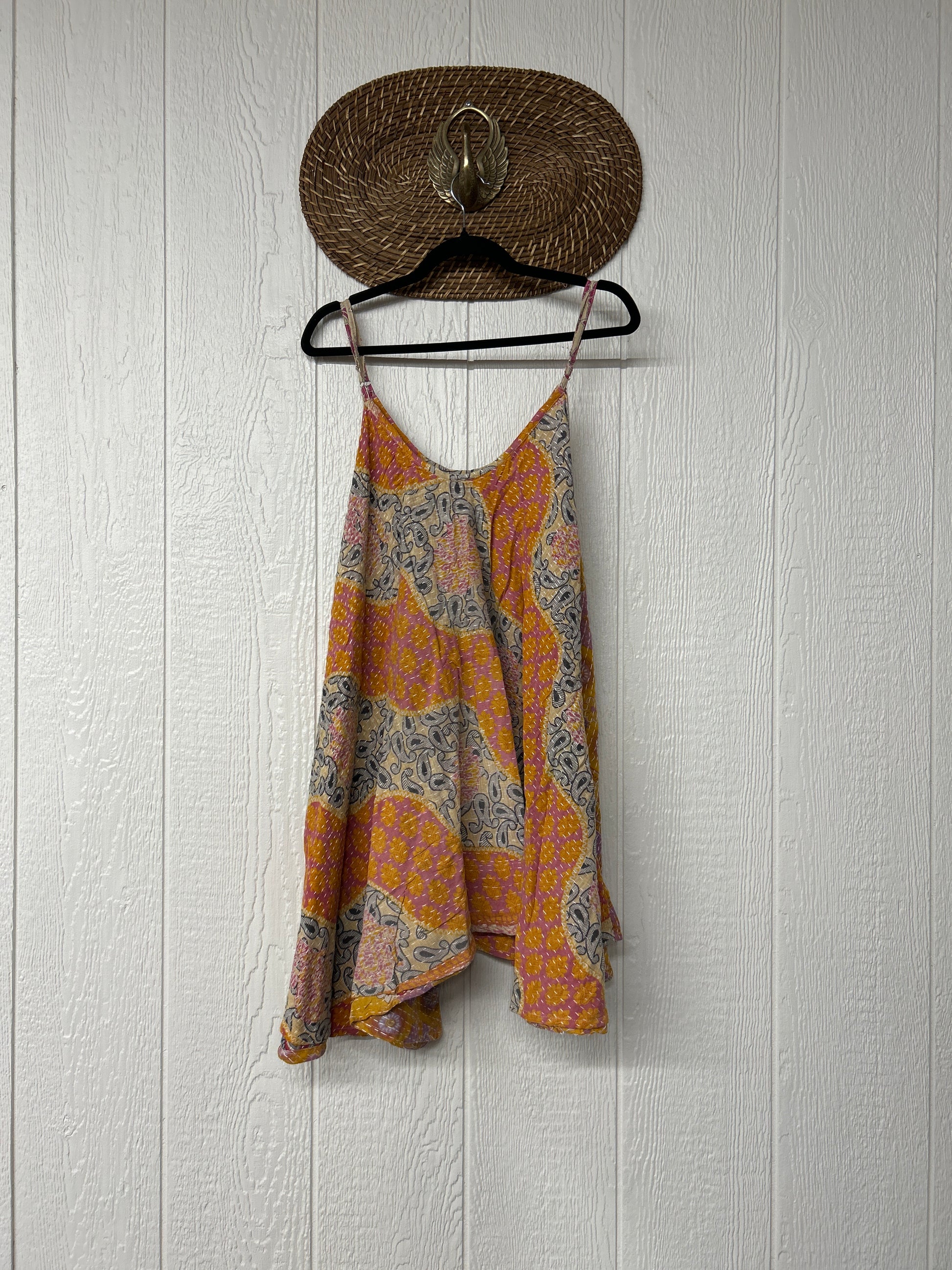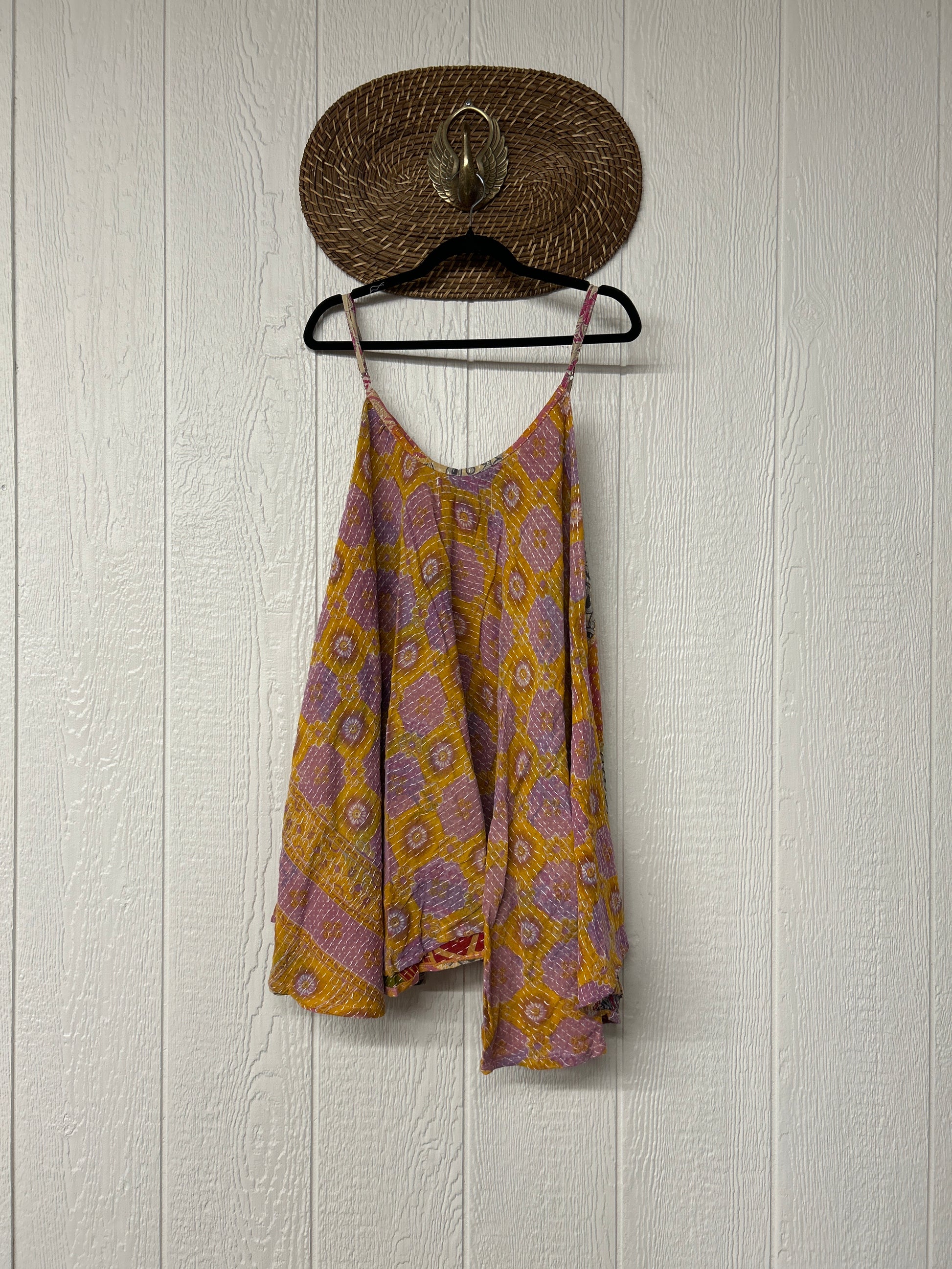 Crafted from our ultra lux cotton Kantha stitch sari the Moonchild Mini Dress features adjustable straps, interior pockets and an exaggerated sweep for extra dimension. A total vibe whether you wear as a layering piece under your favorite Kantha Bae pieces or on it's own.