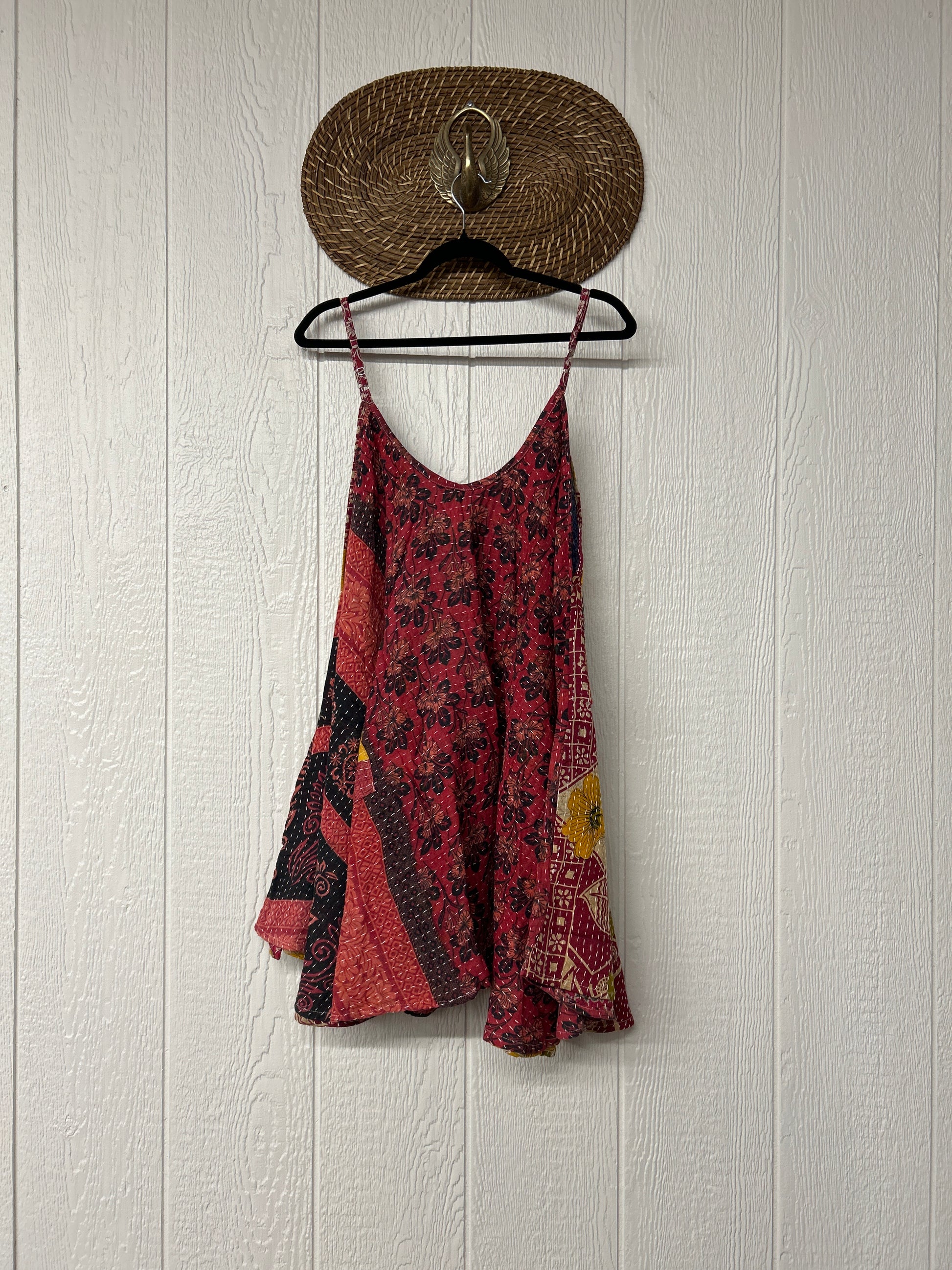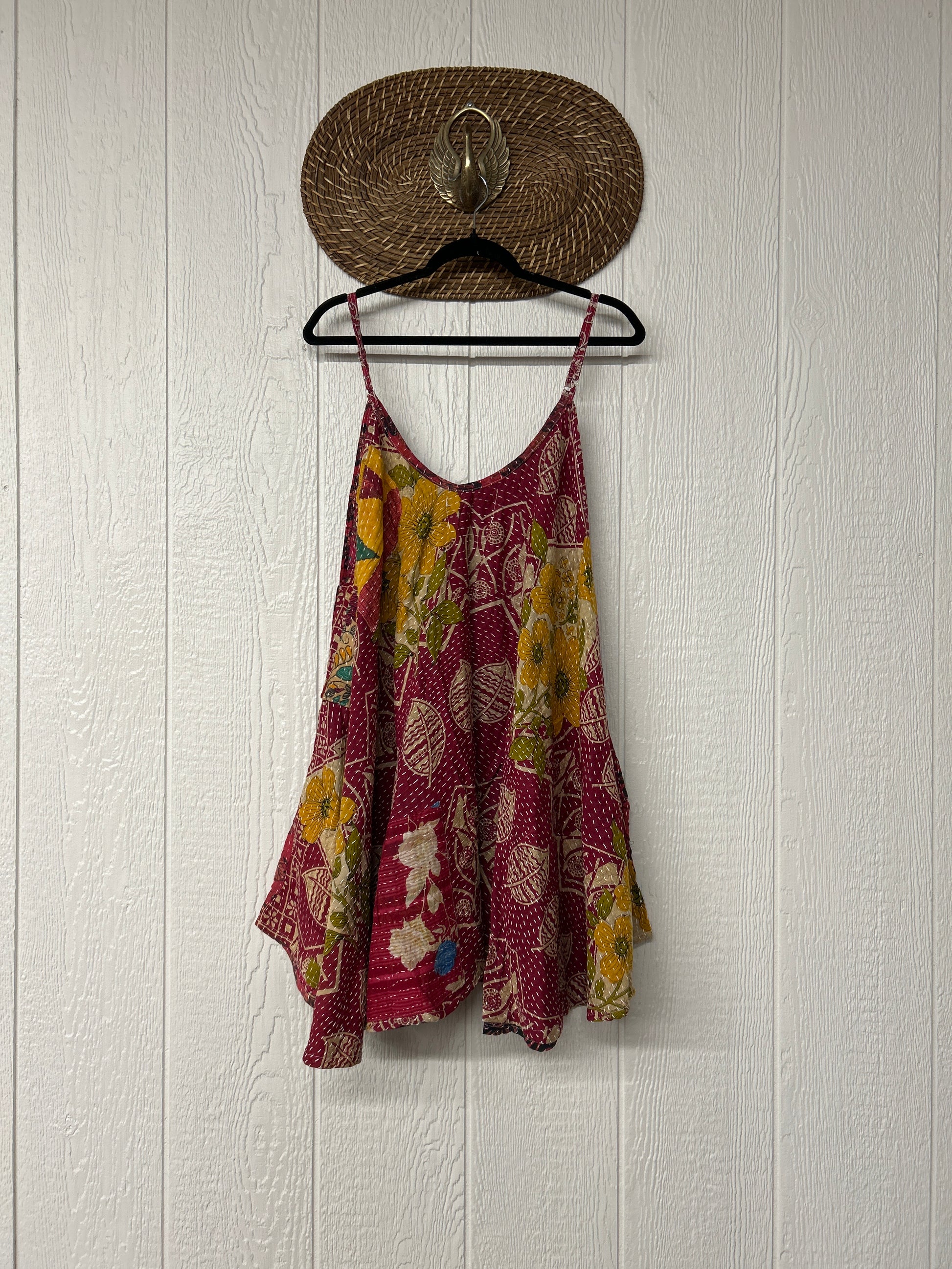 Crafted from our ultra lux cotton Kantha stitch sari the Moonchild Mini Dress features adjustable straps, interior pockets and an exaggerated sweep for extra dimension. A total vibe whether you wear as a layering piece under your favorite Kantha Bae pieces or on it's own.