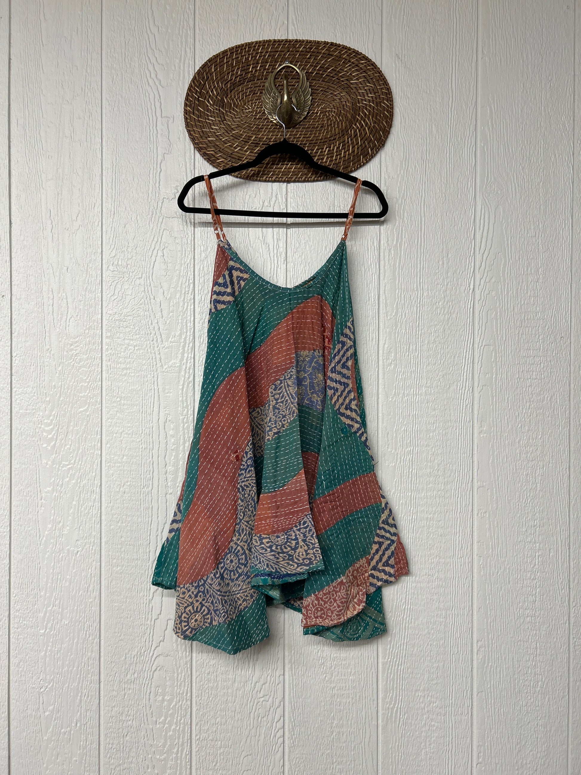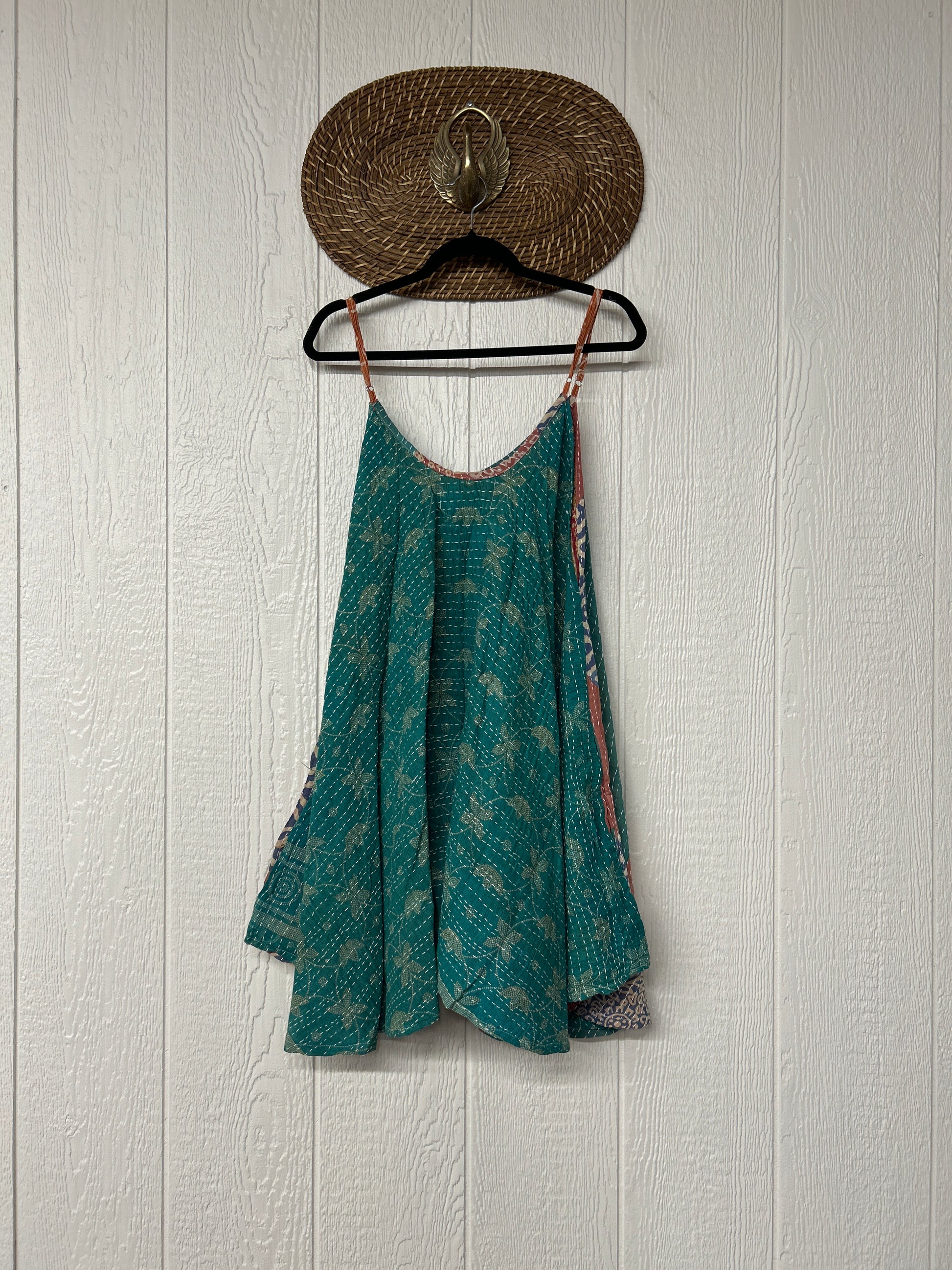 Crafted from our ultra lux cotton Kantha stitch sari the Moonchild Mini Dress features adjustable straps, interior pockets and an exaggerated sweep for extra dimension. A total vibe whether you wear as a layering piece under your favorite Kantha Bae pieces or on it's own.