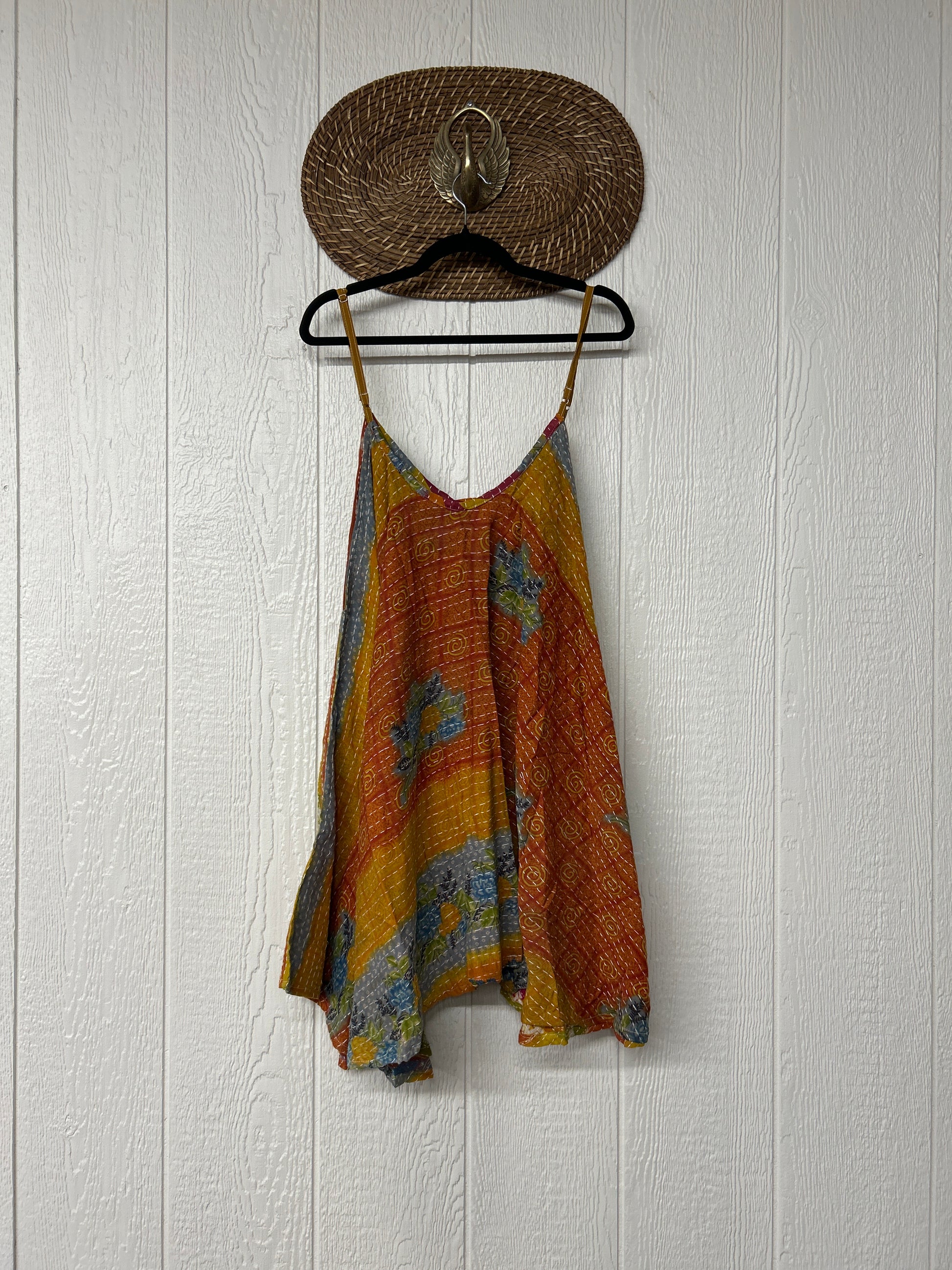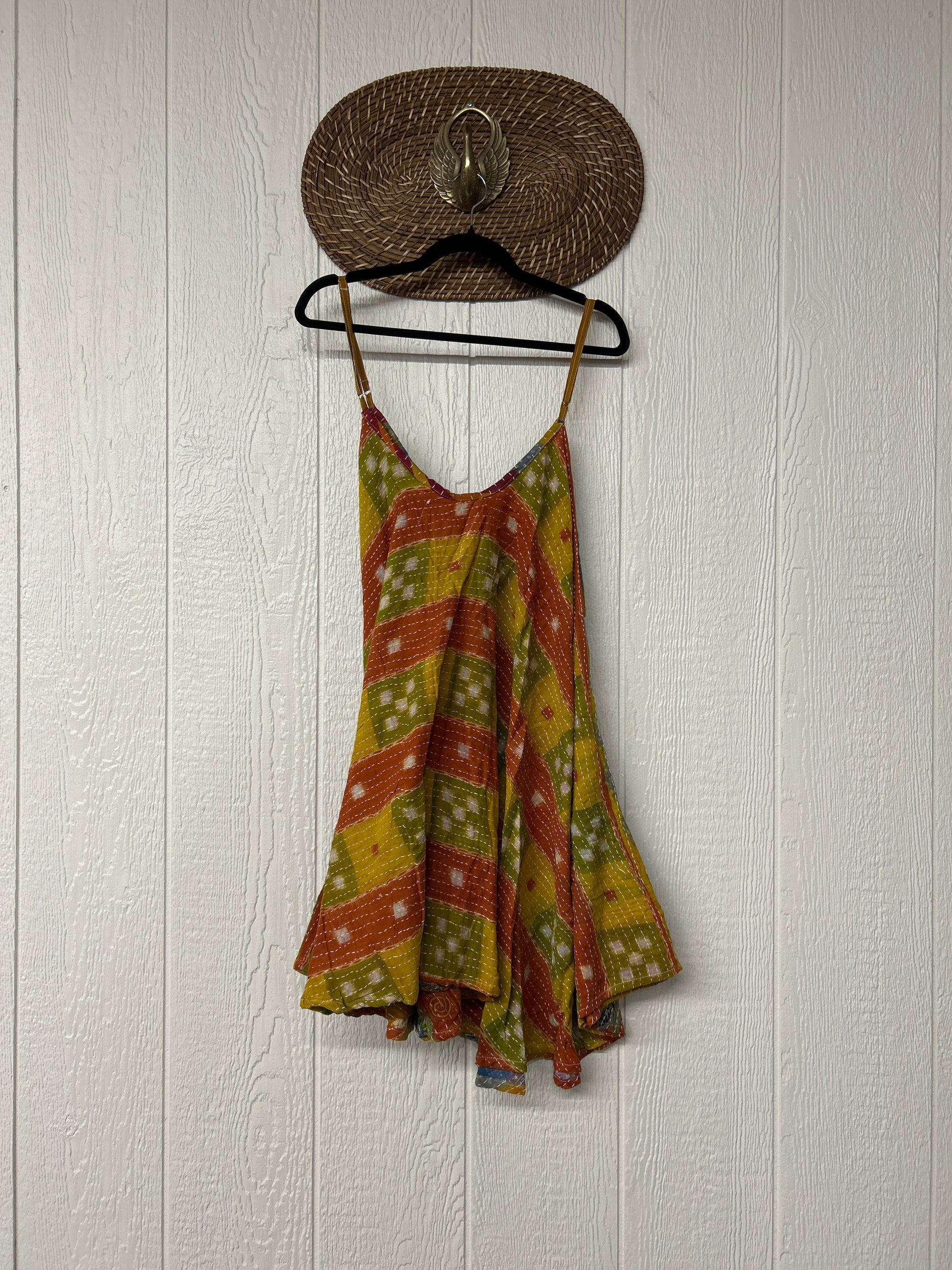 Crafted from our ultra lux cotton Kantha stitch sari the Moonchild Mini Dress features adjustable straps, interior pockets and an exaggerated sweep for extra dimension. A total vibe whether you wear as a layering piece under your favorite Kantha Bae pieces or on it's own.