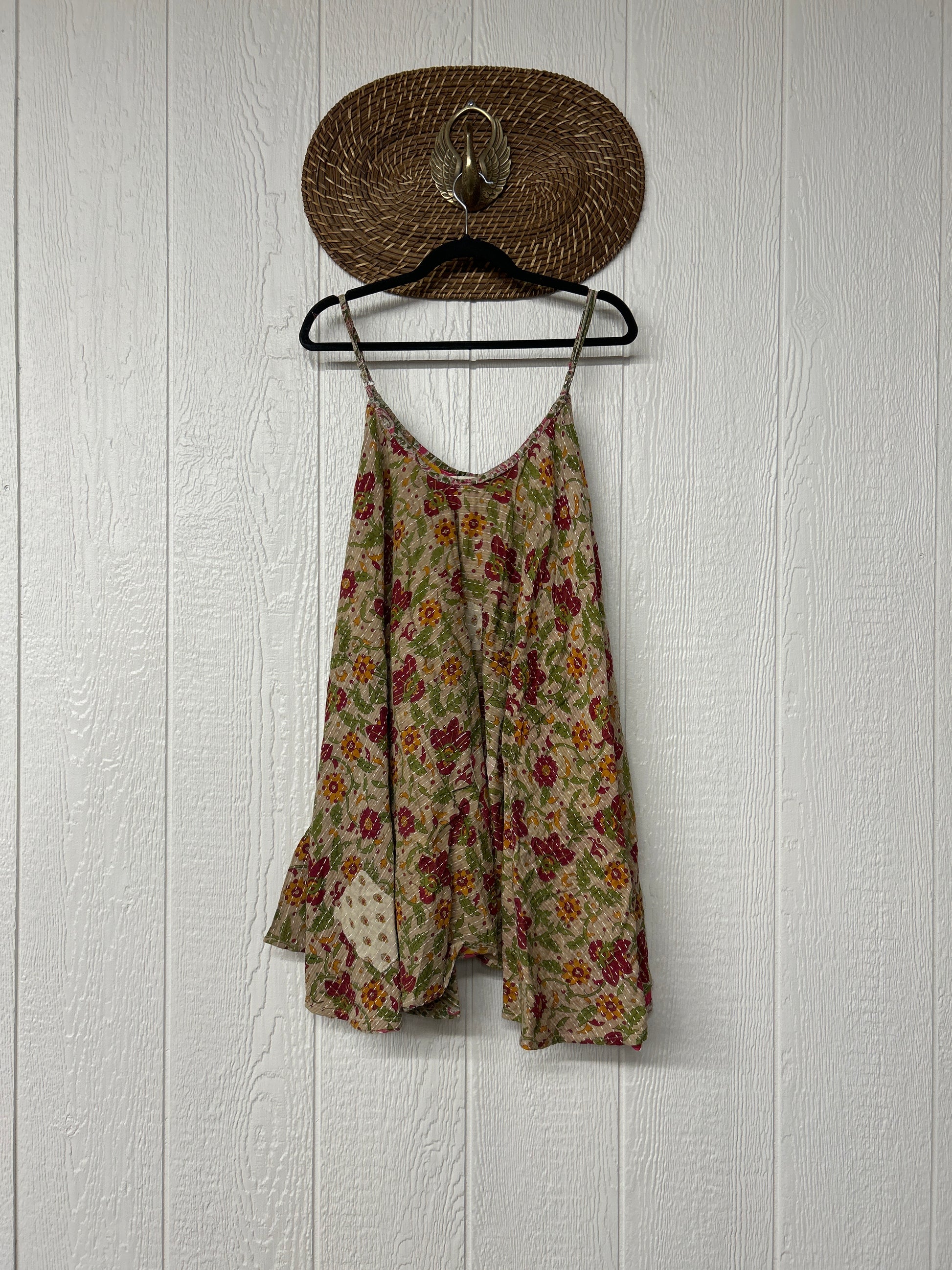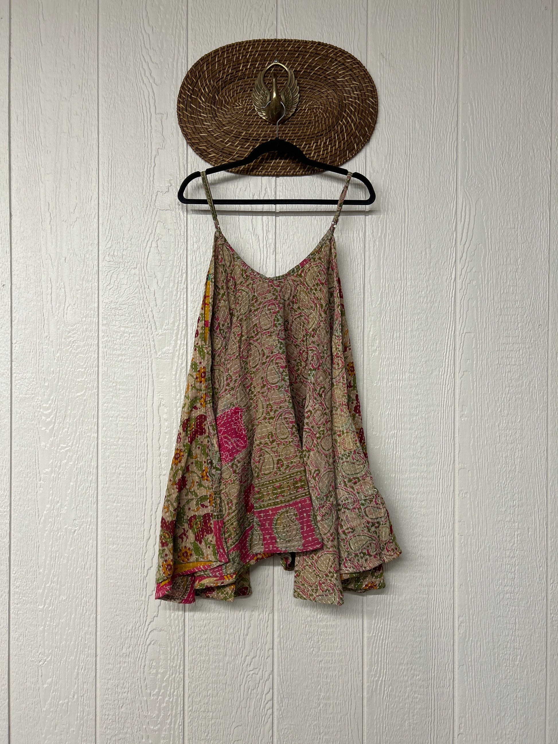 Crafted from our ultra lux cotton Kantha stitch sari the Moonchild Mini Dress features adjustable straps, interior pockets and an exaggerated sweep for extra dimension. A total vibe whether you wear as a layering piece under your favorite Kantha Bae pieces or on it's own.