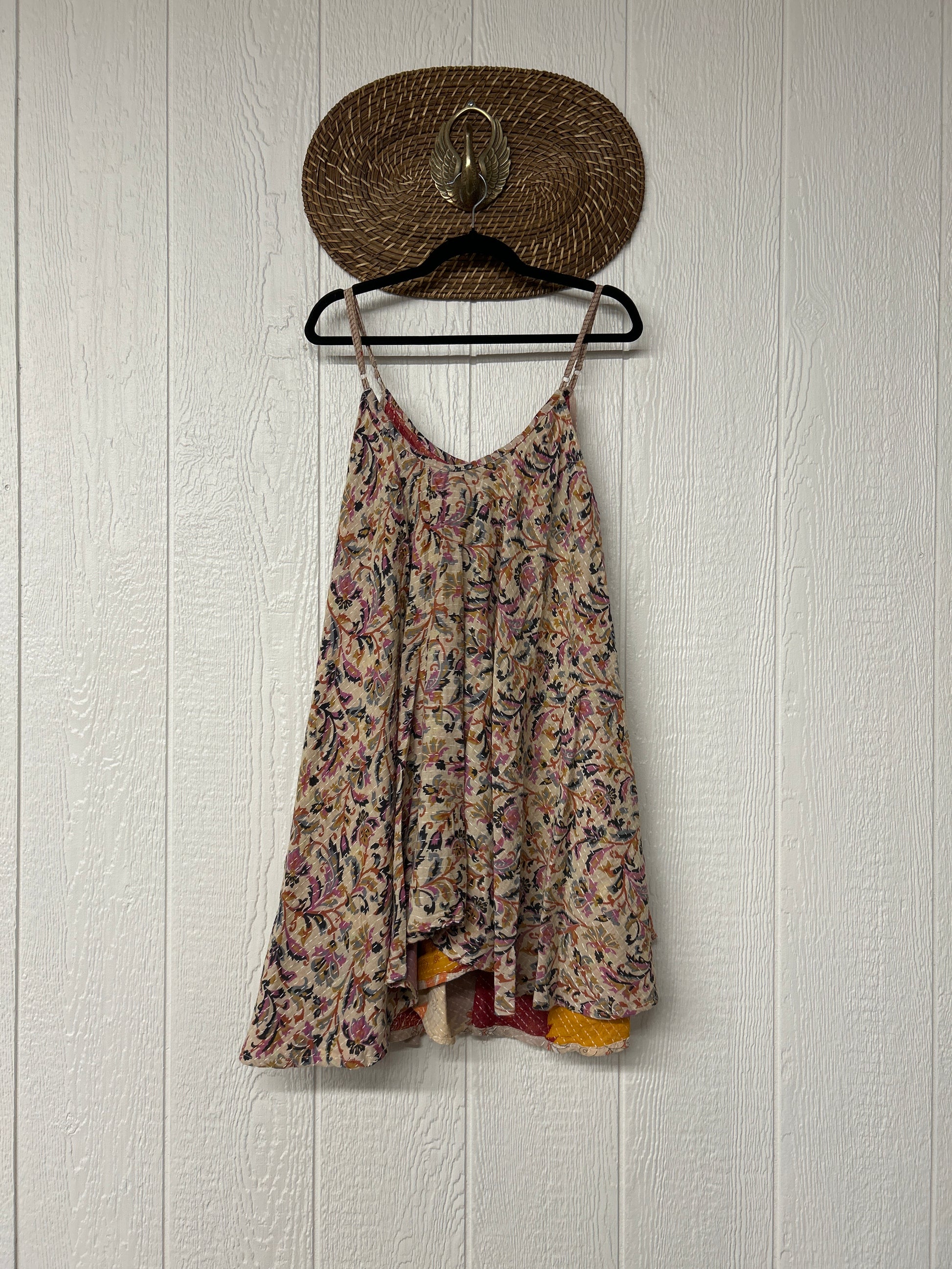 Crafted from our ultra lux cotton Kantha stitch sari the Moonchild Mini Dress features adjustable straps, interior pockets and an exaggerated sweep for extra dimension. A total vibe whether you wear as a layering piece under your favorite Kantha Bae pieces or on it's own.