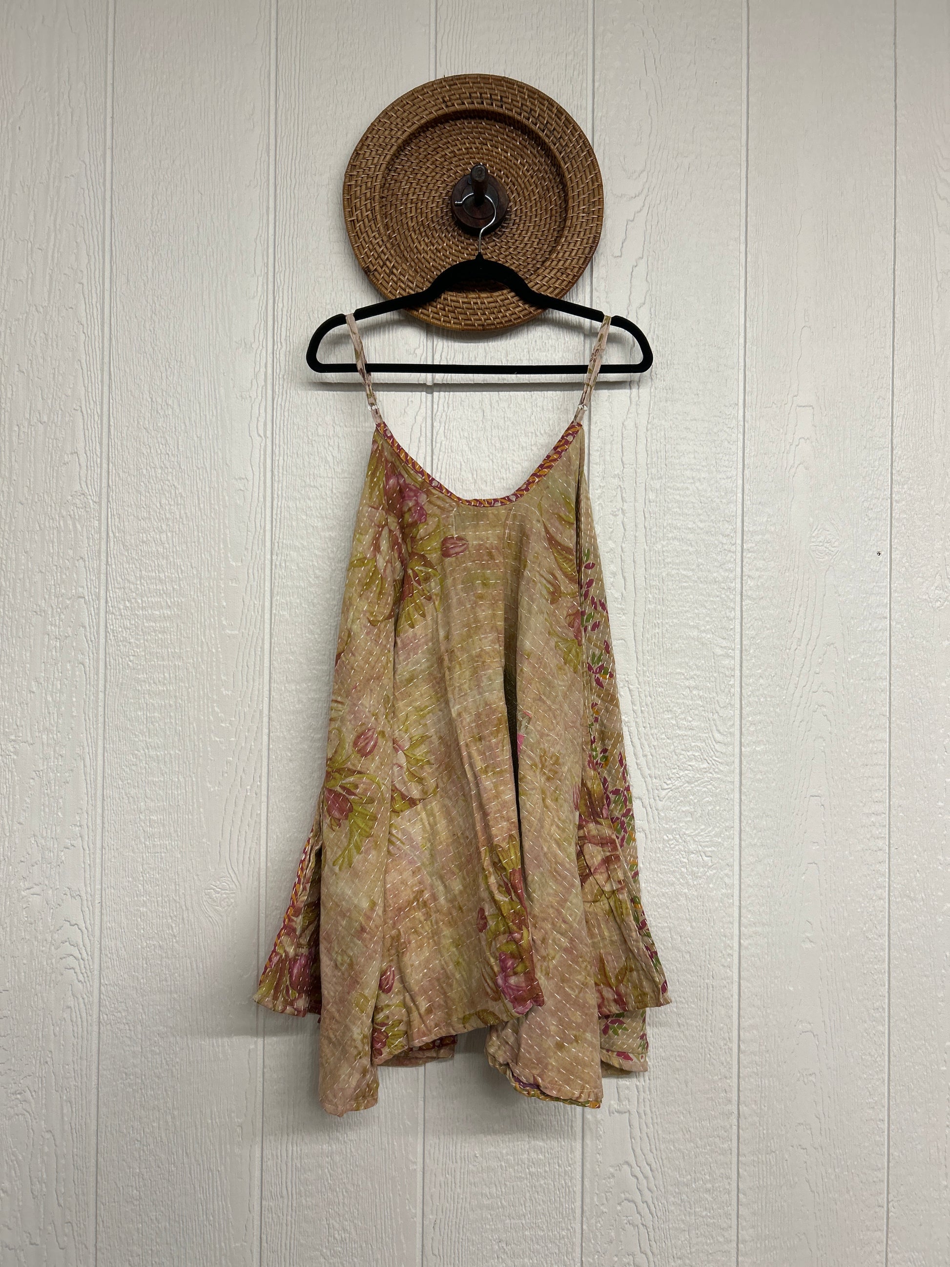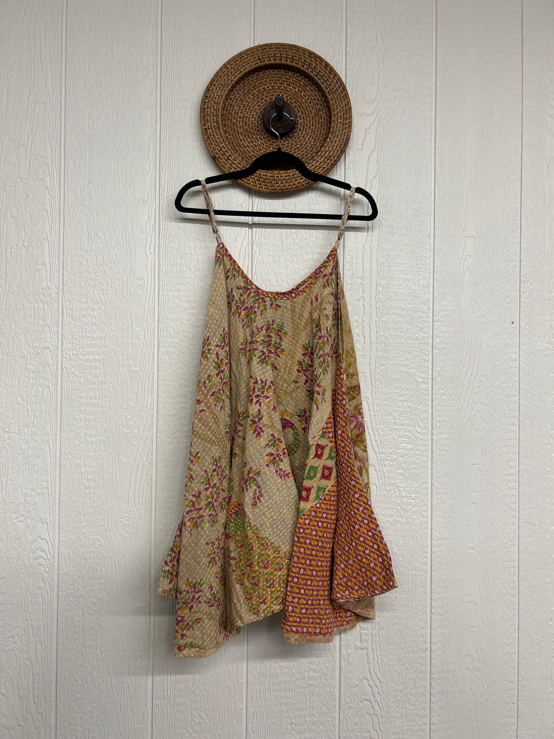 Crafted from our ultra lux cotton Kantha stitch sari the Moonchild Mini Dress features adjustable straps, interior pockets and an exaggerated sweep for extra dimension. A total vibe whether you wear as a layering piece under your favorite Kantha Bae pieces or on it's own.