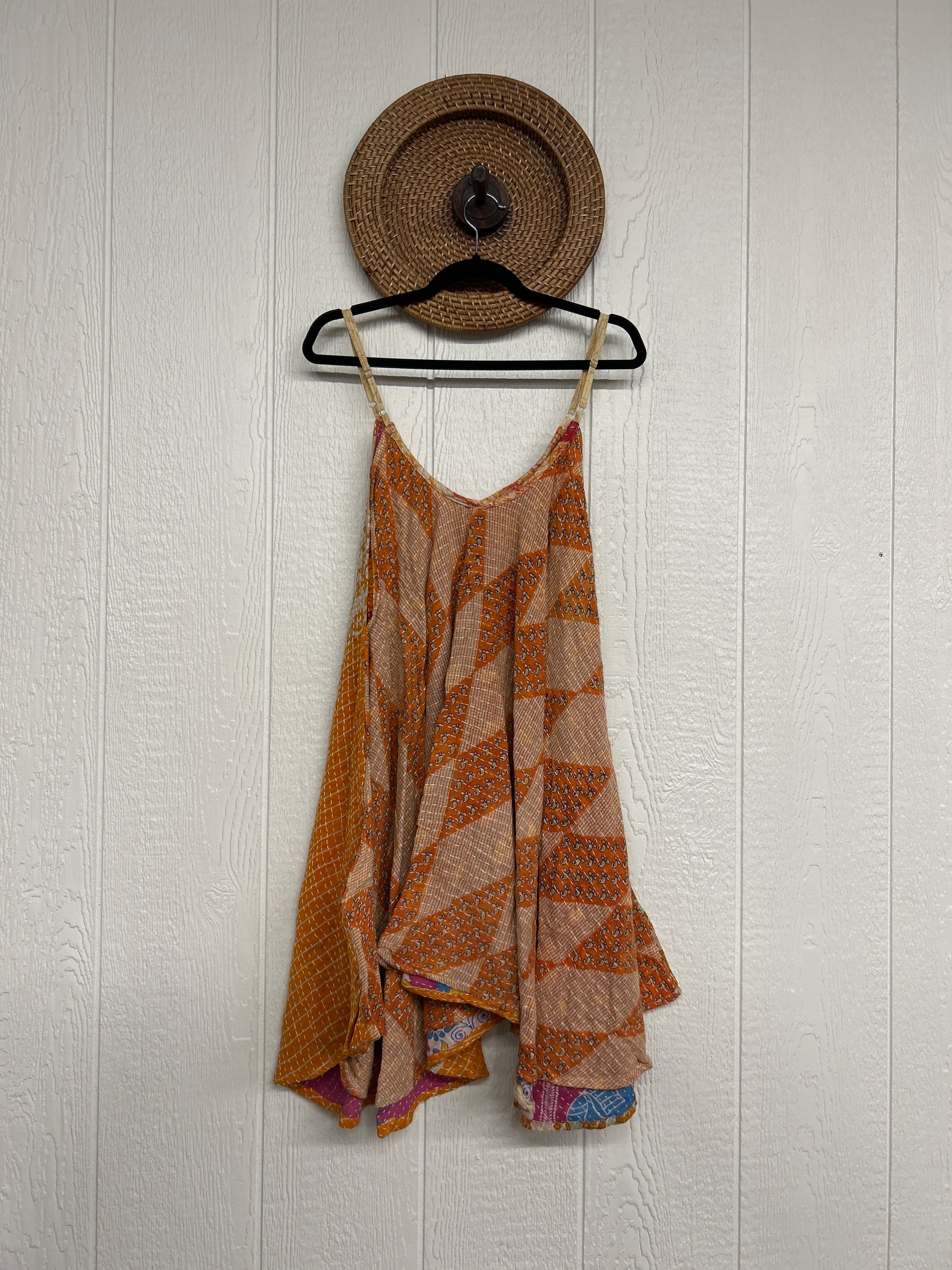 Crafted from our ultra lux cotton Kantha stitch sari the Moonchild Mini Dress features adjustable straps, interior pockets and an exaggerated sweep for extra dimension. A total vibe whether you wear as a layering piece under your favorite Kantha Bae pieces or on it's own.