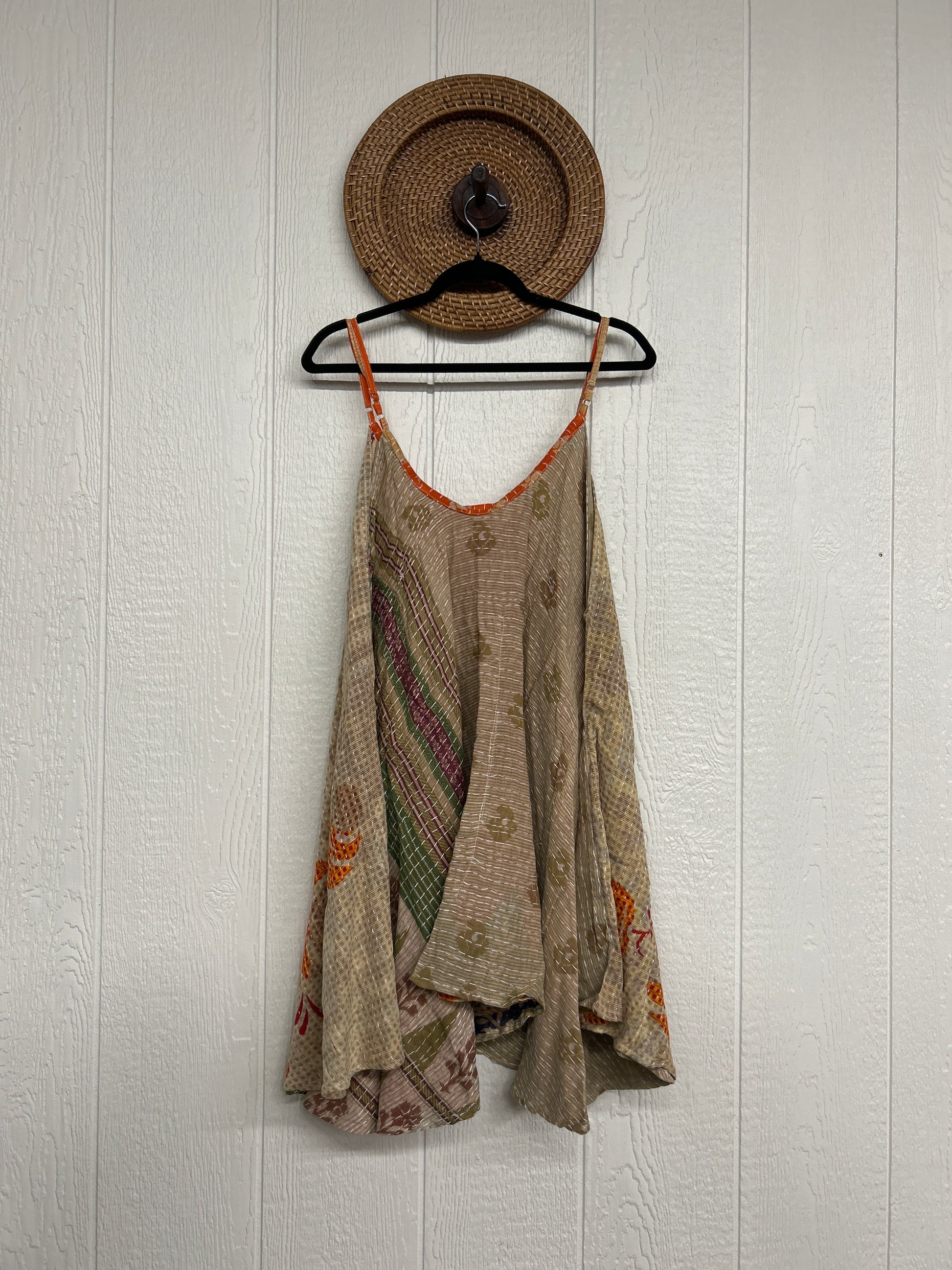 Crafted from our ultra lux cotton Kantha stitch sari the Moonchild Mini Dress features adjustable straps, interior pockets and an exaggerated sweep for extra dimension. A total vibe whether you wear as a layering piece under your favorite Kantha Bae pieces or on it's own.