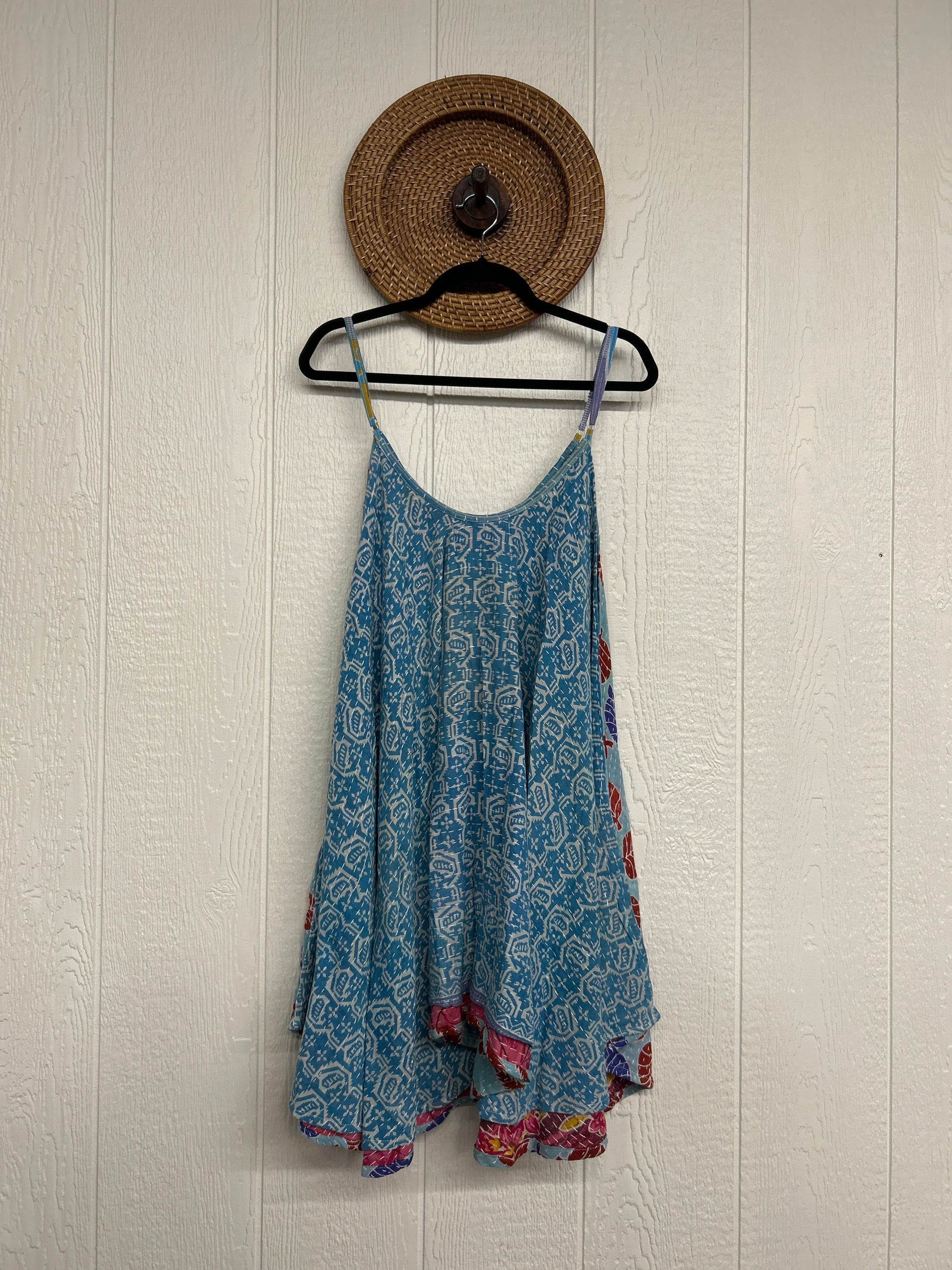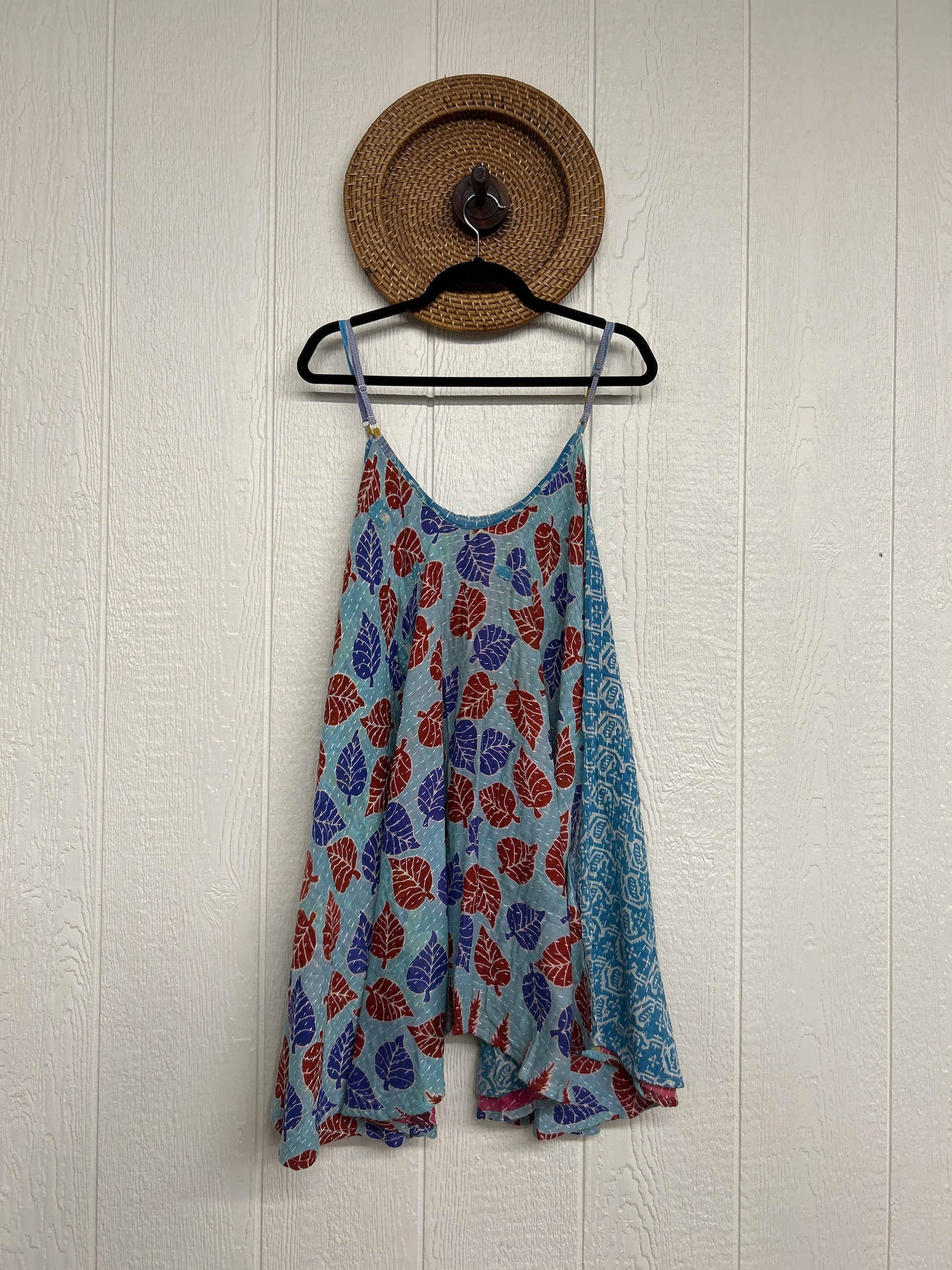 Crafted from our ultra lux cotton Kantha stitch sari the Moonchild Mini Dress features adjustable straps, interior pockets and an exaggerated sweep for extra dimension. A total vibe whether you wear as a layering piece under your favorite Kantha Bae pieces or on it's own.