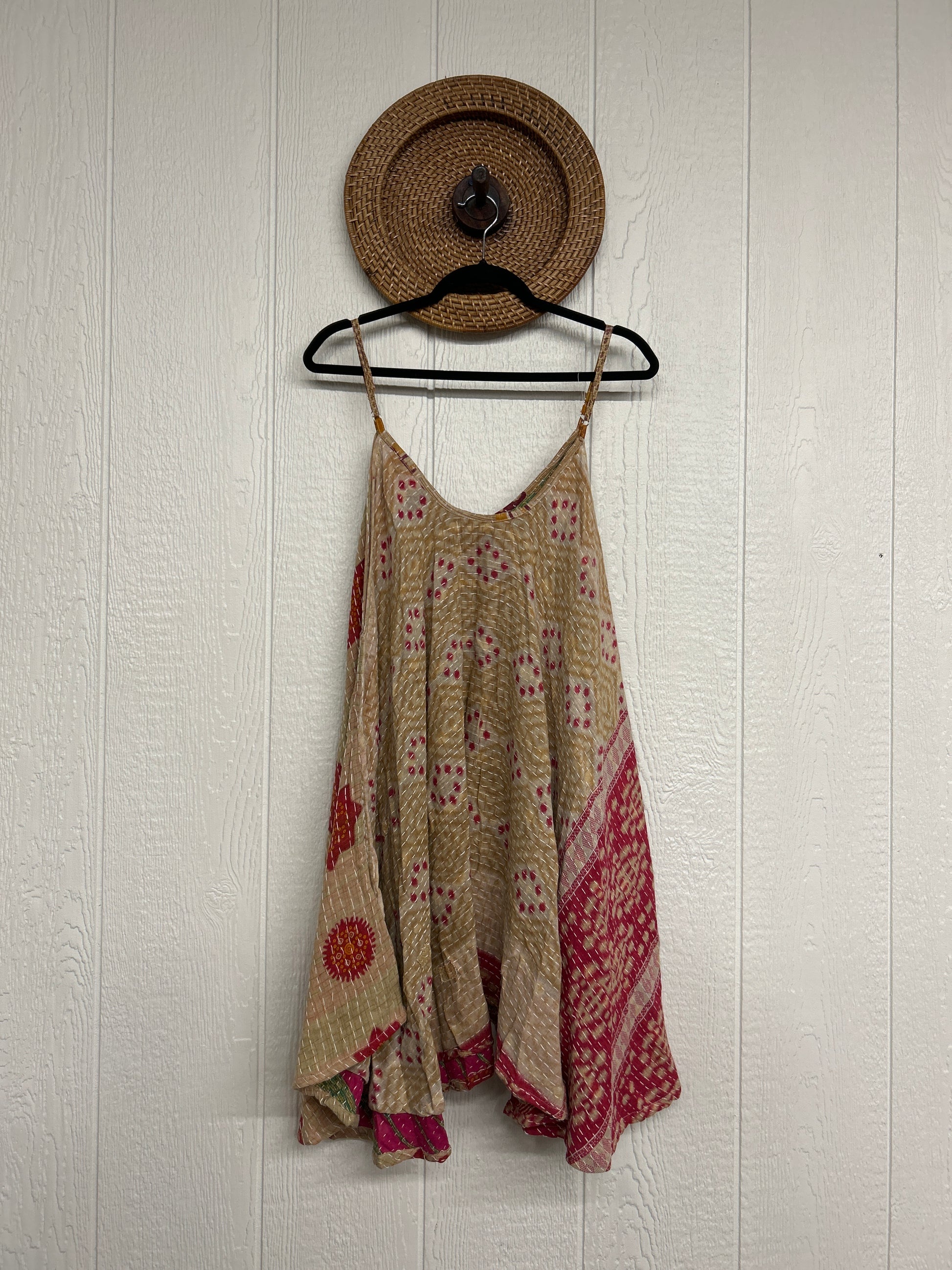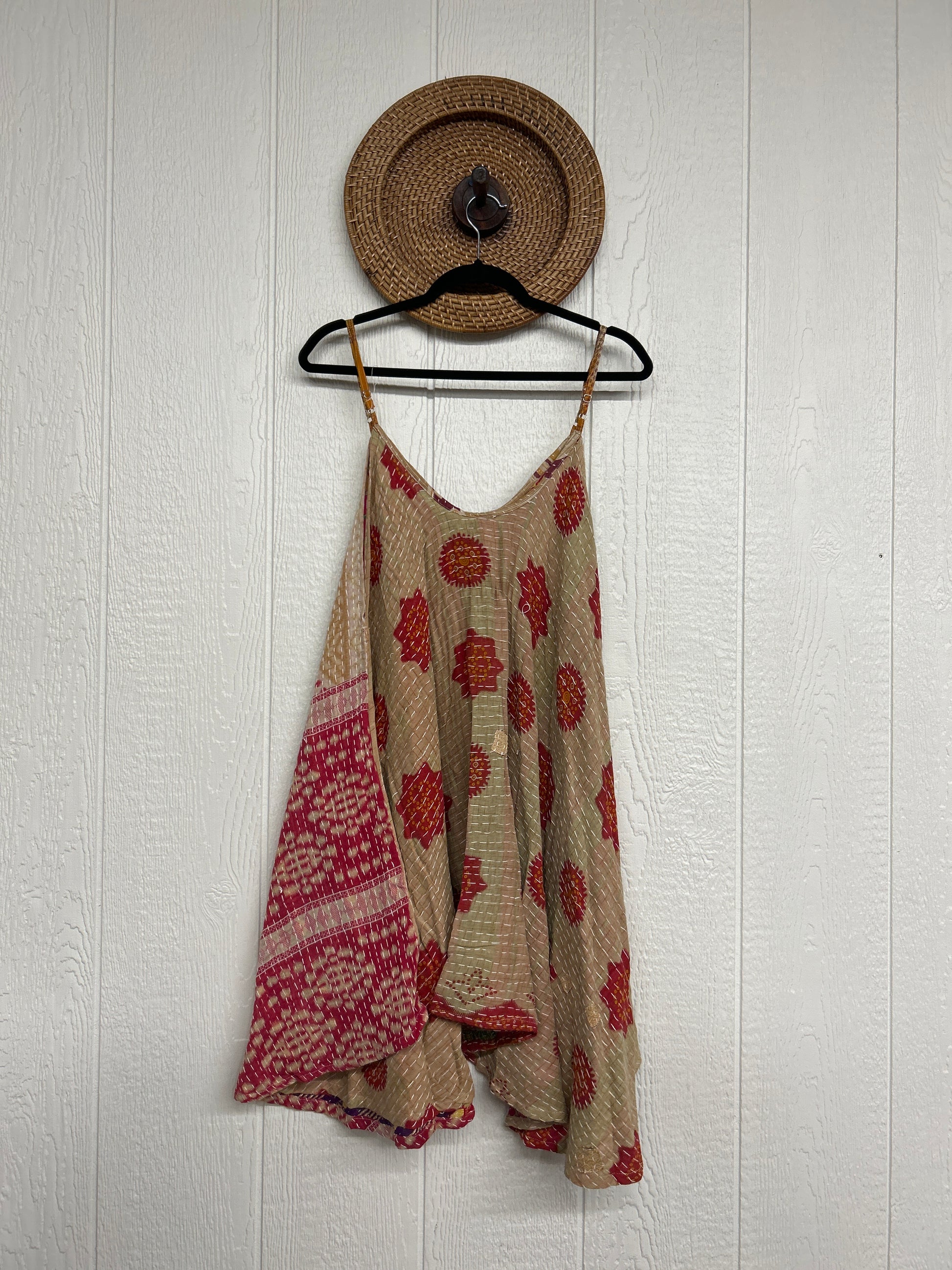 Crafted from our ultra lux cotton Kantha stitch sari the Moonchild Mini Dress features adjustable straps, interior pockets and an exaggerated sweep for extra dimension. A total vibe whether you wear as a layering piece under your favorite Kantha Bae pieces or on it's own.
