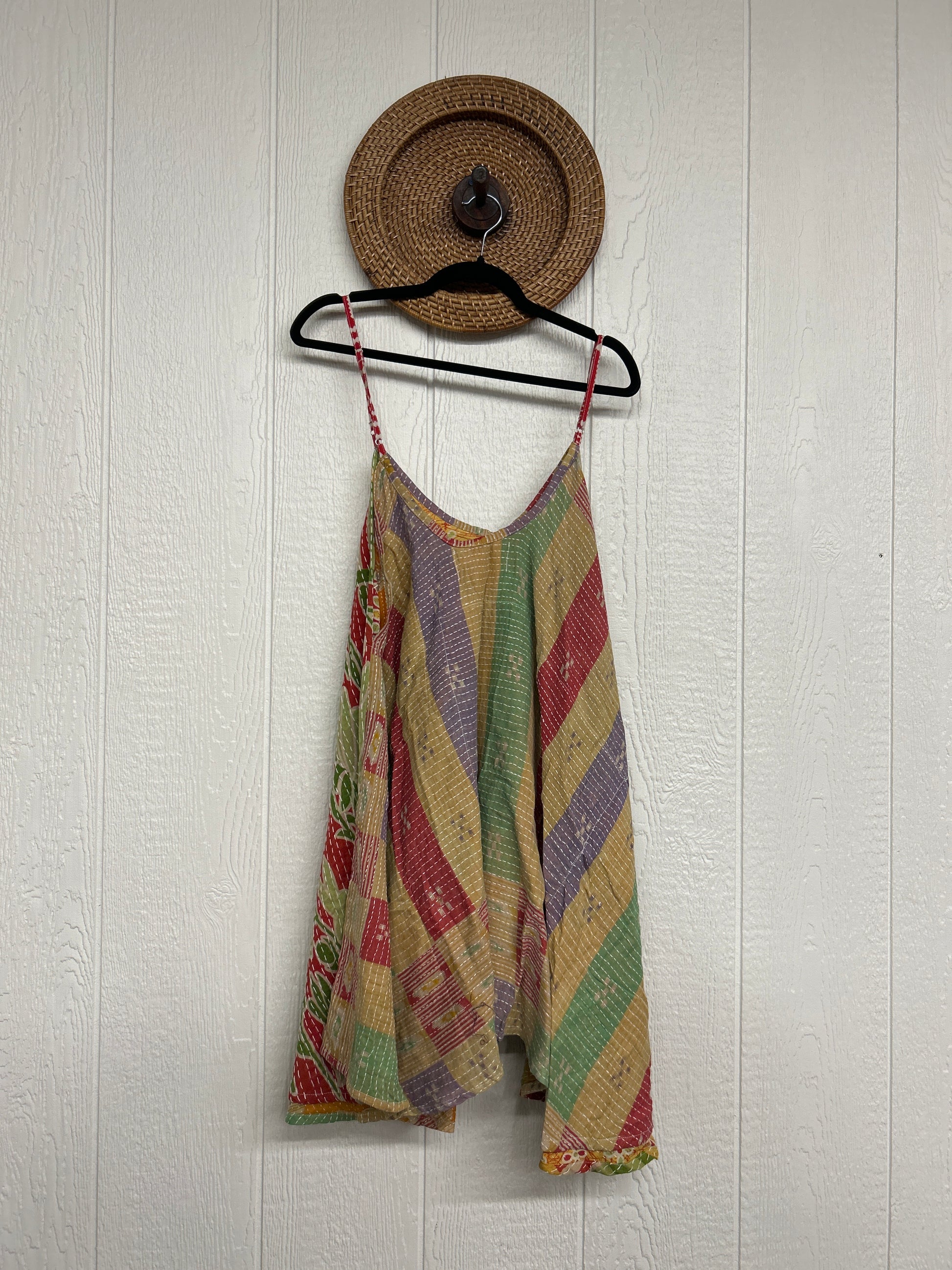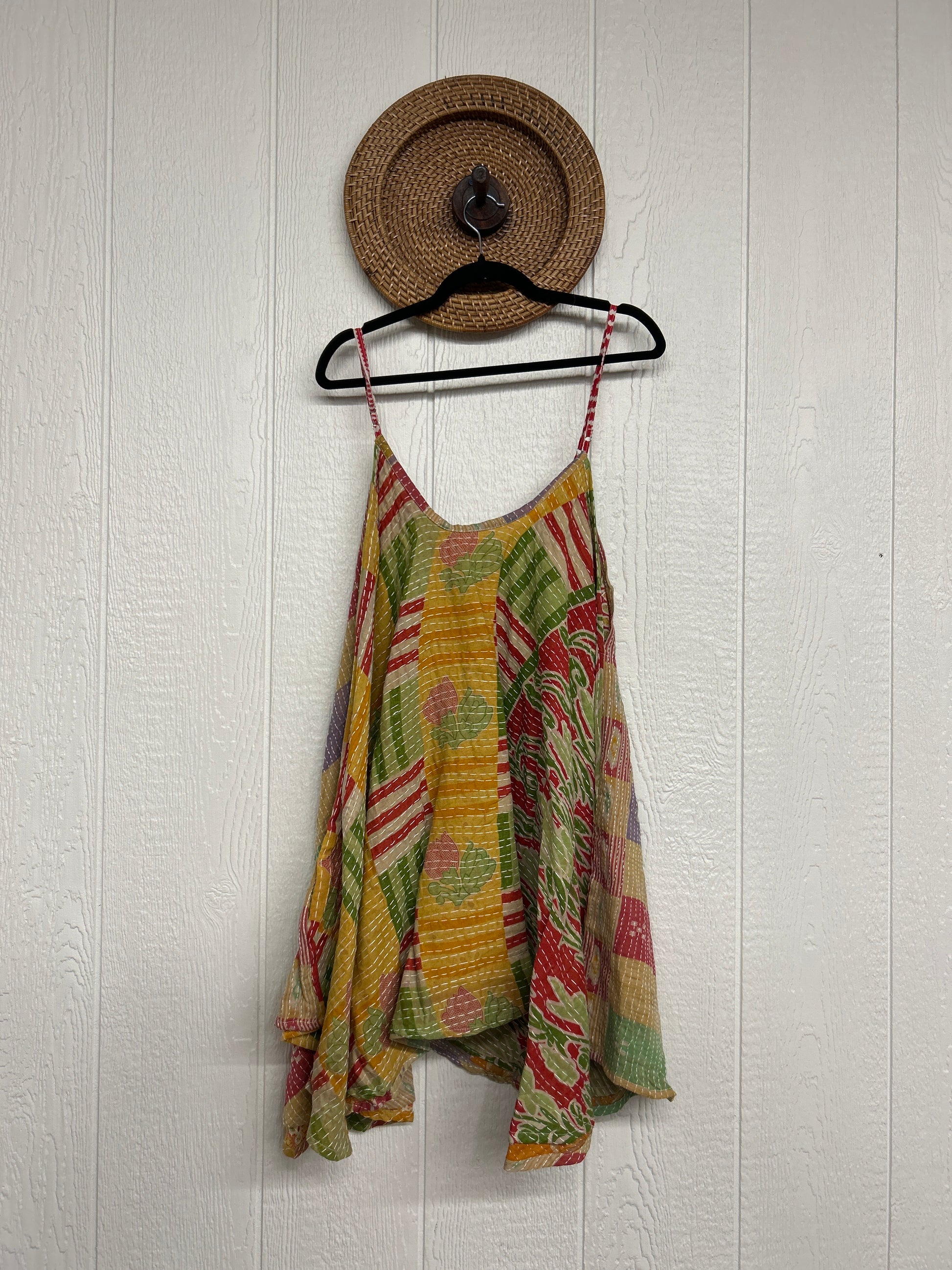 Crafted from our ultra lux cotton Kantha stitch sari the Moonchild Mini Dress features adjustable straps, interior pockets and an exaggerated sweep for extra dimension. A total vibe whether you wear as a layering piece under your favorite Kantha Bae pieces or on it's own.
