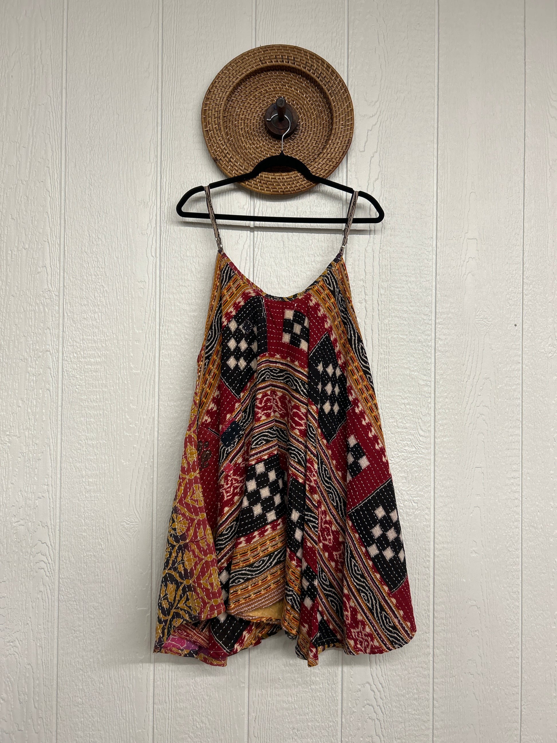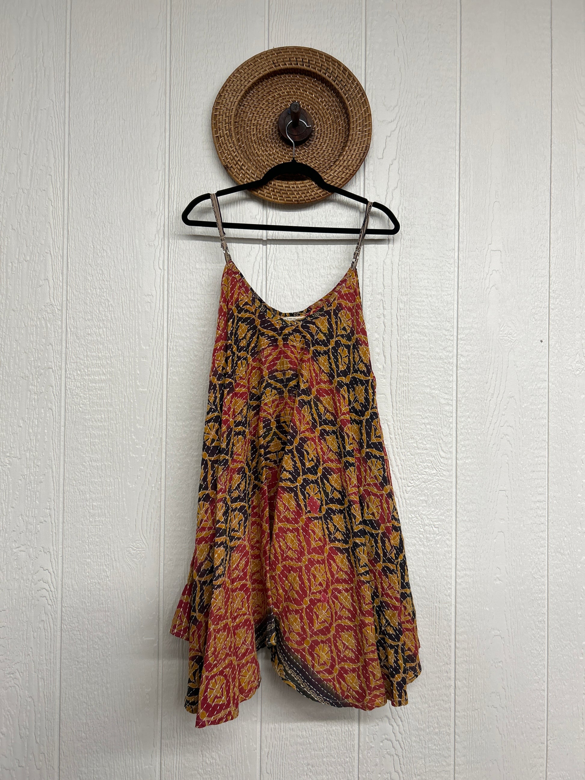 Crafted from our ultra lux cotton Kantha stitch sari the Moonchild Mini Dress features adjustable straps, interior pockets and an exaggerated sweep for extra dimension. A total vibe whether you wear as a layering piece under your favorite Kantha Bae pieces or on it's own.