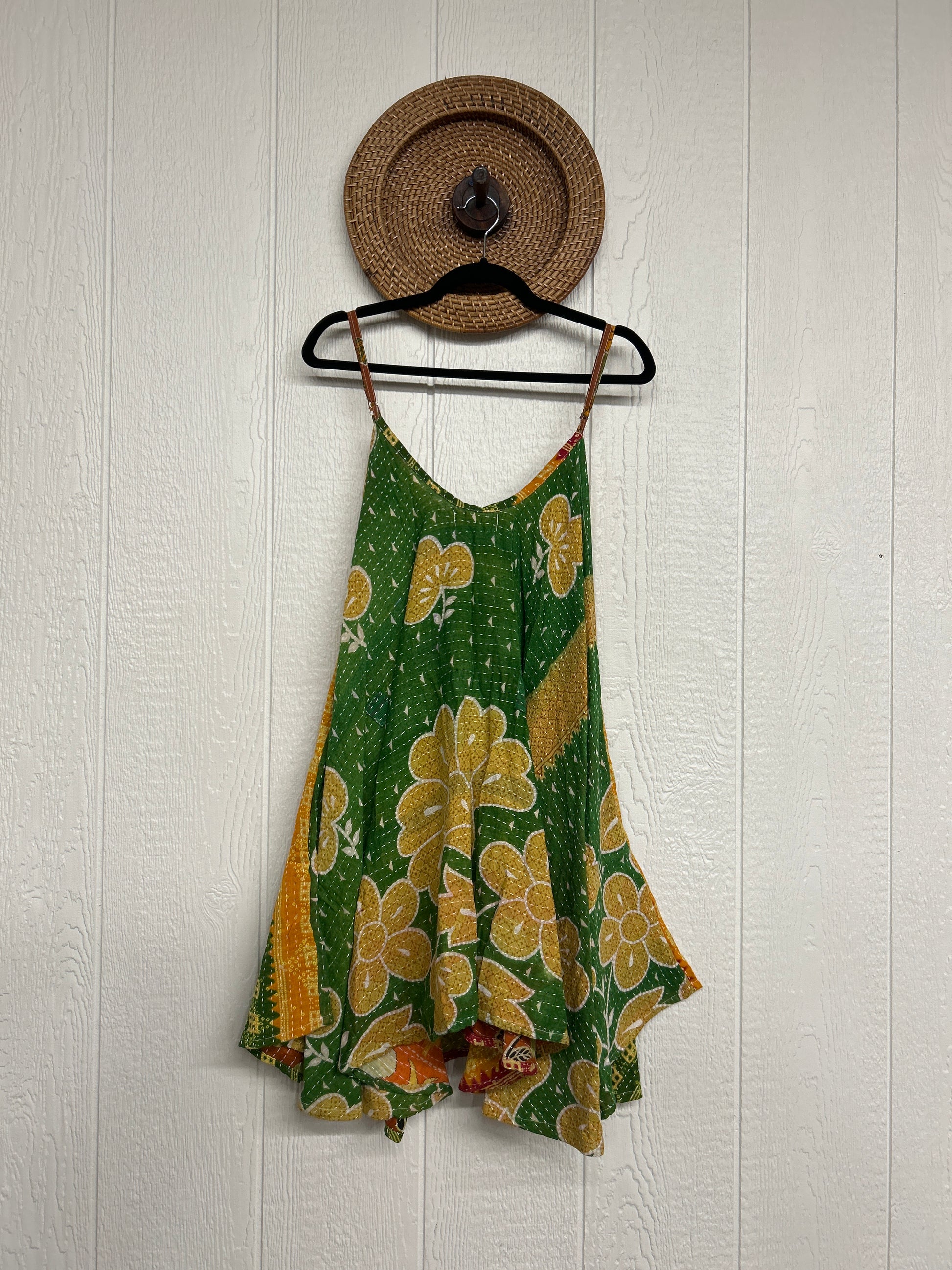 Crafted from our ultra lux cotton Kantha stitch sari the Moonchild Mini Dress features adjustable straps, interior pockets and an exaggerated sweep for extra dimension. A total vibe whether you wear as a layering piece under your favorite Kantha Bae pieces or on it's own.