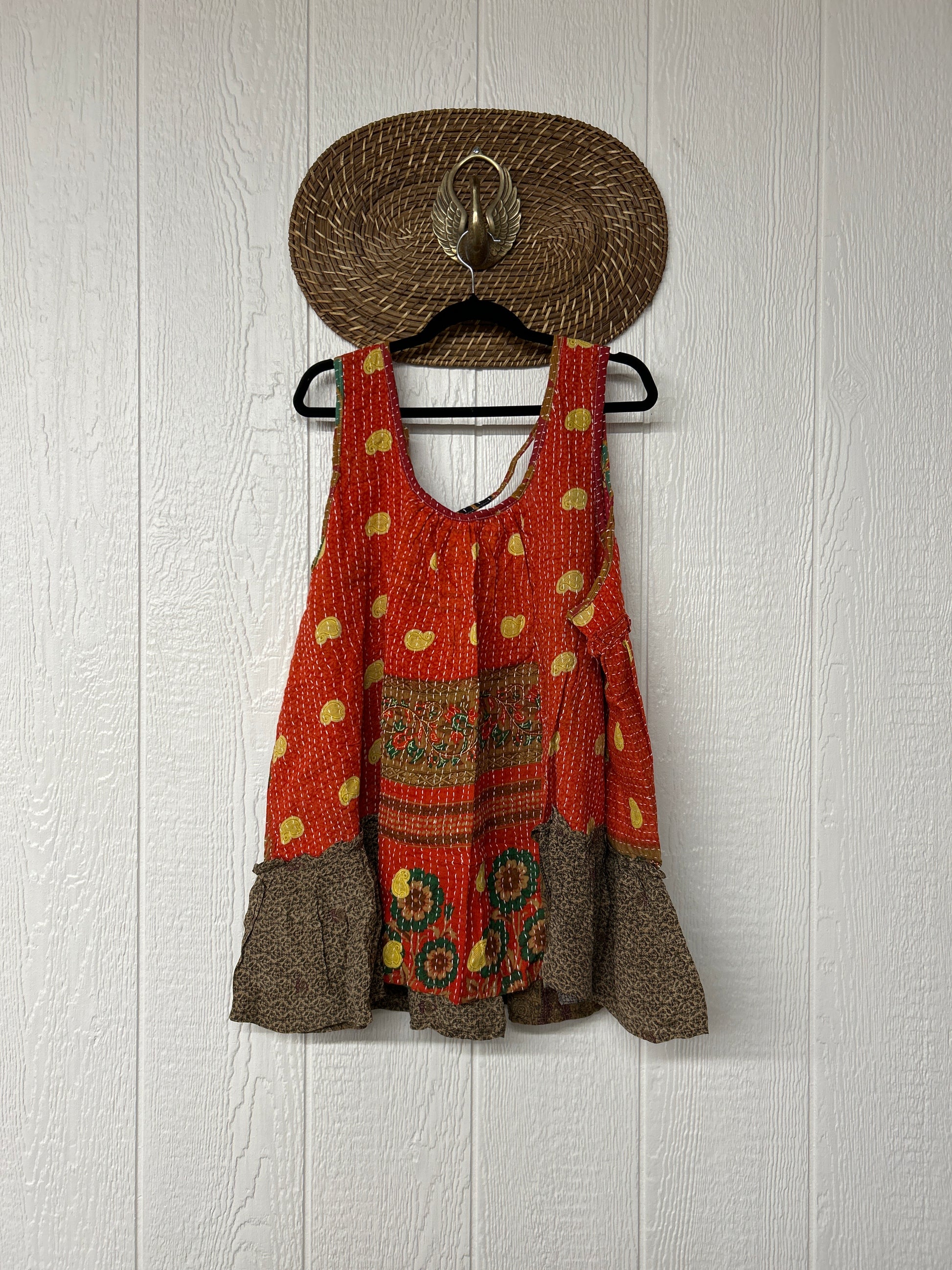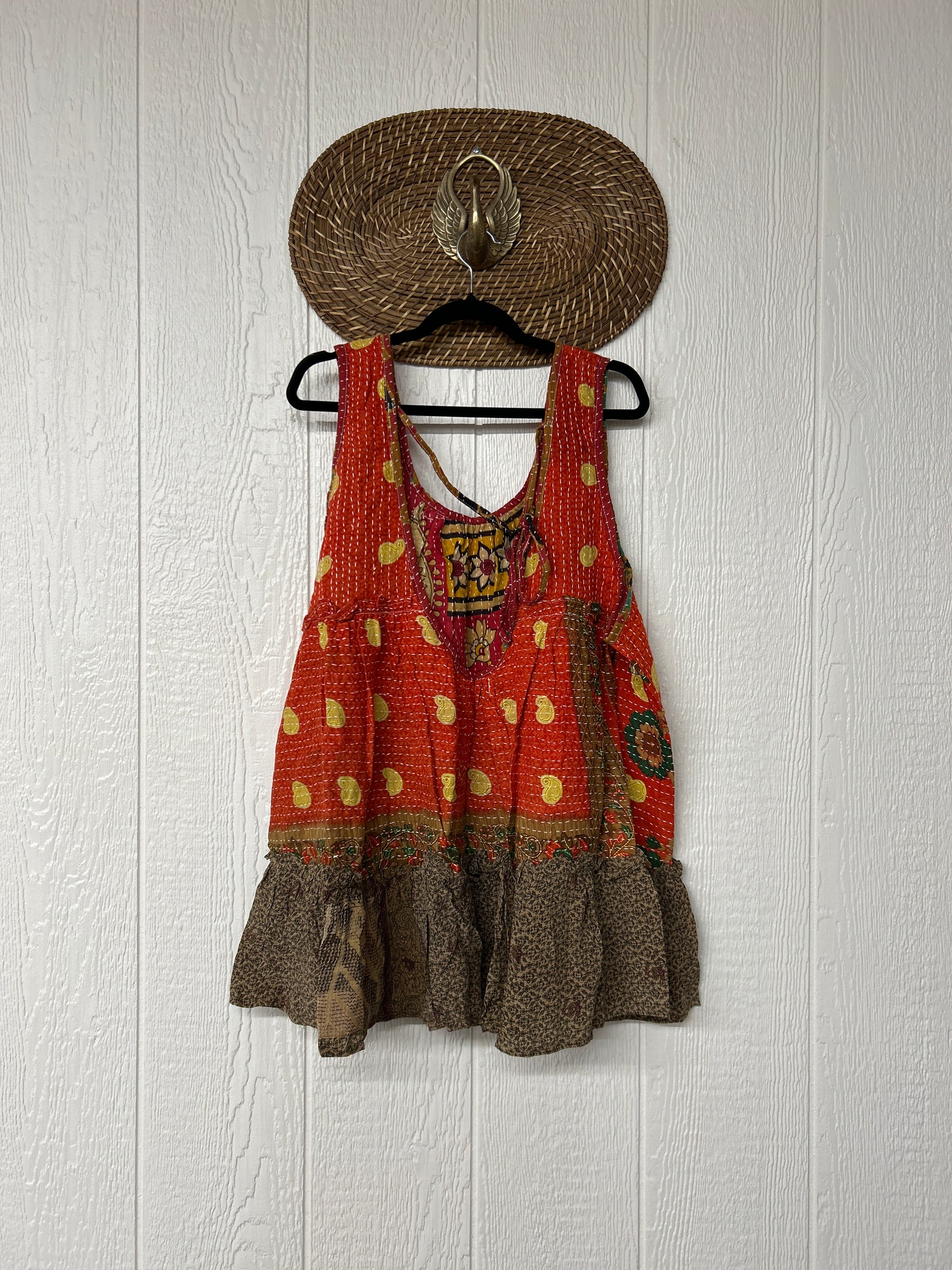 Made from a dreamy combo of our ultra lux cotton kantha stitch sari and crepe silk sari, the Mystic Tunic features a tie back on the shoulder to make it fully customizable.