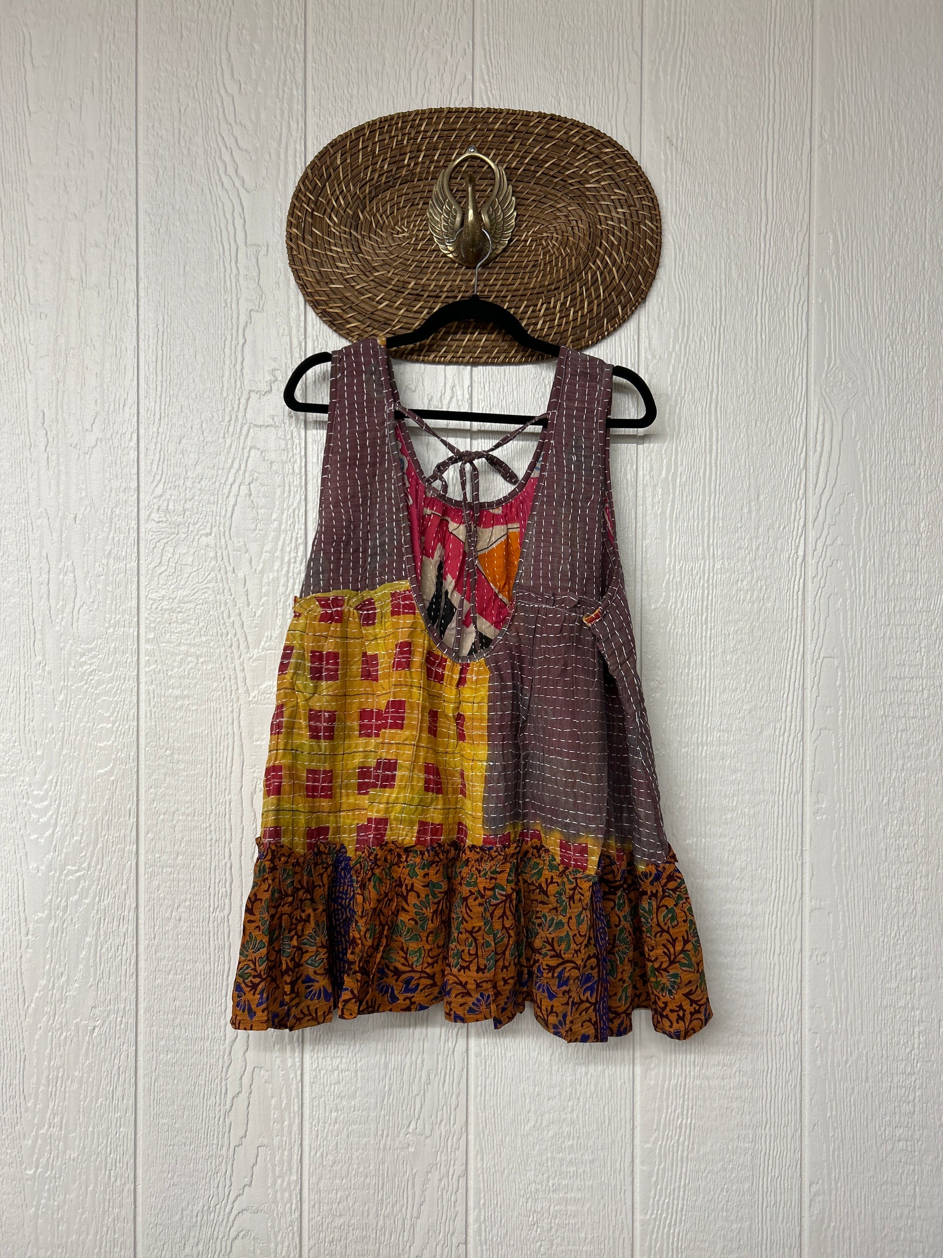 Made from a dreamy combo of our ultra lux cotton kantha stitch sari and crepe silk sari, the Mystic Tunic features a tie back on the shoulder to make it fully customizable.