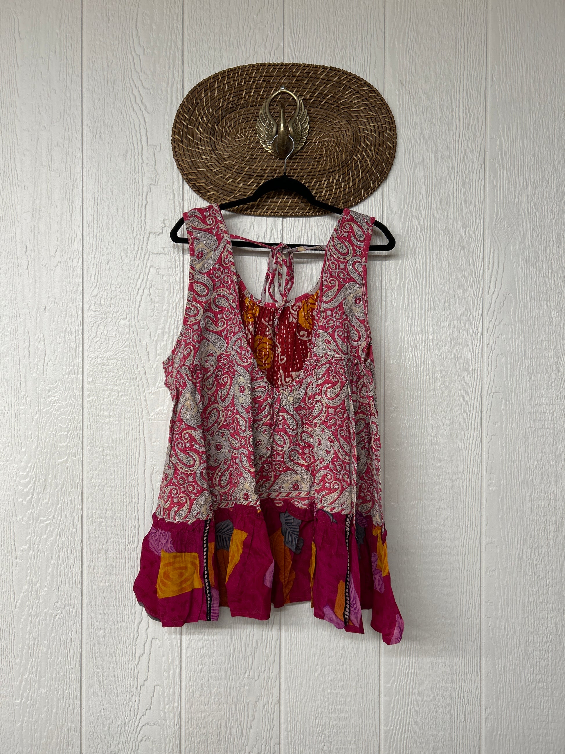 Made from a dreamy combo of our ultra lux cotton kantha stitch sari and crepe silk sari, the Mystic Tunic features a tie back on the shoulder to make it fully customizable.