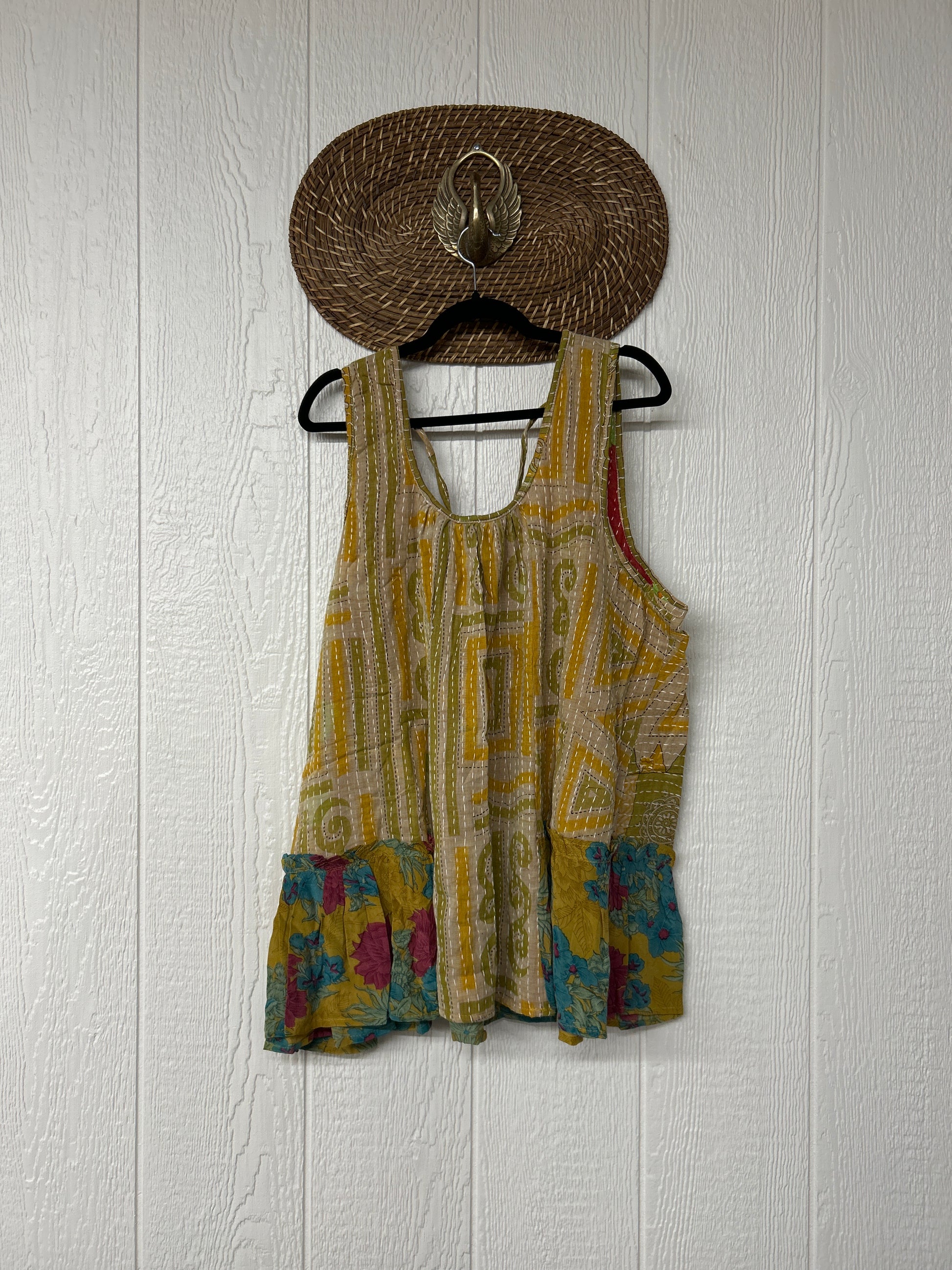 Made from a dreamy combo of our ultra lux cotton kantha stitch sari and crepe silk sari, the Mystic Tunic features a tie back on the shoulder to make it fully customizable.